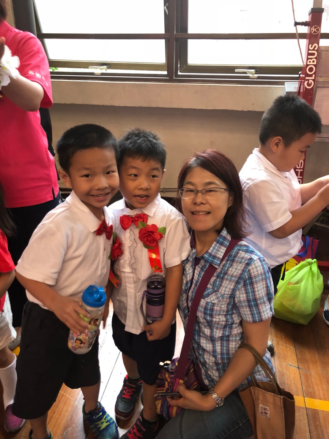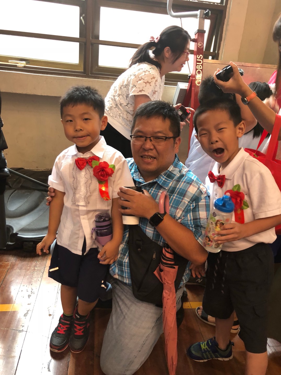 今天大沐沐畢業了!沐沐爸跟沐沐媽兩個一早就來學校,佔好最佳位置幫大沐沐跟小沐沐拍照。