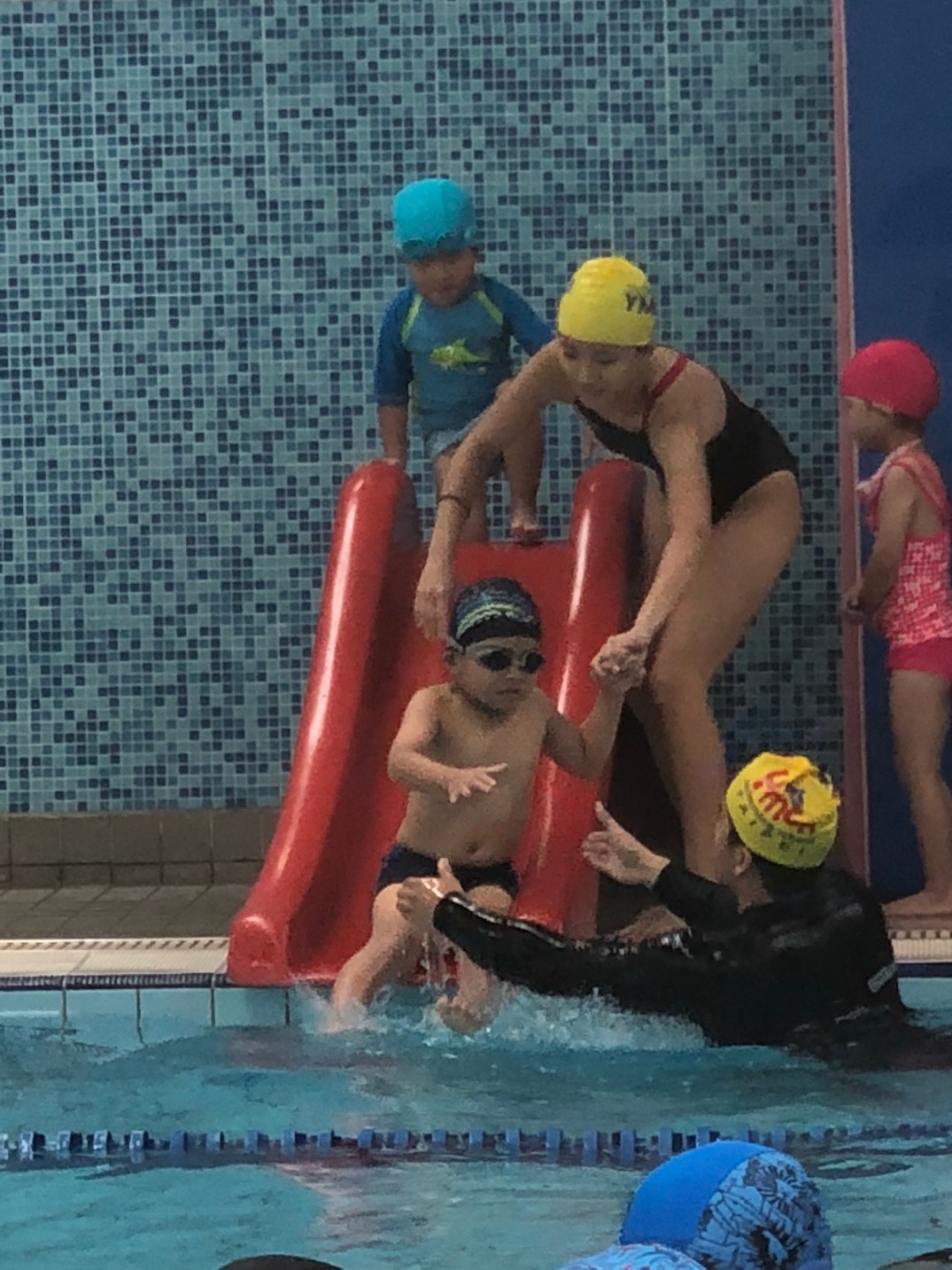 第二堂上課比較特殊就是去玩一下溜滑梯,其他課程跟上次差不多,但比較不怕水了,不過人變多了!