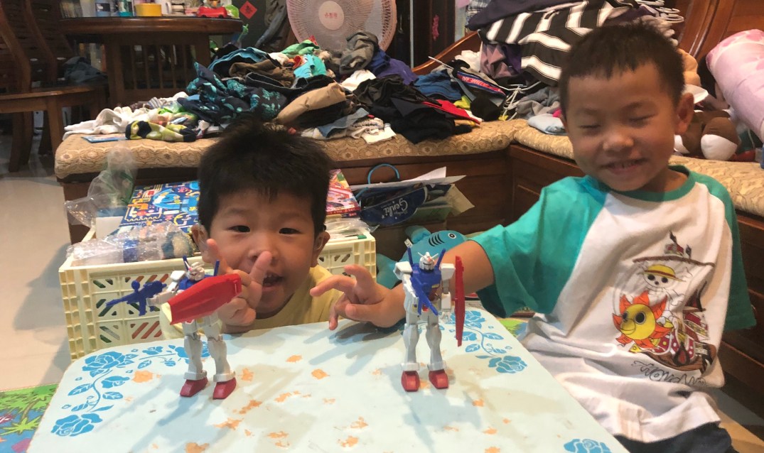 在新北市兒童藝術節從遊戲中,拿到了贈品–鋼彈一隻,因為鋼彈是簡易的模型,所以必須回家組裝,才可以看到鋼彈機器人的樣子。大沐沐小沐沐兩個很開心的回家,馬上洗完澡,滿心期待的要組合第一隻鋼彈,雖然說是他們組,但實際上還是要老爸幫忙協助,他們才能完成。