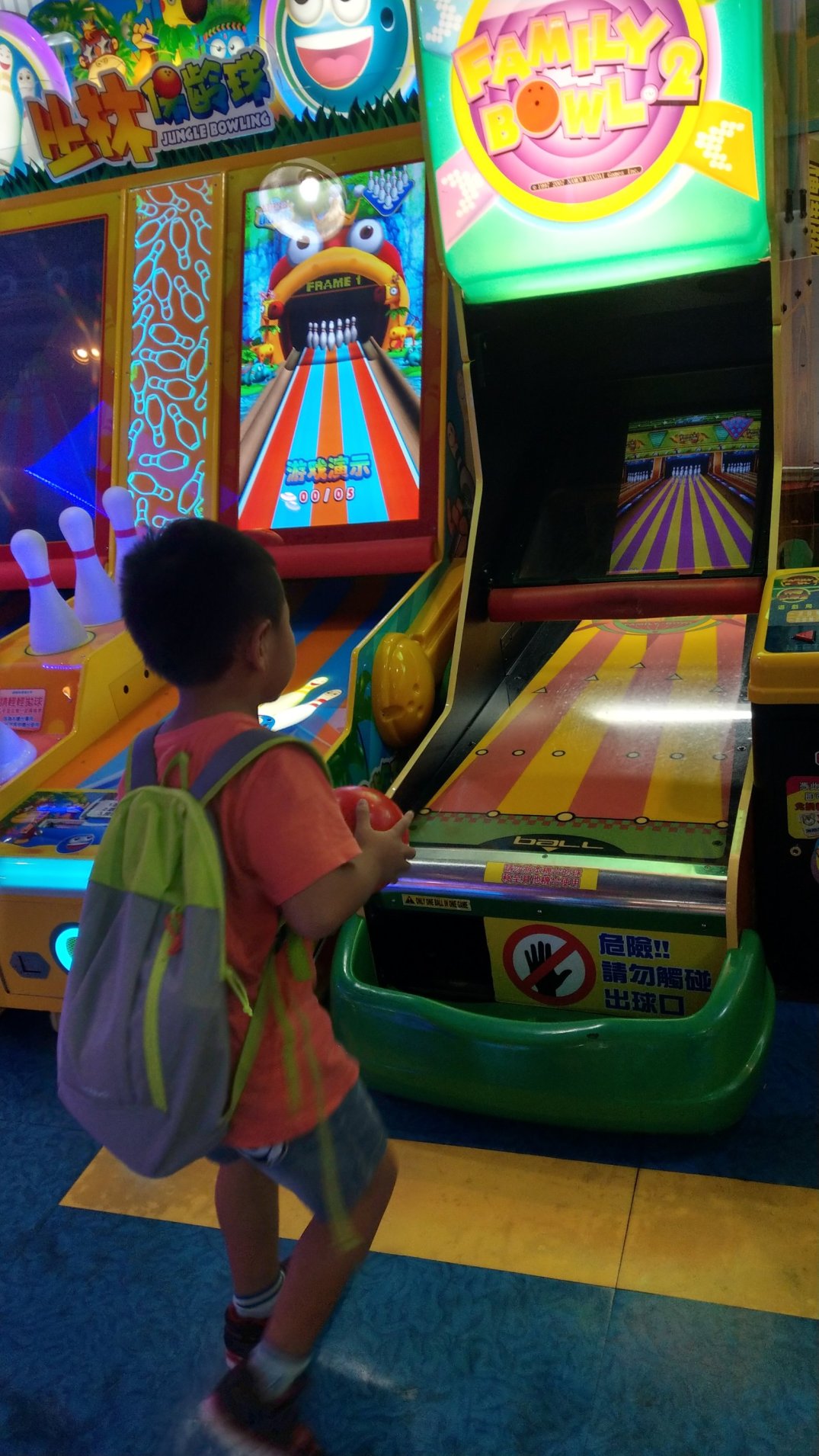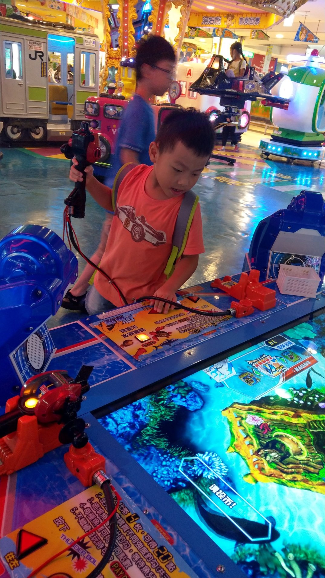 下午湯姆熊的聲光效果更是讓小孩嗨翻天,明明額度內的代幣半小時內已用完,硬是待了兩小時,讓媽媽只能默默跟那些看得到逛不到的商店說再見。沒關係,我還有一週可以無牽無伴自己逛
