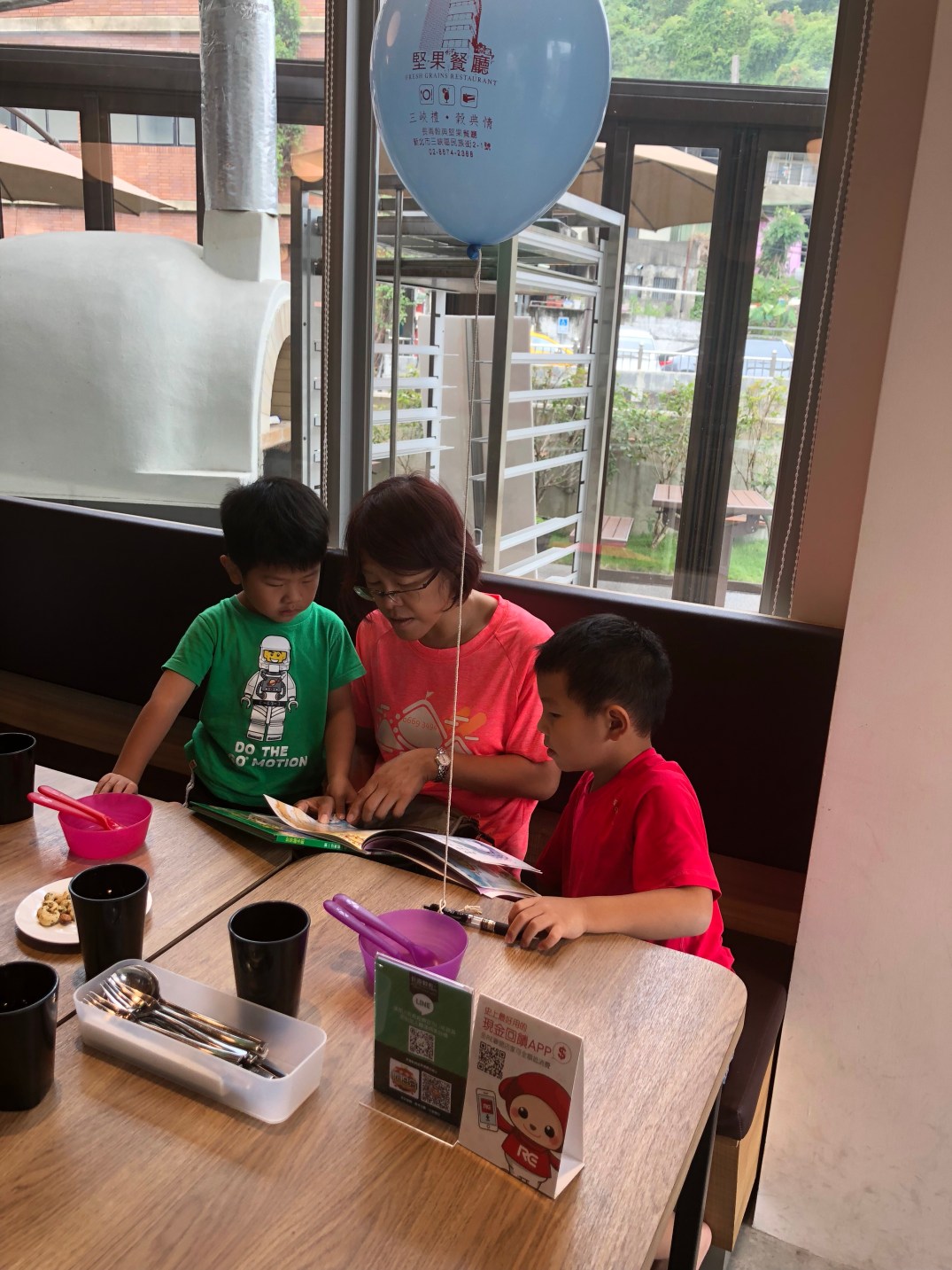 我們覺得是親子餐廳,因為一直有客人帶小孩進來,然後也可以看一些繪本,另外,他的麵包很好吃。