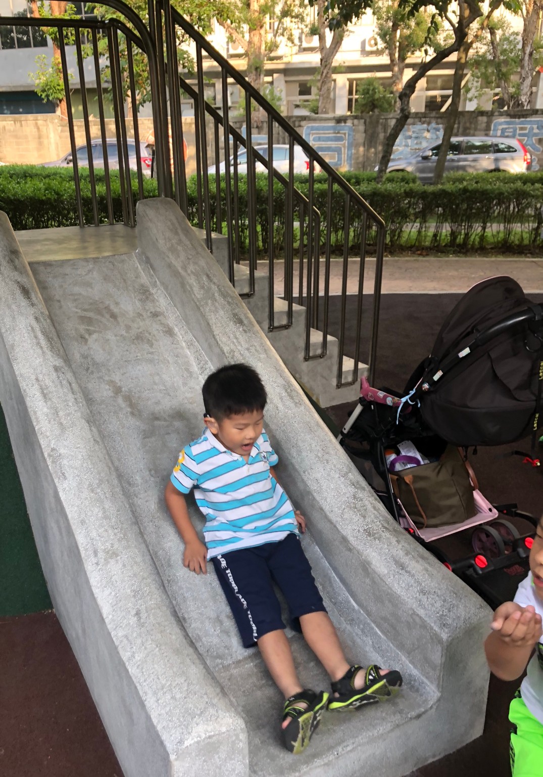 兩位真的很厲害,不過最後還是在旁邊的公園一直玩溜滑梯,單槓、滑步機等遊樂設施,玩得很開心,消耗了很多體力,晚上也很乖乖的自己吃晚餐,沐爸發現原來最簡單的他們就玩得很開心了!