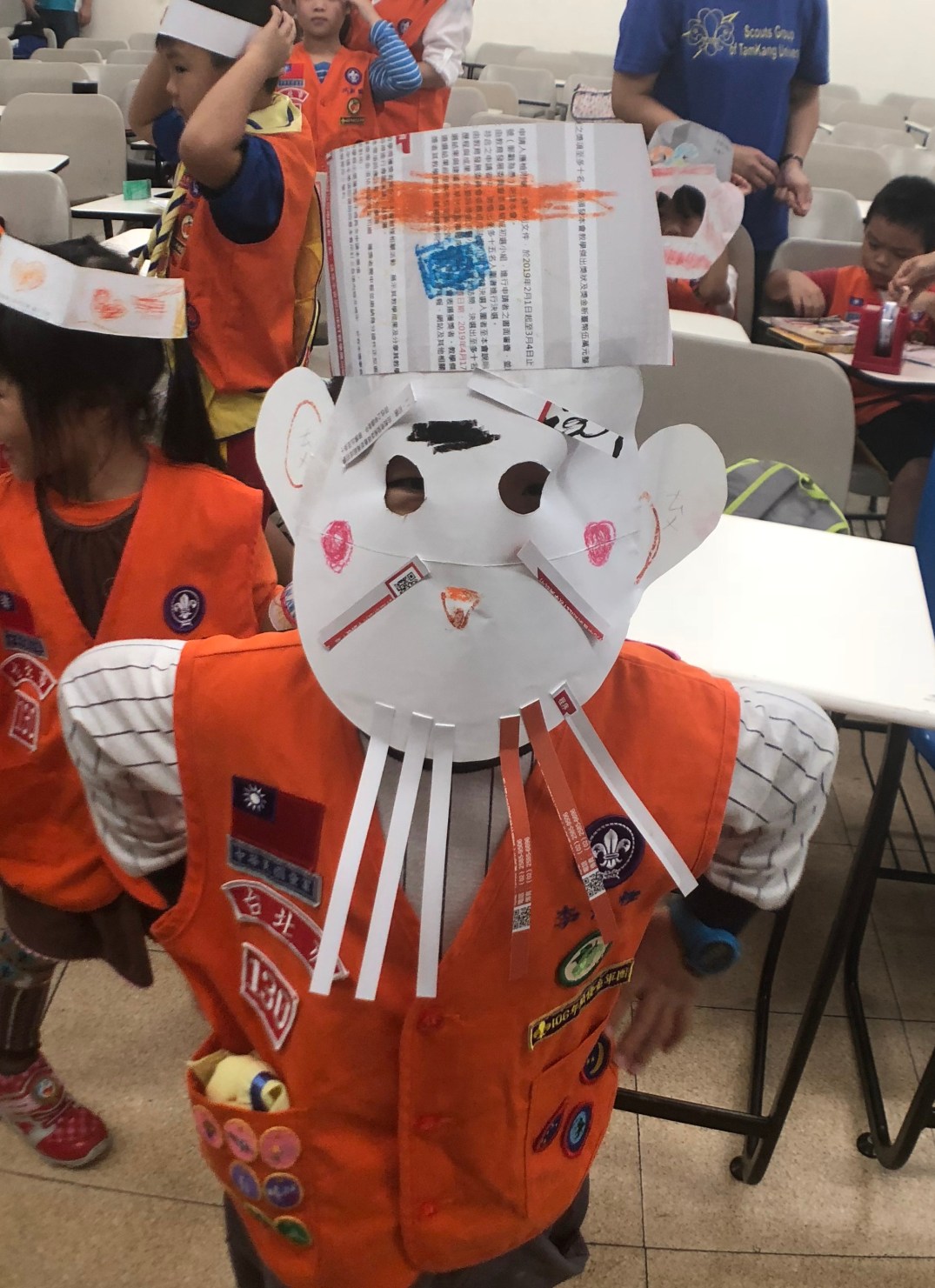 每個人都拿到廢物利用的材料,製作相關的面具,大沐沐因為沐爸扮土地公,就選擇土地公製作,小沐沐最選擇孫悟空,於是大家做了一堆面具回家了!