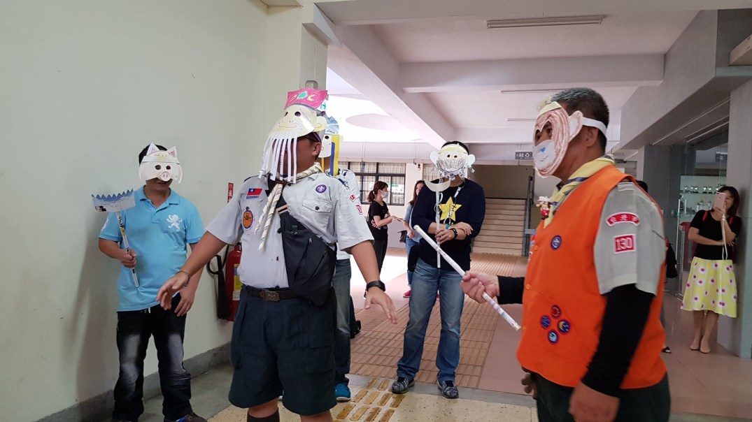 本次另一個重頭戲,就是演戲,劇名為西遊記之鐵扇公主,最後在有一點小走鐘中度過,狼寶寶看得津津有味。演完之後,就是狼寶寶要做我們表演的面具了!