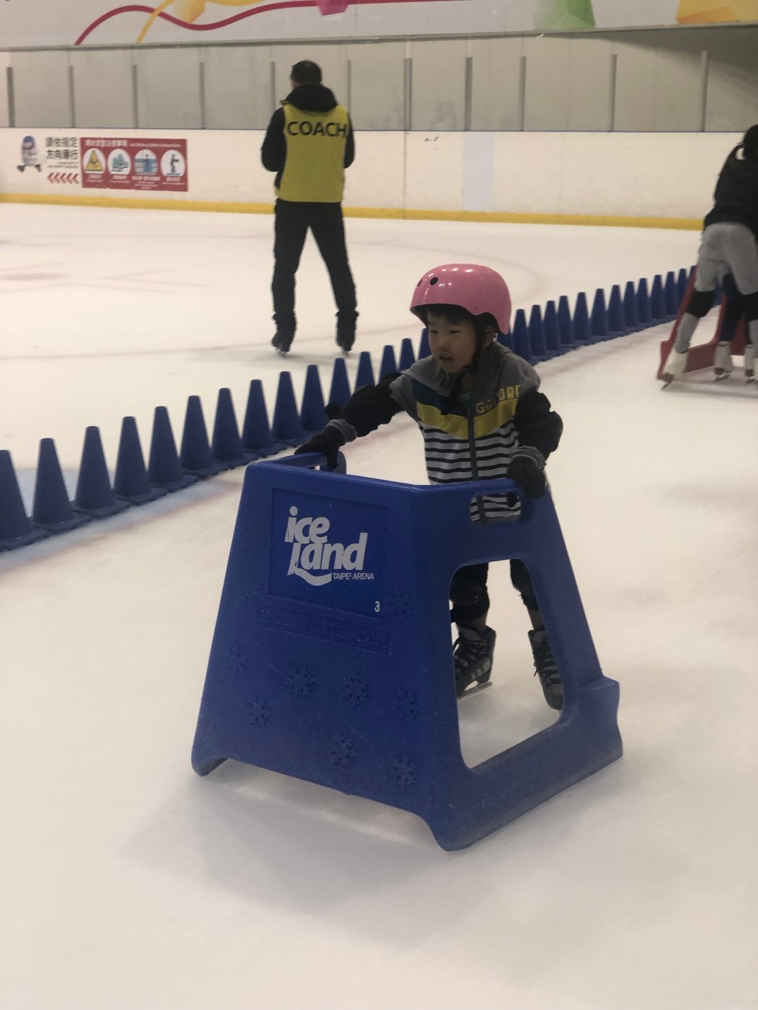 早上父子三人一同去小巨蛋冰上樂園體驗冰上溜冰,大小沐沐玩的很累。