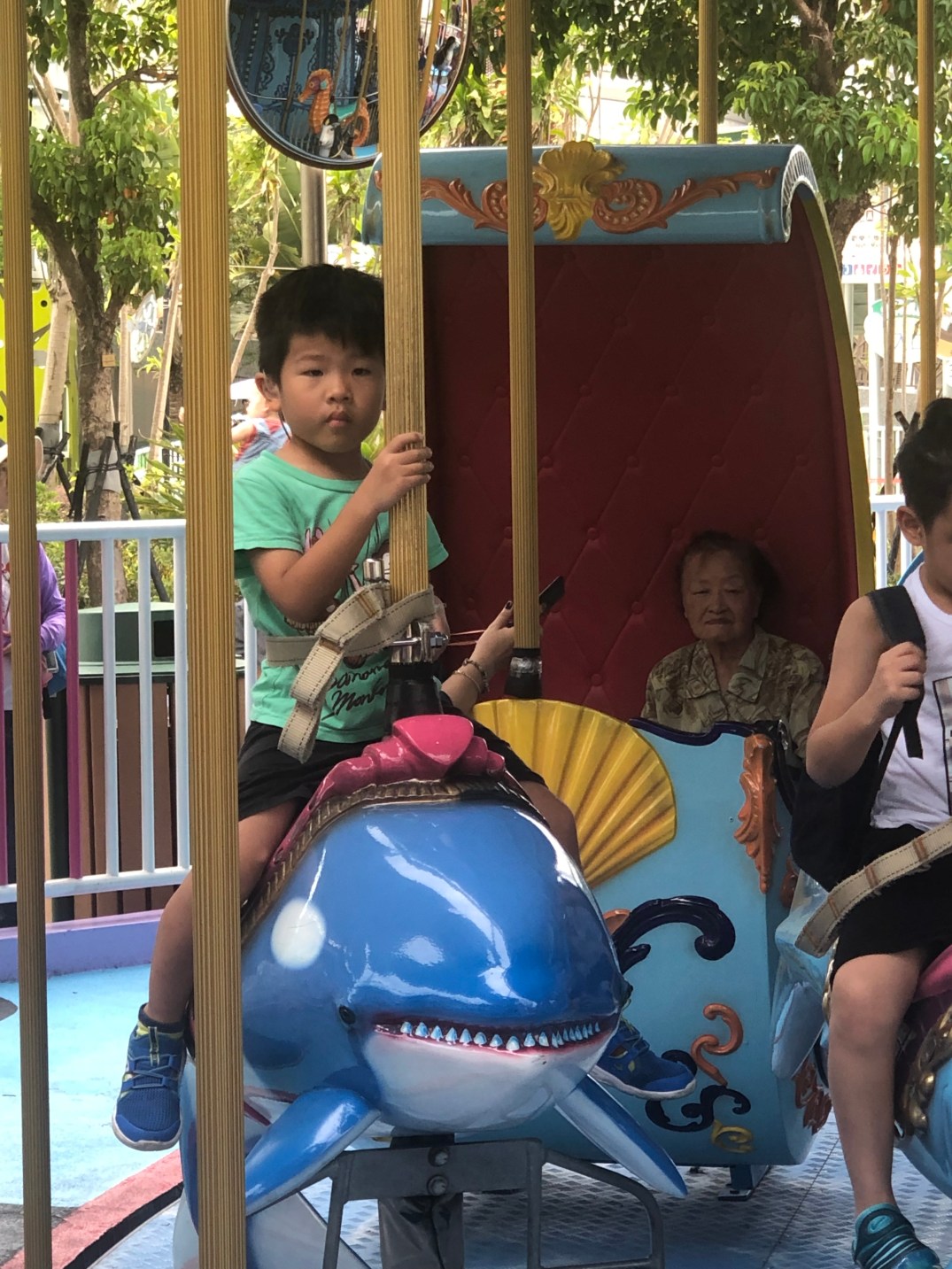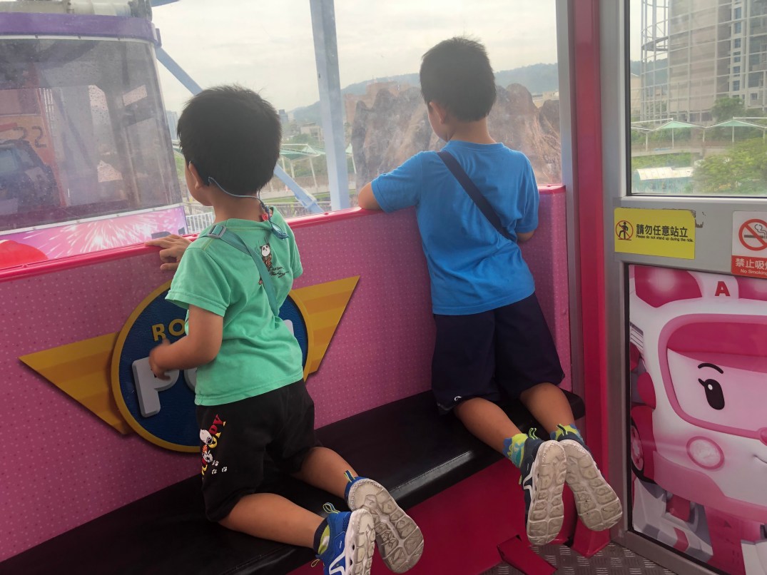 下午給了他們很多台北相關去玩的地點,大小沐沐決定去兒童新樂園,由於是平常日去,部份設施在保養,所以就只玩3項大型遊樂器材、球池遊戲場及電動玩具場,這樣就從2點玩到5點。