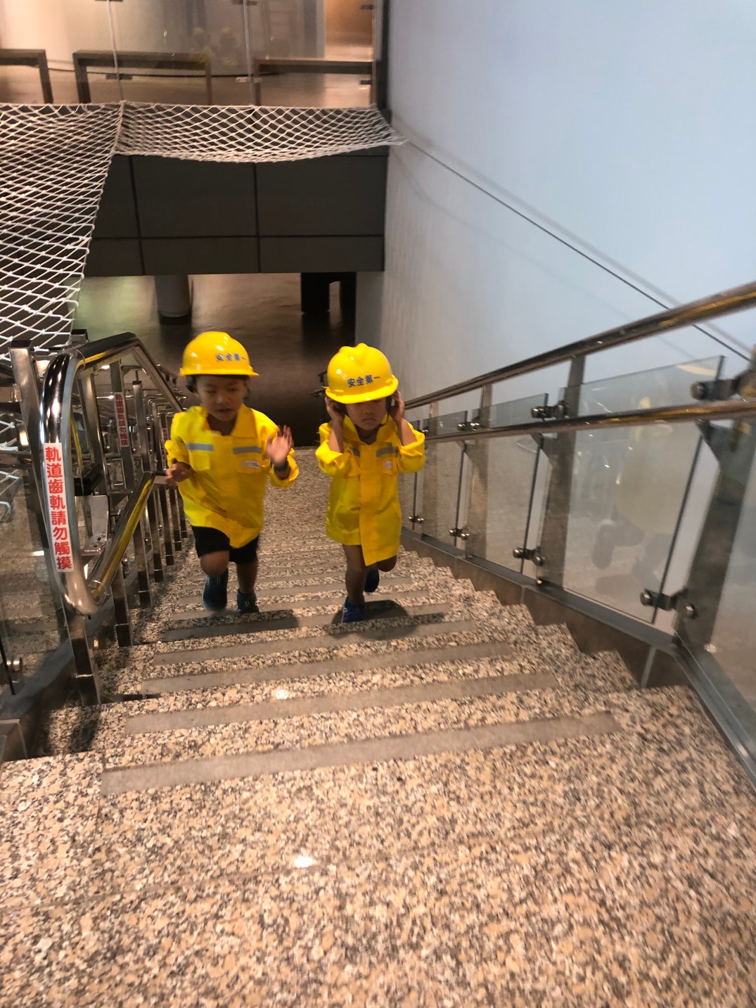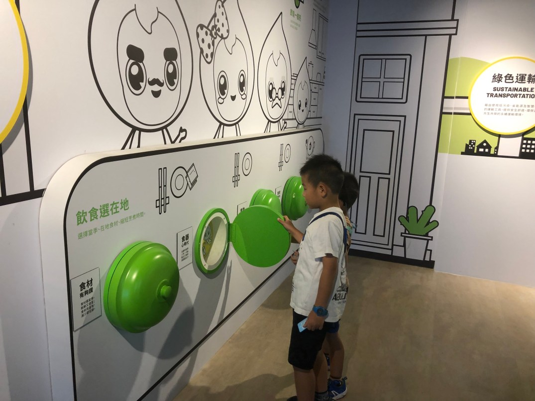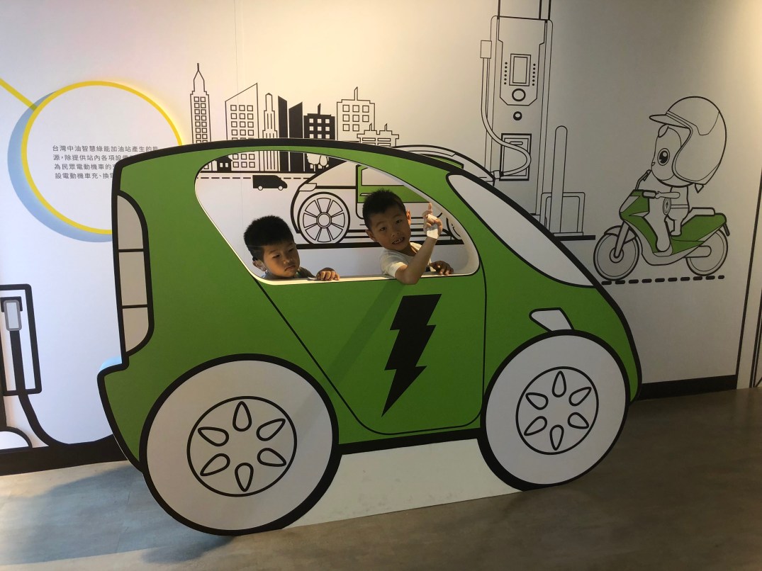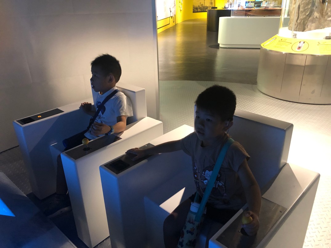 上樓去還有一個透過接水管的遊戲,介紹石油的應用,這對大小沐沐有一點難懂,不過有球跑動的聲音,他們就一直找,似乎這一個要中高年級可能比較會玩。這個沐爸就忘了拍照了!