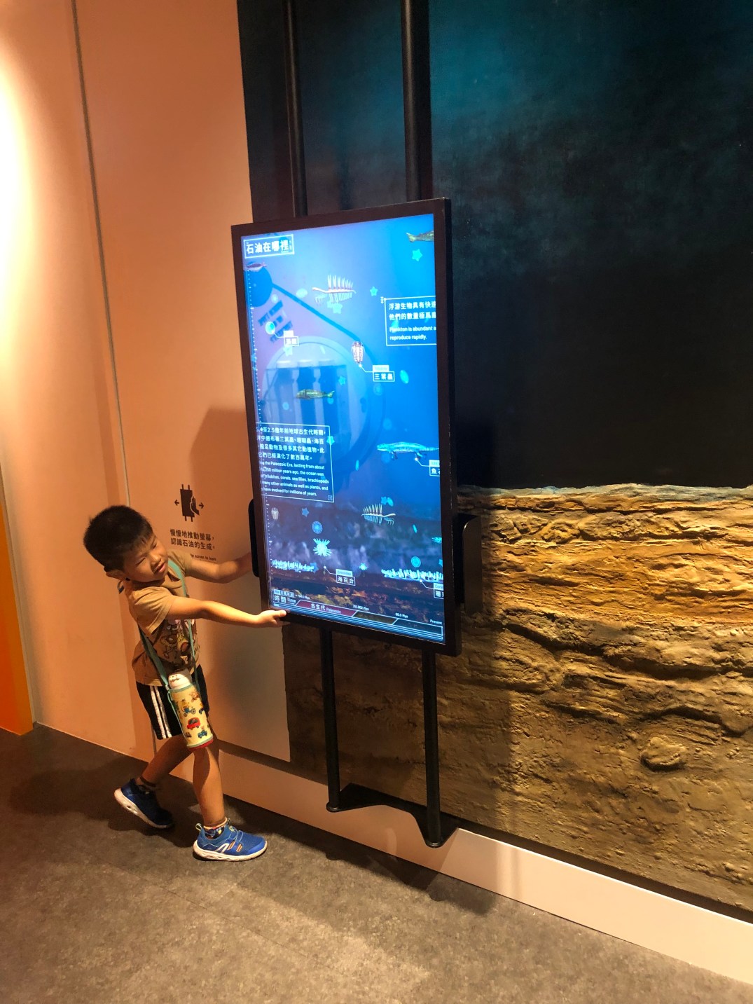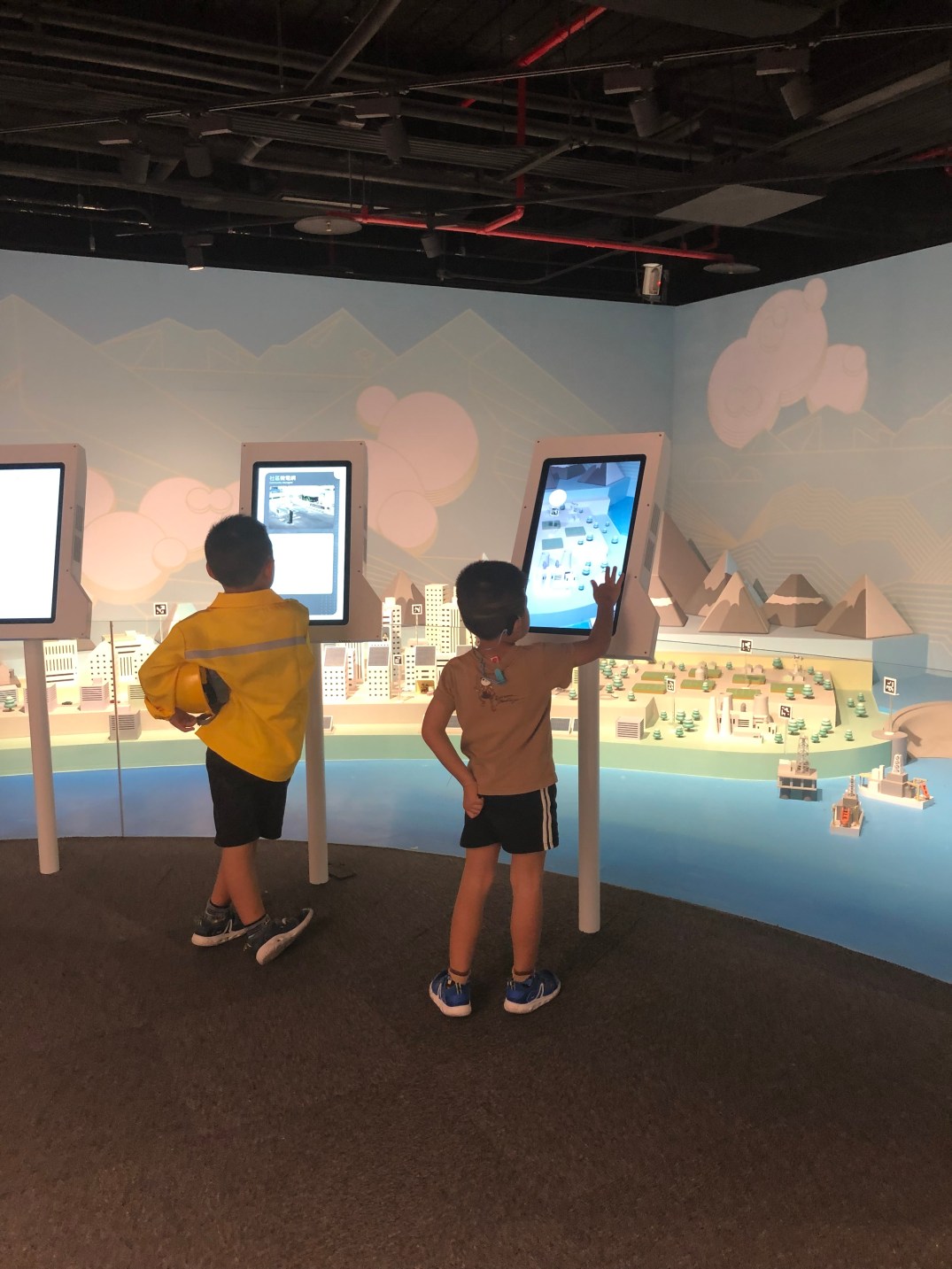 樓上還有介紹各種能源的螢幕,只要移動螢幕鏡頭就會移動,標示這是那種能源,透過點選了解,這似乎也是偏中高年級,畢竟小沐沐認識的字不多。