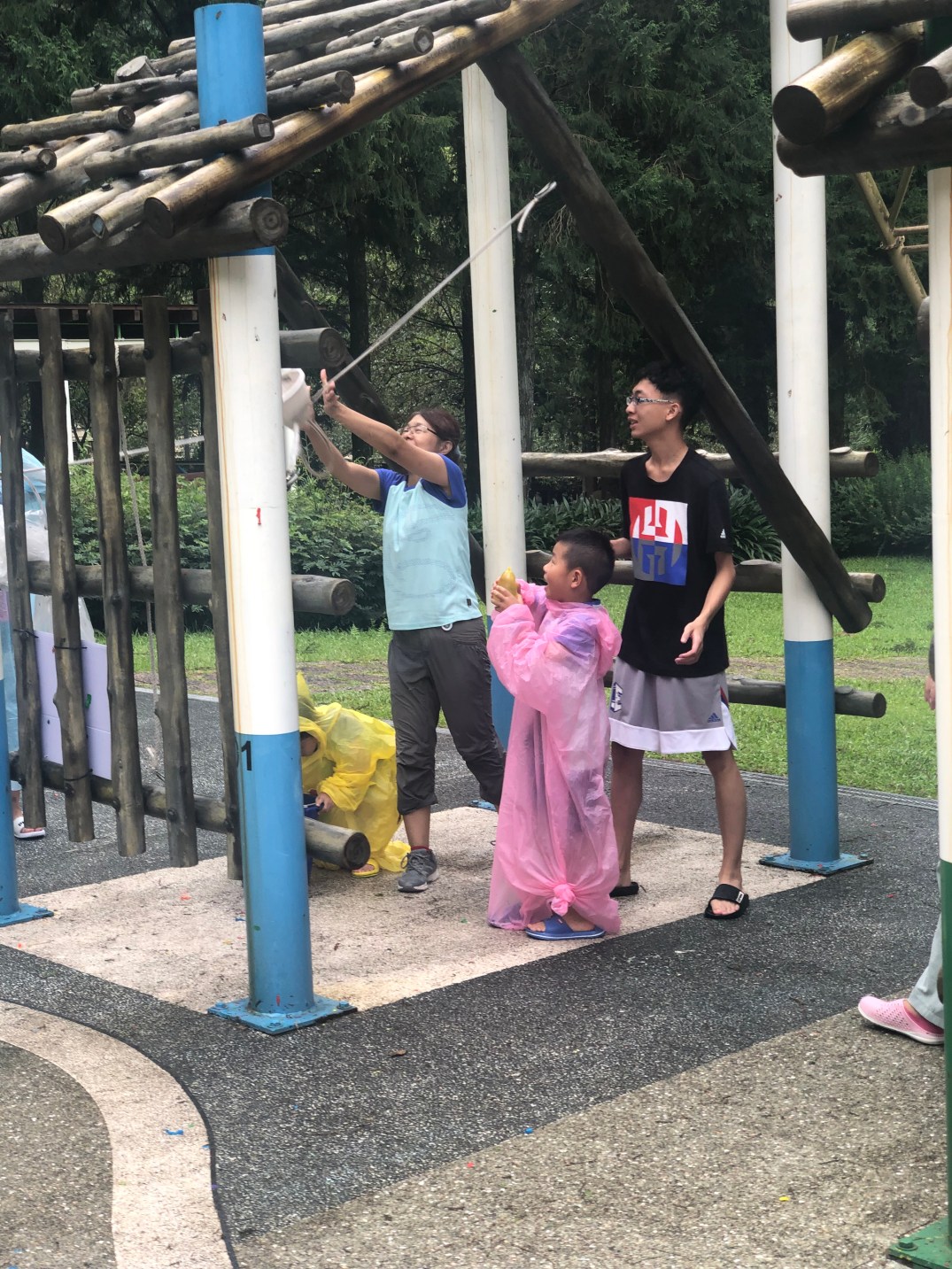最後沐媽跟小沐沐還去「無敵艦隊」玩一次,沐爸跟大沐沐不想去就在旁邊看,上來後沐媽跟小沐沐要去玩水戰場的丟水球大沐沐要去玩「飛行船」,就短暫的分開。