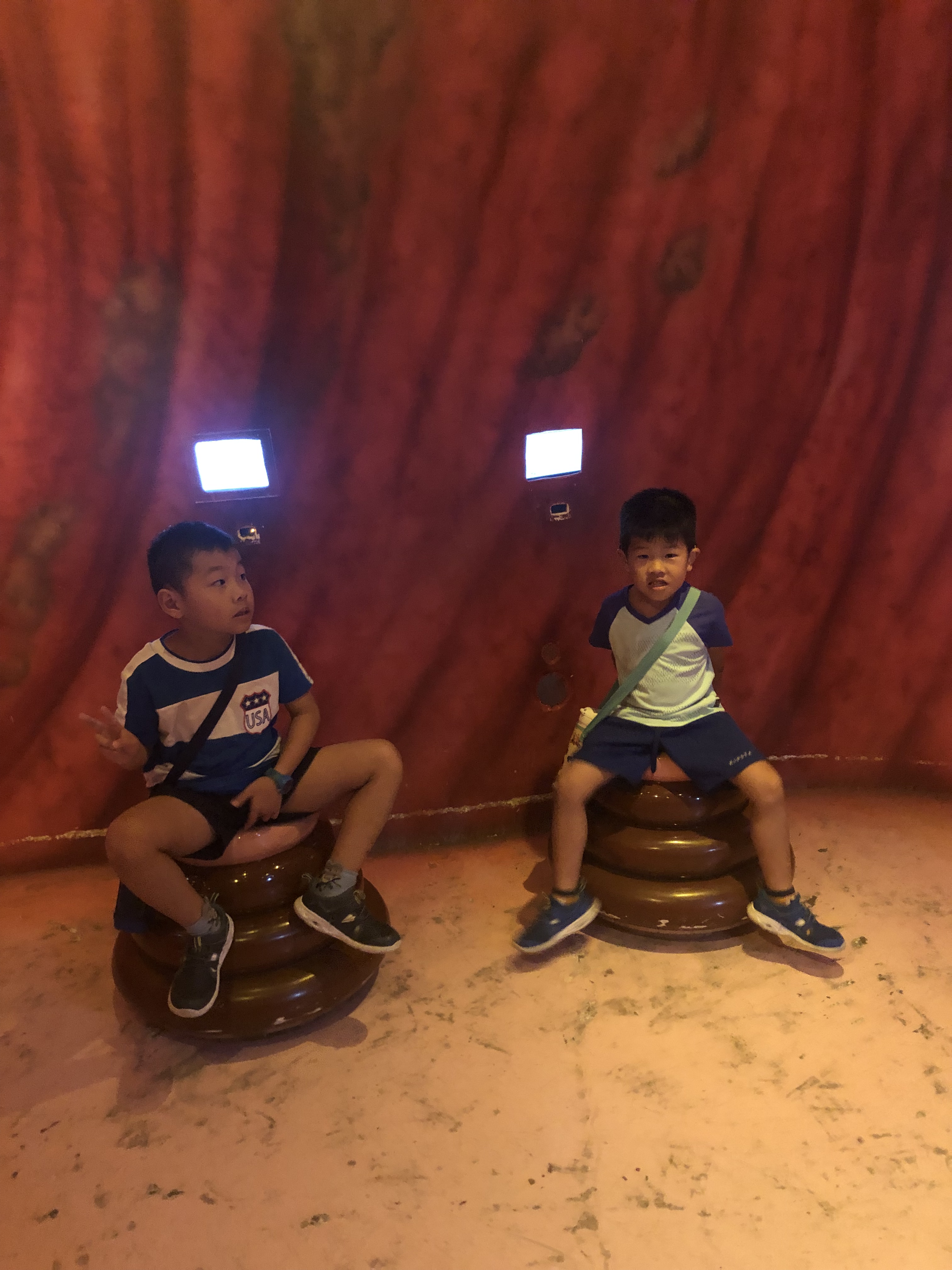 吃飽之後,大小沐沐還是去常設展玩耍去,一定要玩「消化系統」,也要玩「機械設施」、「化學變化」、「電磁效應」等等,這樣玩到了3點半。