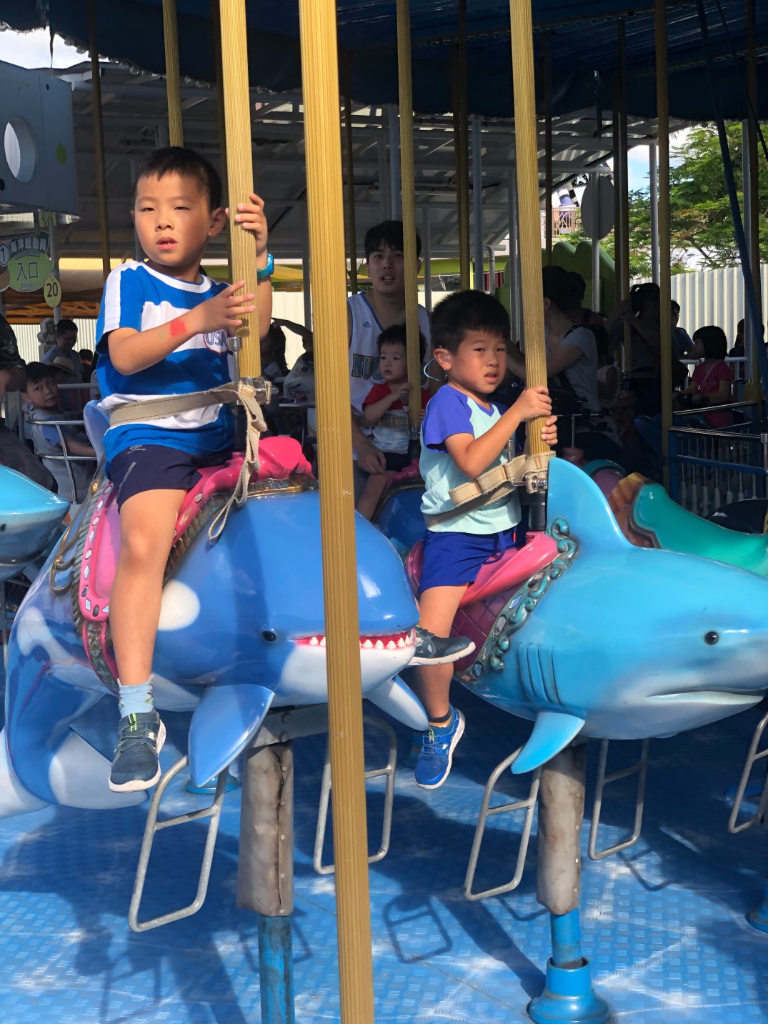 最後,我們手上還有4格兒童新樂園的設施卷要花掉,我們就去玩「海洋總動員」跟摩天輪兩個設施,結束這一天的行程,晚上去沐沐啊嘛家吃晚餐。