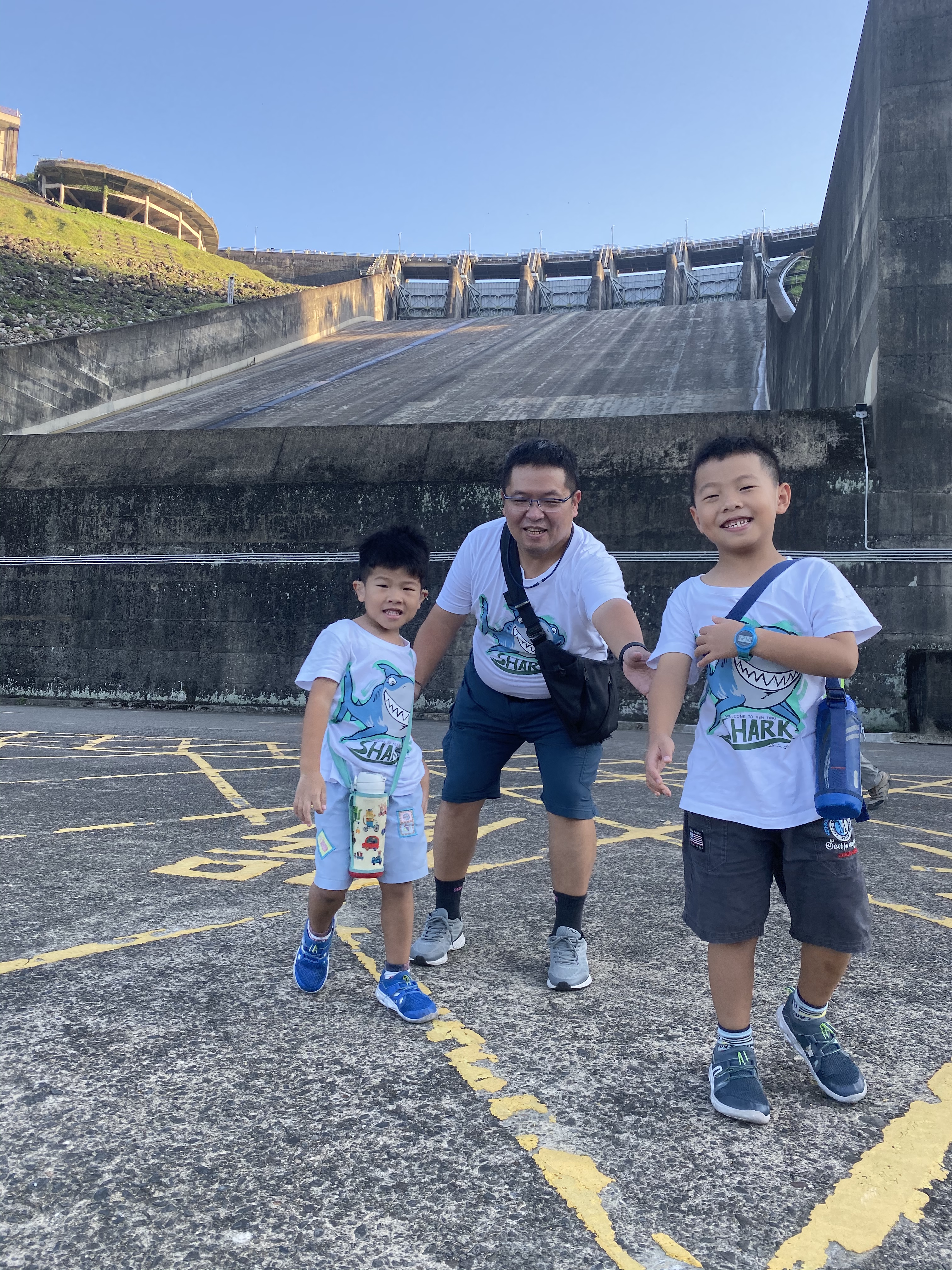 讓後再往下壩處的水池往前繼續開,那邊看來比較少人,剛好可以停車,於是一家人在最下面的壩走過去在走回來,完成石門水庫逛逛一圈的行程。