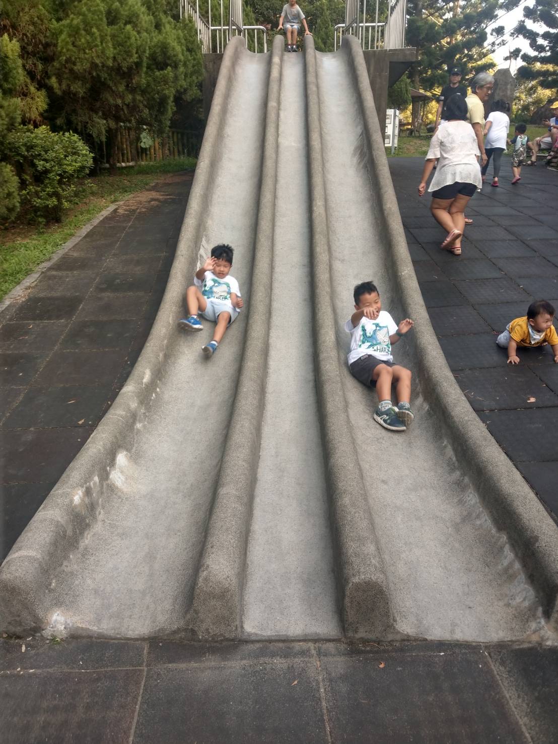 這次從最高點開始往下走,不過第一關看到溜滑梯,我們就下去玩了,所以開始卡關。