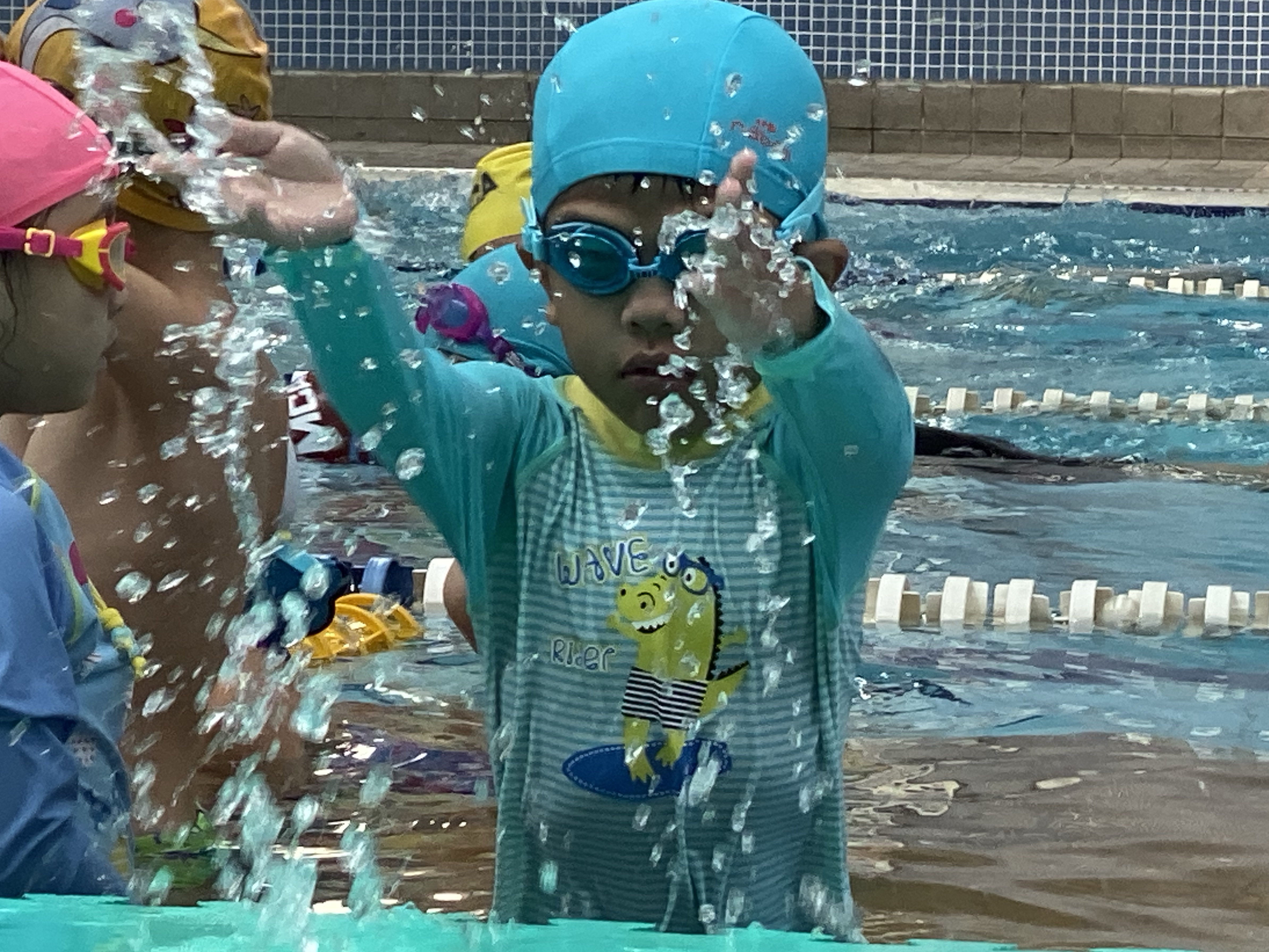 週六還是來游泳課報到了!教練說小沐沐有進步,只是過一會兒姿勢有變調了,哈哈!要多多加油小沐沐。