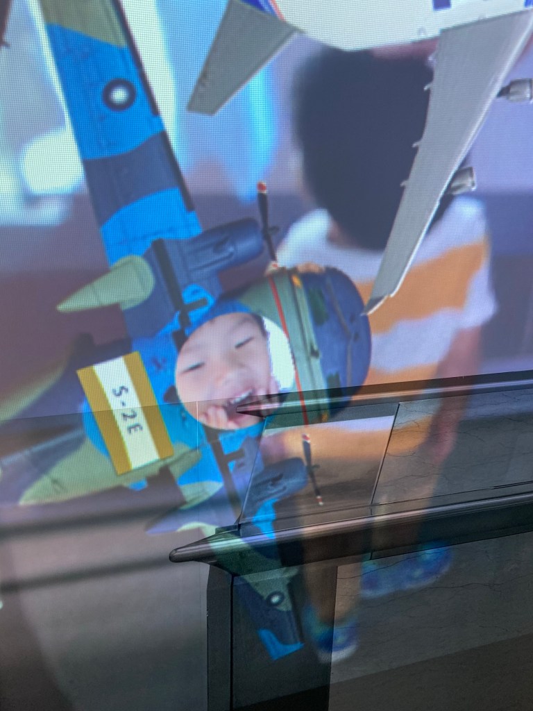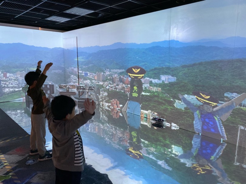大小沐沐則一直在玩人變成飛機的螢幕,另外就是人頭被貼在飛機上到處飛,原則上對小朋友來說還蠻有趣的。