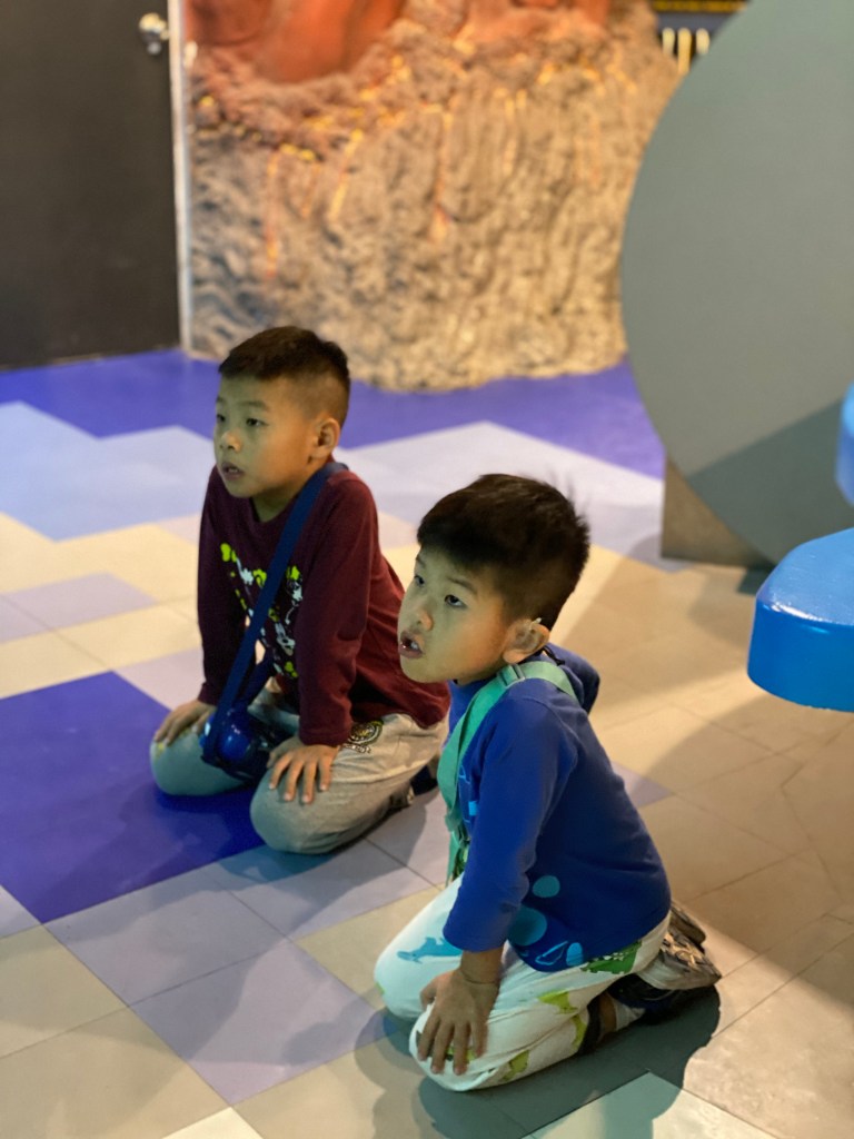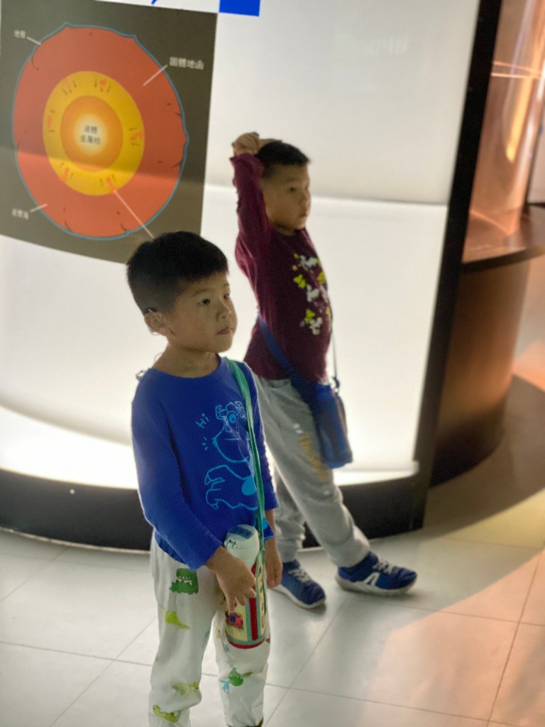 這次是先看地球的誕生,影片都看完,之後看台灣的生成,也是專心看完,完全是他們在主導要去那邊看,而沐媽有發現週日場的導覽,我們下午13:30就去聽導覽,聽食物好好吃,看身體的相關訊息。