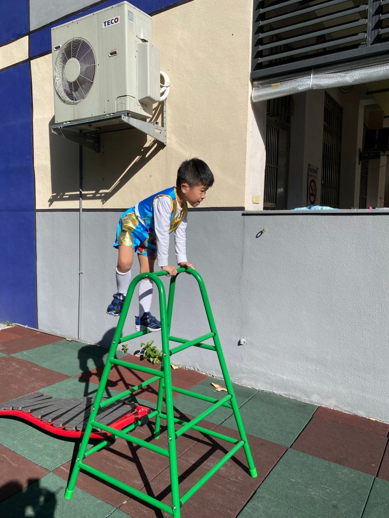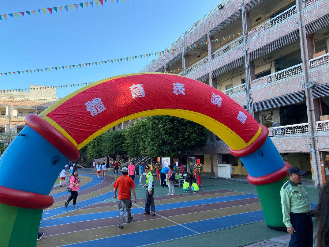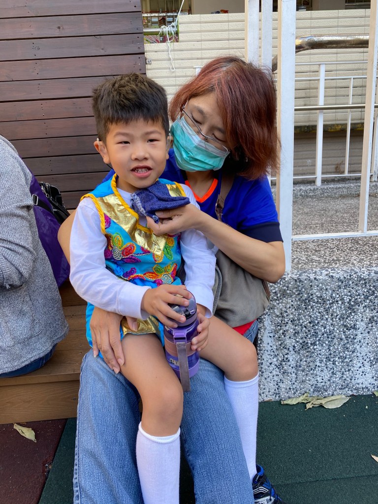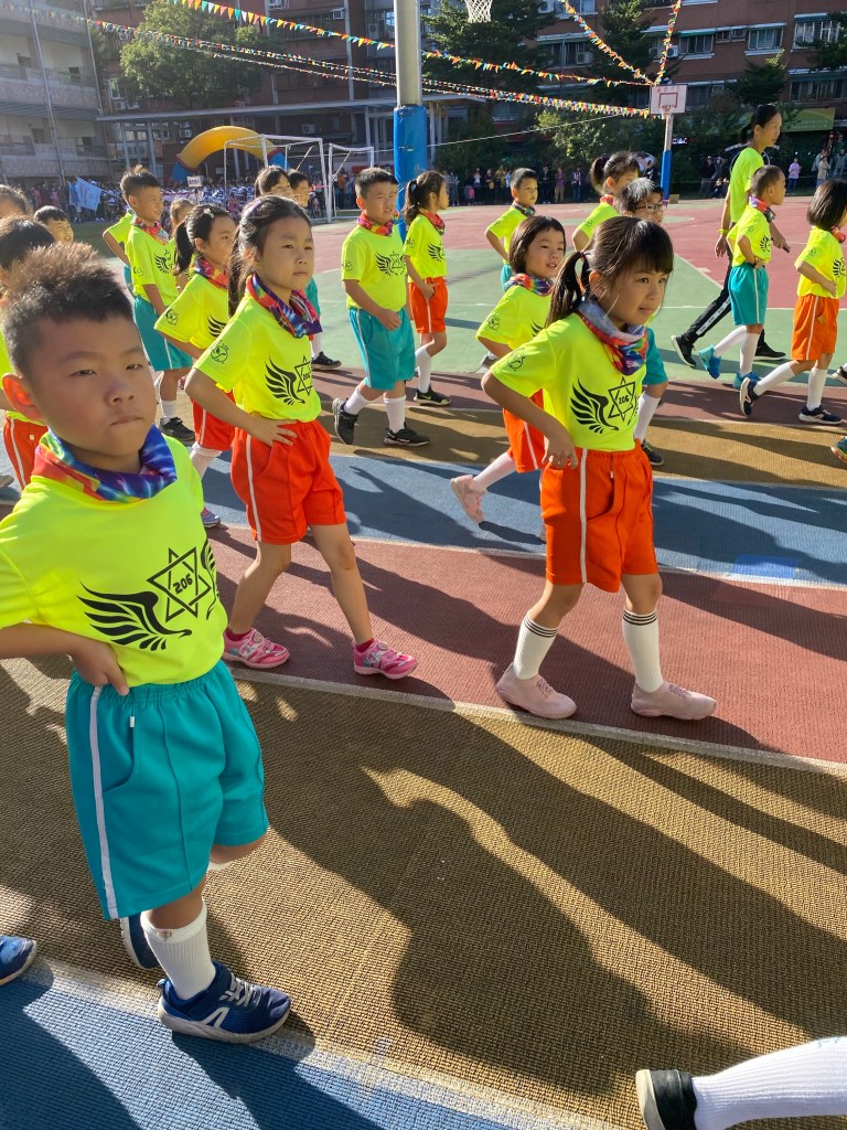 接下來排程都跟大小沐沐無關,但看到高年級的大隊接力,還是很緊張刺激的。等待出場的時間,我們跟小沐沐在幼兒園拍照,直到出場。