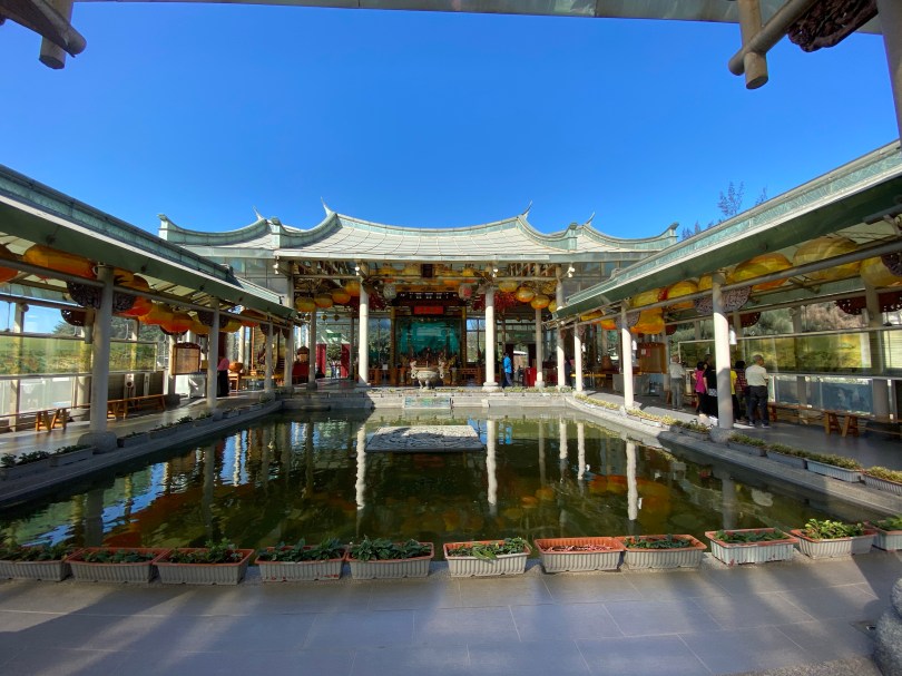 第二個是玻璃廟(台灣護聖宮),是這邊著名的景點,聽說晚上透過燈光會更漂亮,然後裡面的媽祖巷也是用玻璃製作的,所以相當的特殊,我從前門拍到後面的花園,這個相當的清幽,跟一般的廟宇的感覺有所不同,心中感覺到平靜。