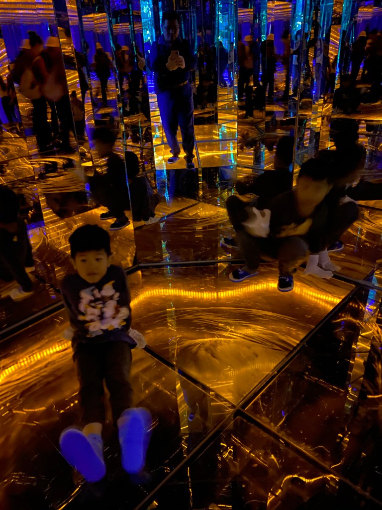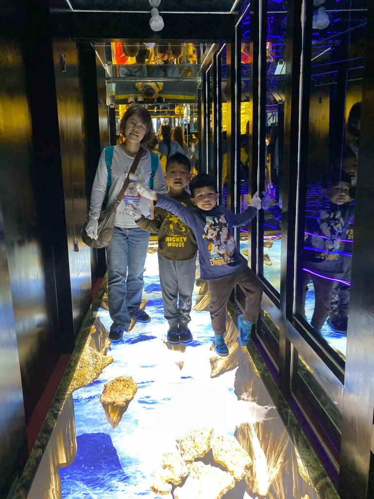 第四個也就是這邊另一個著名的景點"黃金隧道" ,但是這個就需要收費,費用為150元,主要是購買一雙拖鞋跟一個紀念杯,主要進去必須穿著新的拖鞋跟他提供的手套,主要避免玻璃刮傷與指紋,內部透過燈光鏡面設計,讓人覺得非常特殊,參觀完畢之後,拖鞋直接送給你(因為是個人衛生物品),然後換一個紀念杯子。