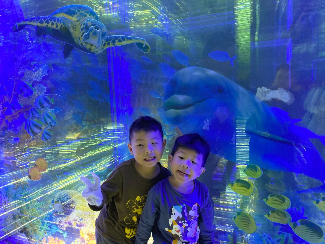 第一個卡通區域,原則上小朋友會相當的喜歡,大小沐沐也不例外,然後最近一直在看恐龍的書籍,所以就更加興奮,原則上就是景點,拍拍美麗的照片。