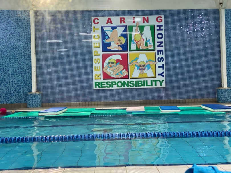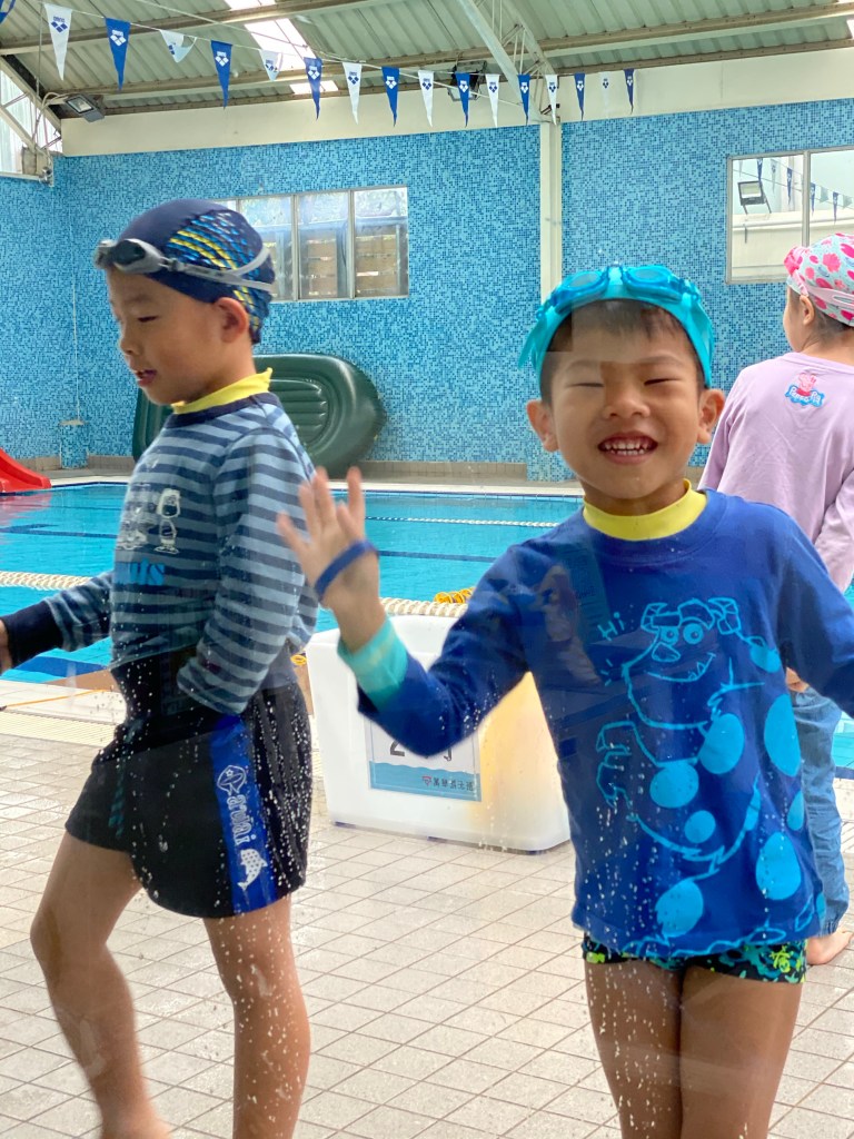 這是一個不錯的體驗,可以讓小朋友可以了解不小心落去怎麼辦。比較大的小朋友,則有傳風衣游泳、體驗水上有東西,如何在水下移動找可以呼吸的點等等。