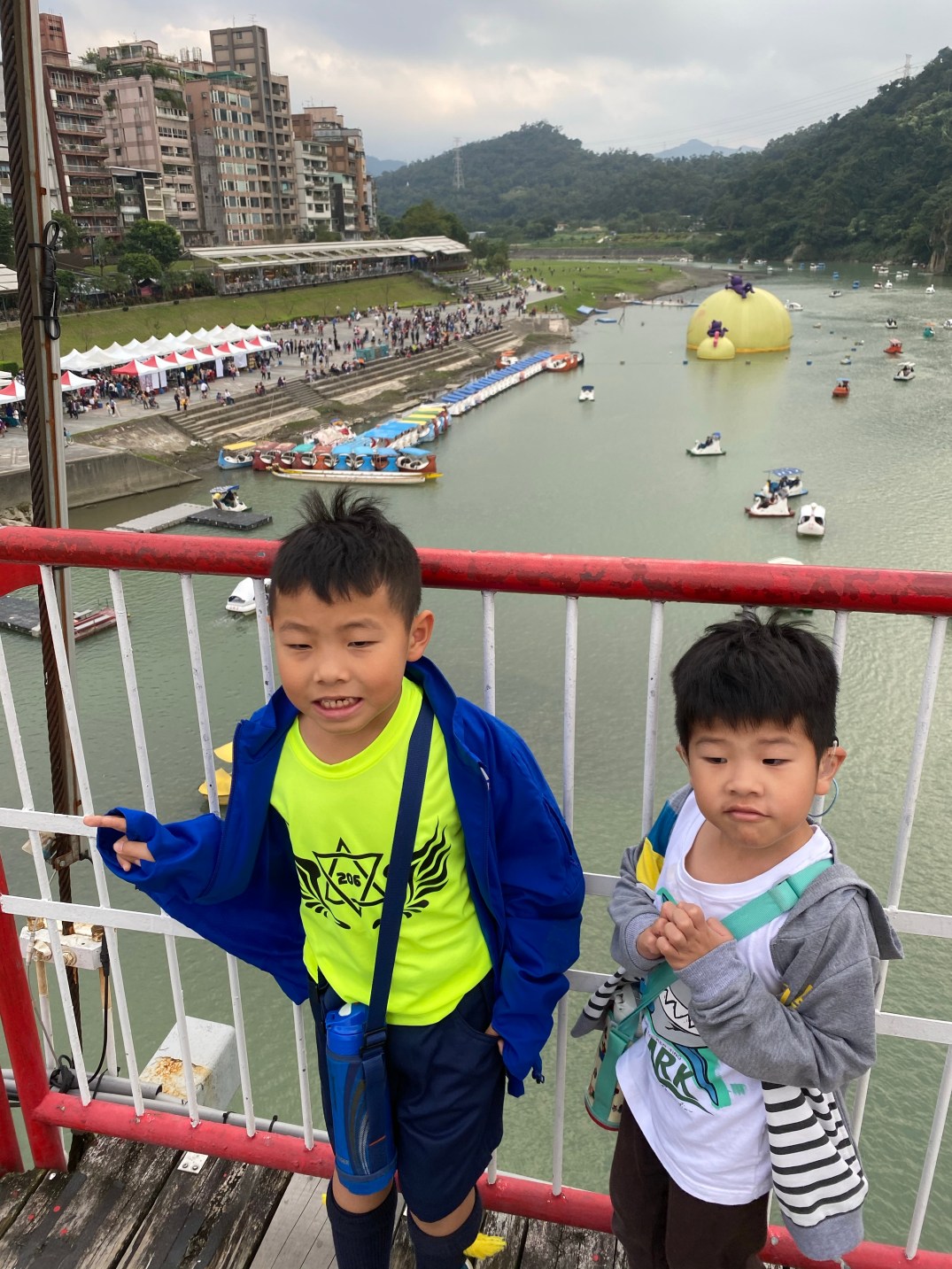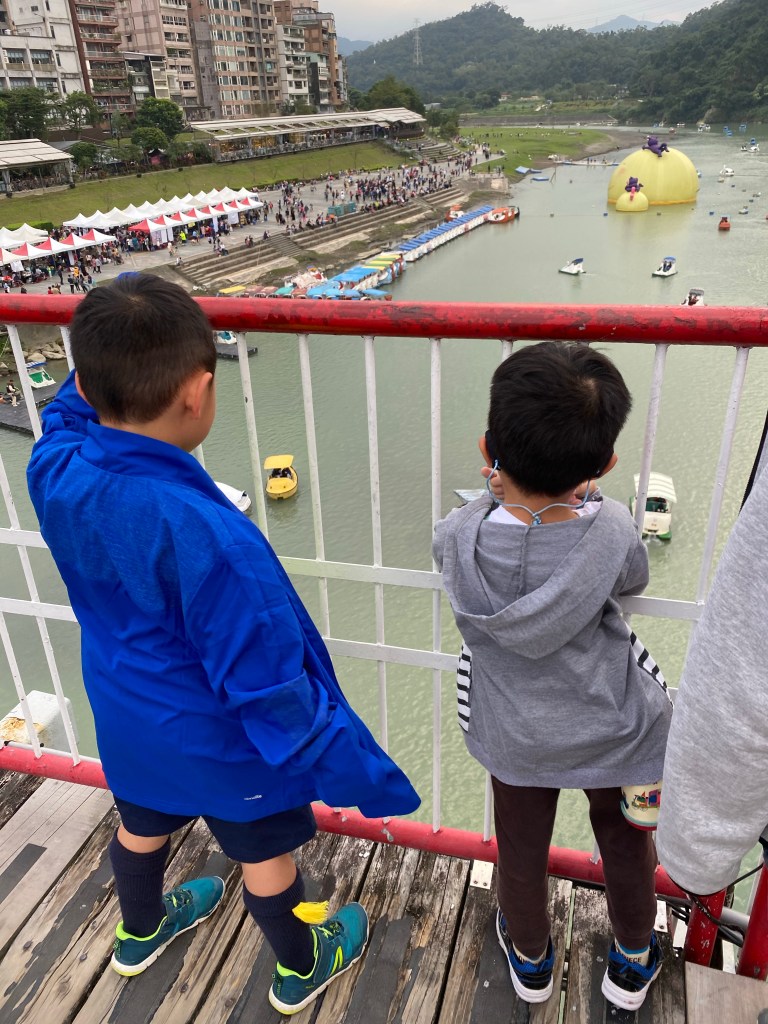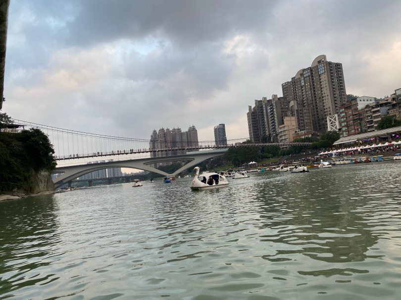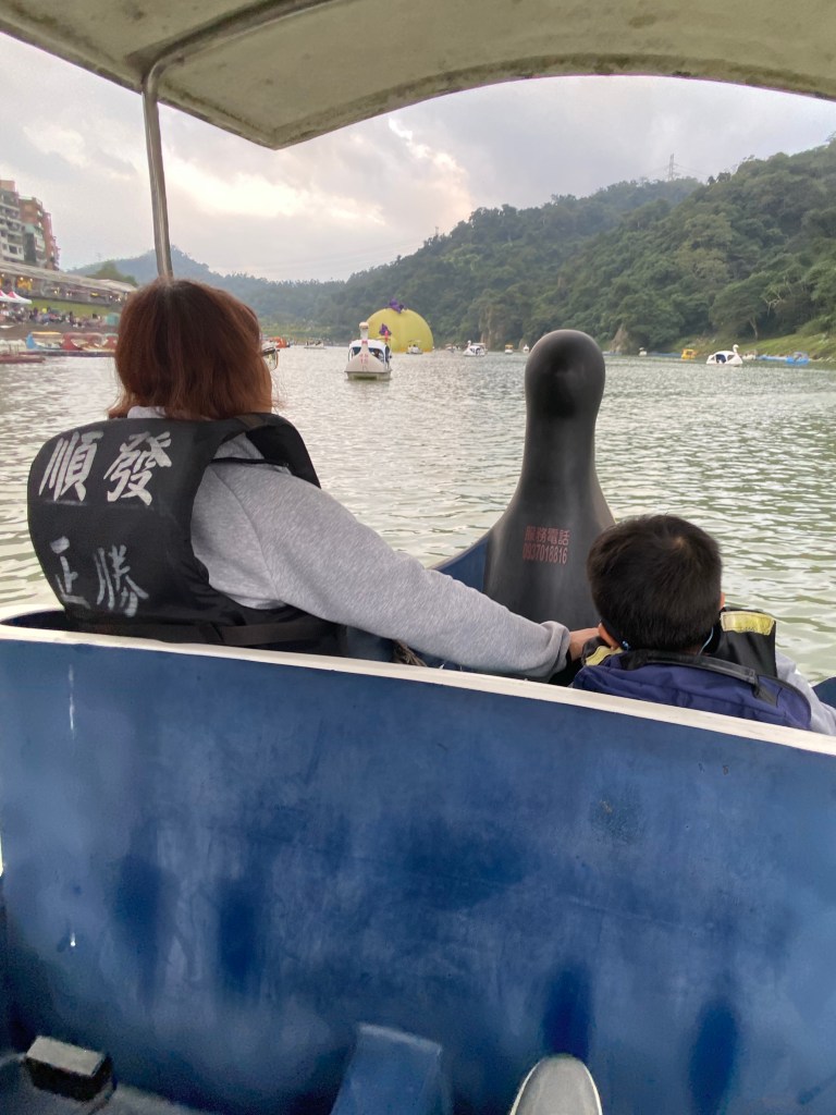 碧潭來過好幾次,其實就是散步行程,走走看看吃吃東西,結果大小沐沐想玩天鵝船,所以只好帶他們坐天鵝船,要腳動還是電動呢?以四人就算(2大2小)腳動一個小時500元,押金100元,電動半小時600元,押金也是100元,於是我們選擇腳動,運動一下,結果我們也才踩40分鐘左右。(他原則上會多給一些時間,因為要穿救生衣等)