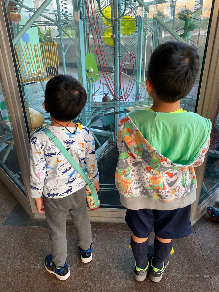 今天早上參加淡江童軍團45周年的團慶,活動直到下午2點我們才離開,大小沐沐在車上一直說要去科教館玩,於是沐爸就開車過去,此時進入科教館已經是下午3點,本來想去看恐龍的特展,發現真的好多人,於是放棄這一個行程,反而還是去玩常設展,最近大小沐沐對於史前的一些事務相當有興趣,在6樓看地球的起源,都會坐在那邊看一遍,然後再到各區去玩耍,而今天在6樓與5樓展區玩耍。