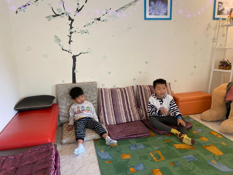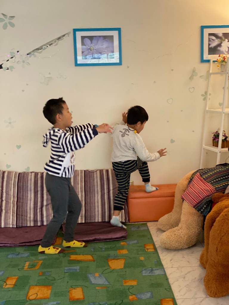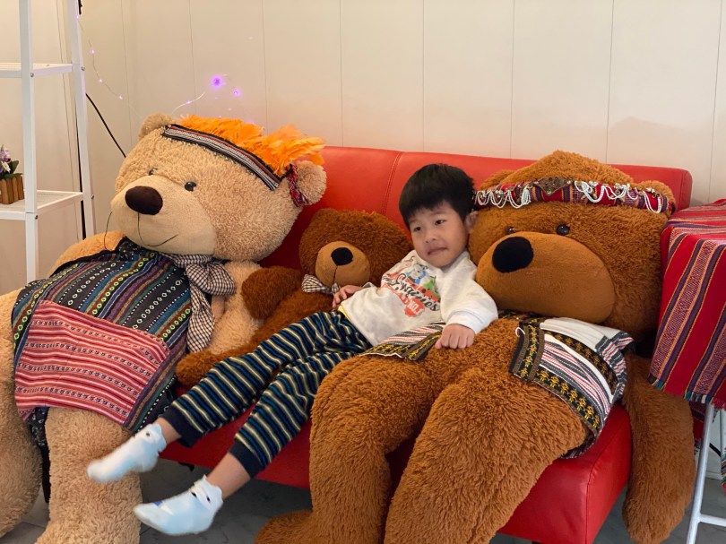 烏來湯屋用餐跟泡湯都可以看到烏來老街,感覺相當清幽,大小沐沐在這個場地玩得很開心,玩到大沐沐還在辦殭屍抓小沐沐。