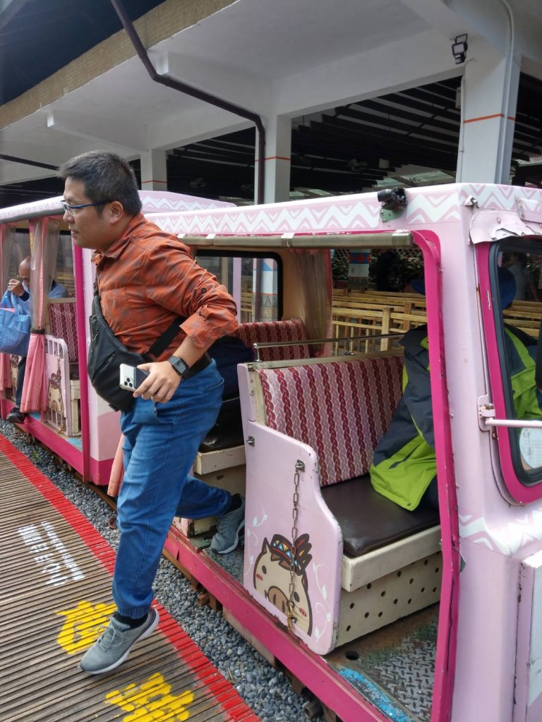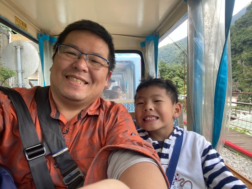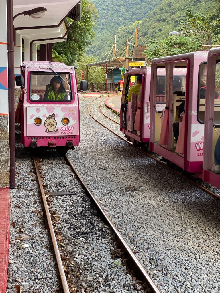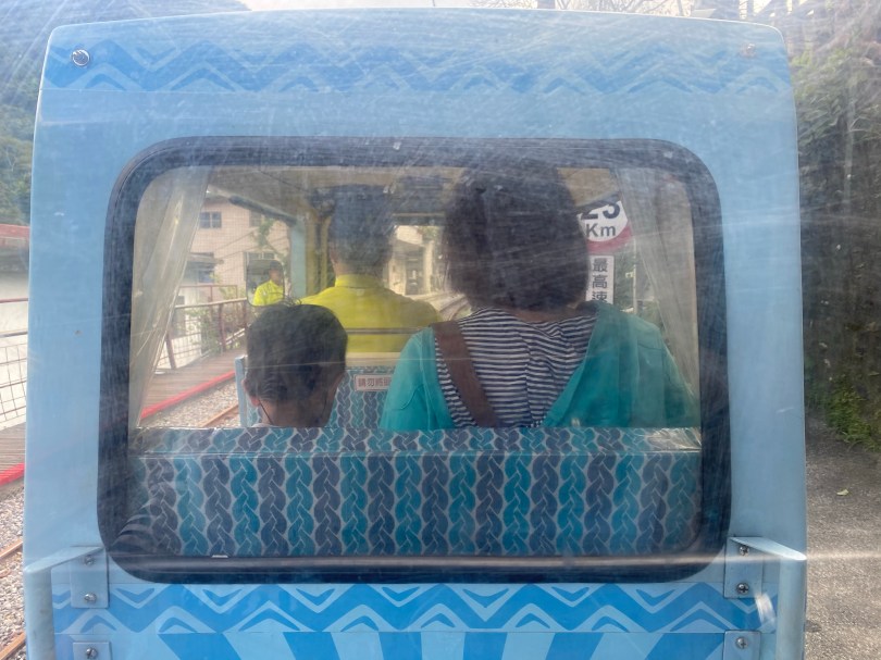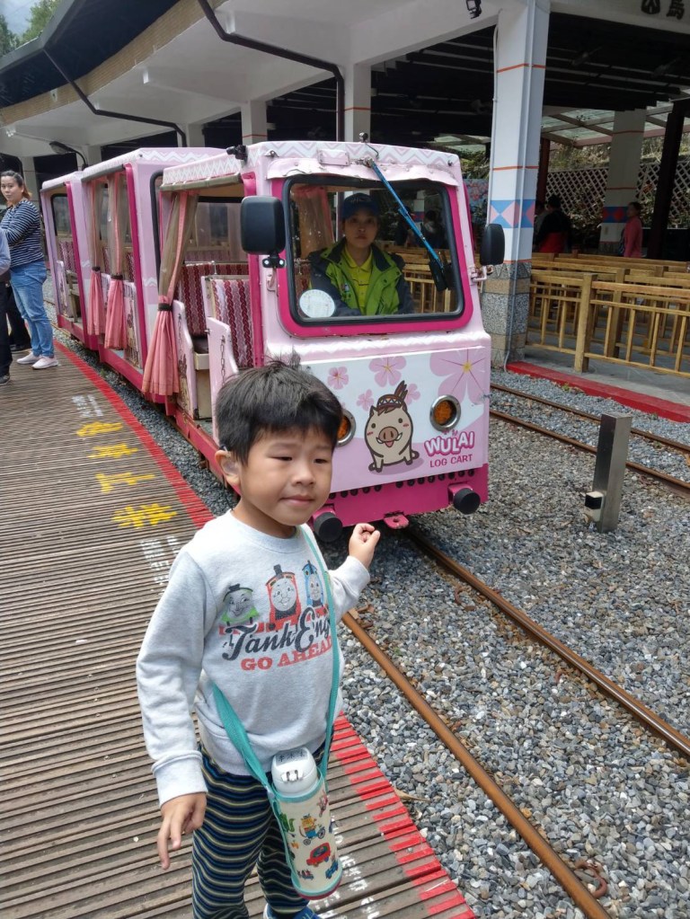 後還我們沿著路往下走,就是烏來車站,原來我們一直在烏來車站上方的建築物內,沐沐一家就去座台車,體驗一下台車,去程最值得座,主要是最後在瀑布站有過山洞,台車的速度還是有一點快,如果能再慢一點,會比較有休閒度假的感覺。