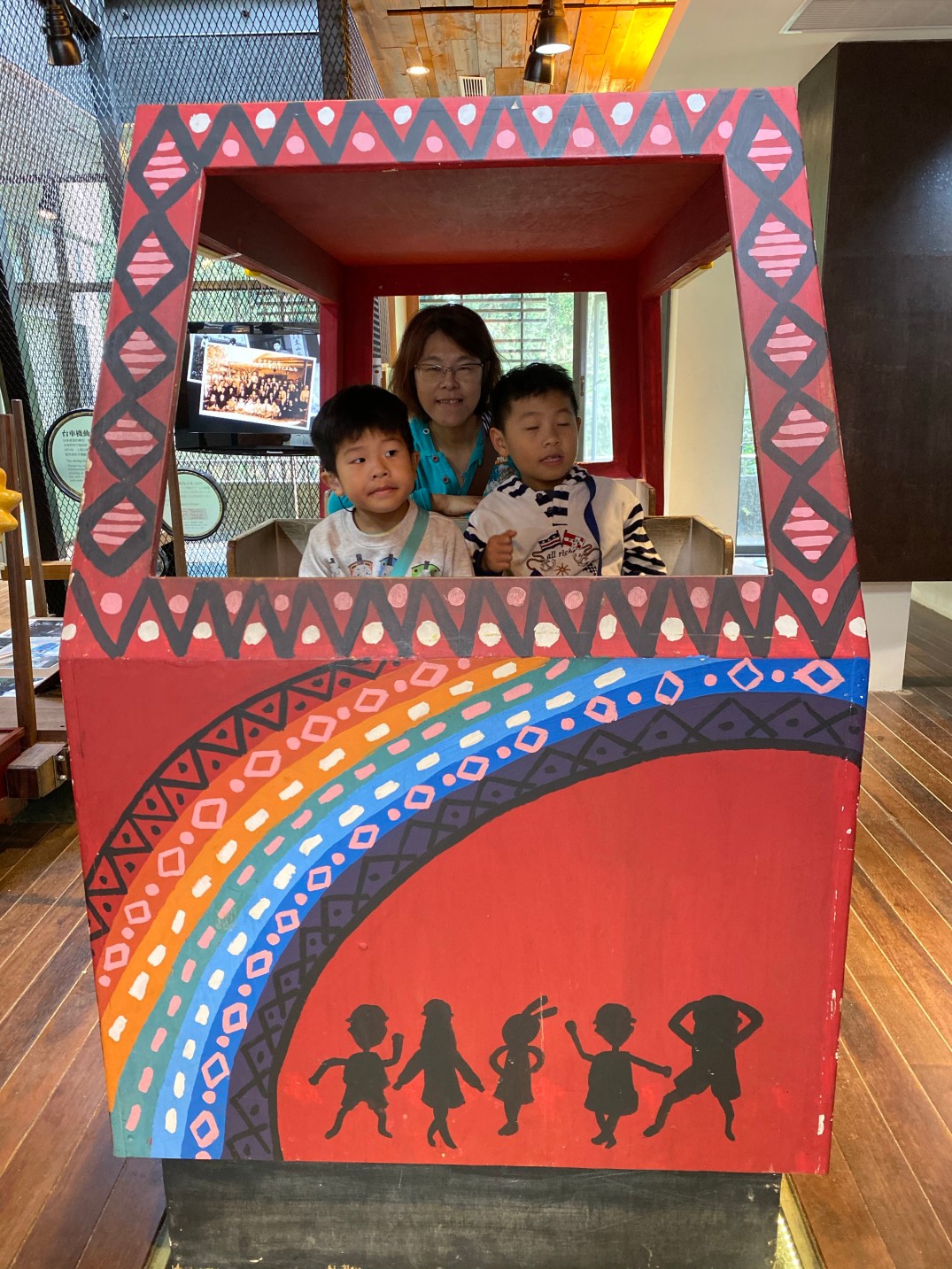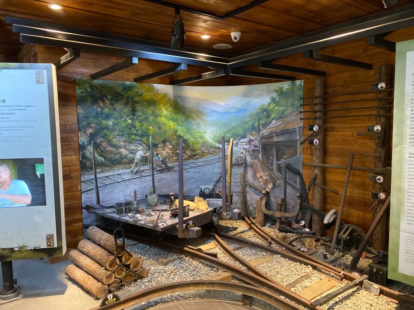 在烏來瀑布區,就沒有老街熱鬧,還是有幾間店家,然後有一個專門介紹台車歷史的展覽館,旁邊剛好賣回程的票,裡面介紹台車的發展及一些展品,然後他有一個平台,拍照也相當的不錯。