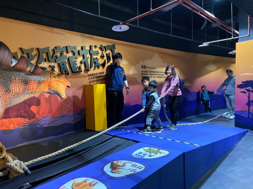 獨木舟算是不錯的體驗,因為一家四口都坐在船上體驗恐龍世界,還蠻佩服設計人員,將一個水道在室內繞一圈,因為場地沒有很大,但可以在上面5分鐘左右,感覺很有趣,然後要保持平衡,不然還是有翻船的危機。在船上繞行一週,穿越展場,獨木舟上看恐龍別有一番風味,只是要一直提醒小孩,注意船的平衡。(若想直接看展場,也可以選擇不要獨木舟)