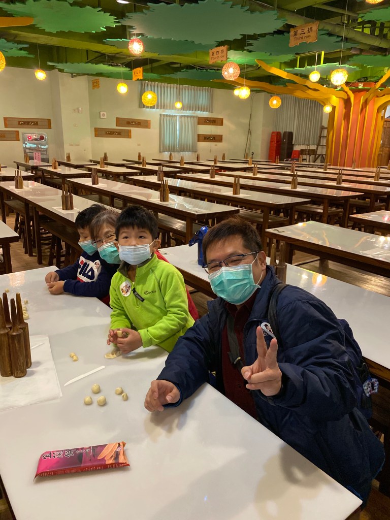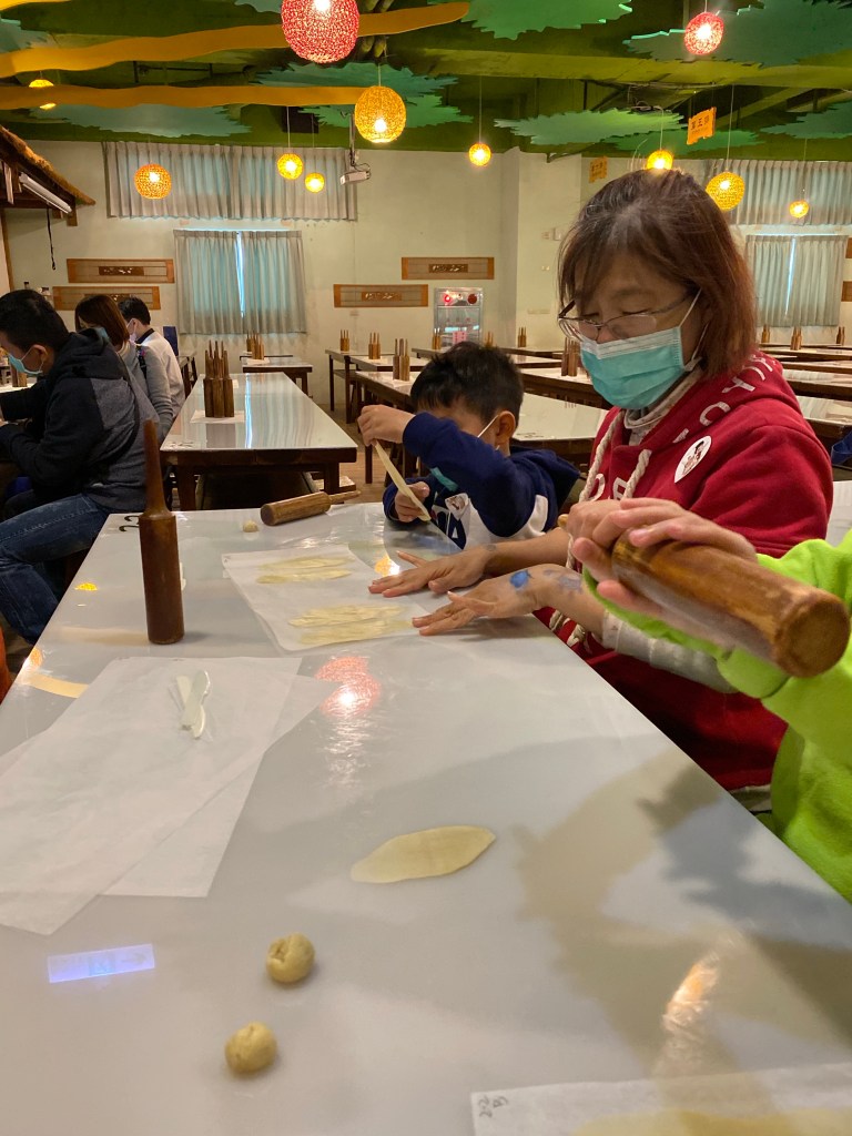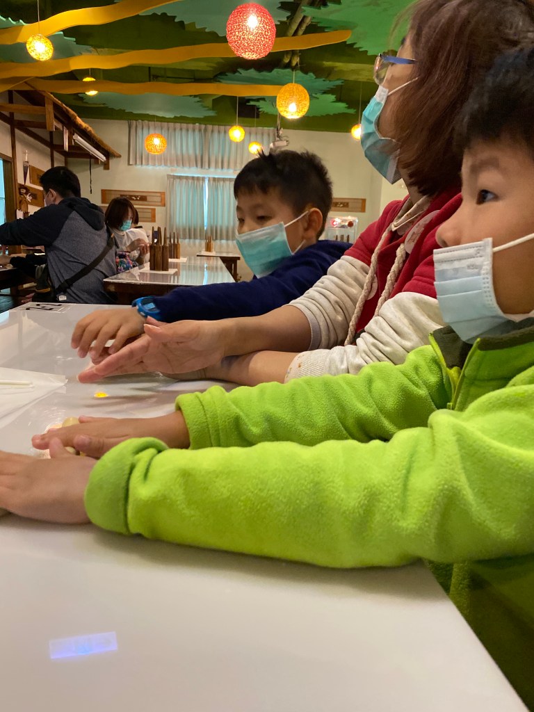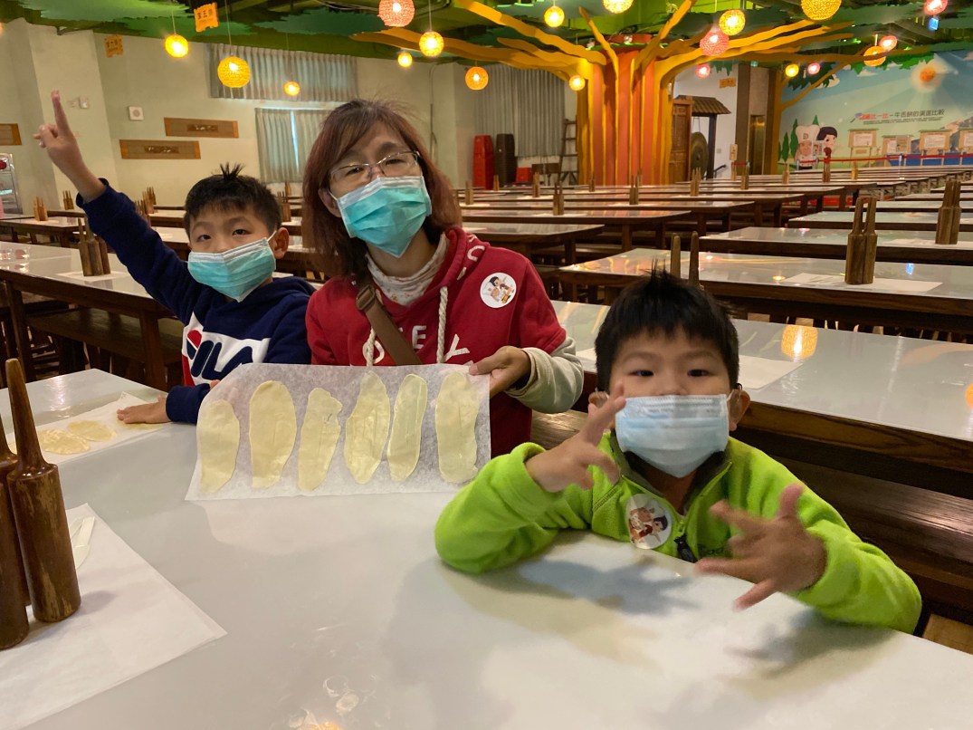 主要還是2樓體驗宜蘭餅的製作,對於大小沐沐才是有興趣的。製作上沒有太困難,只是小孩還是需要大人幫忙協助,才能完成,製作成6片很薄很薄的牛舌餅。