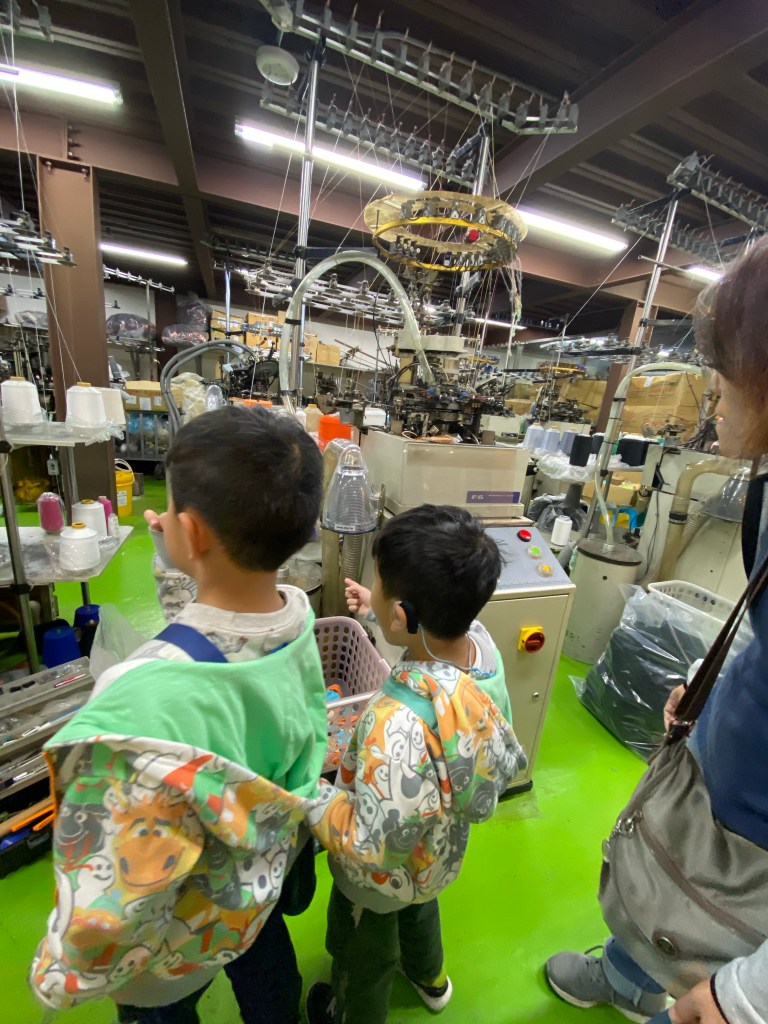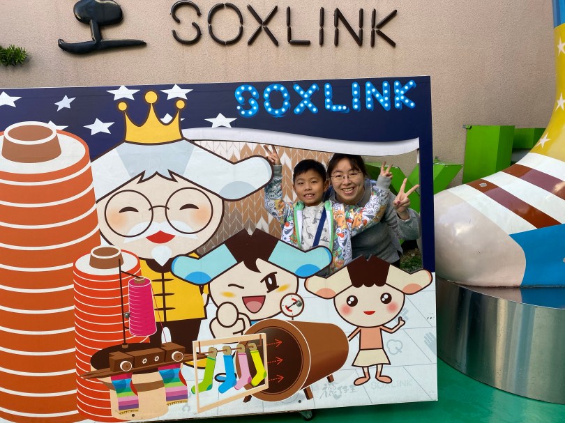 沐沐一家相當幸運,幾乎只有幾組客人,然後我們家有兩個小朋友,所以我們可以跟襪子的自動化機器近距離接觸,沐爸在跟老闆聊天才知道這邊只是示範區,而已目前還有其他自動化的工廠,目前這邊的代線較舊,所以可以拍照,新的當然部會給人家看了! 另外,襪子編織好一部分後,要人去翻面,在進行縫合,也就是我們會在襪子內看到線頭的原因,然後人再把它翻面,沐沐一家終於了解這樣的製作了。