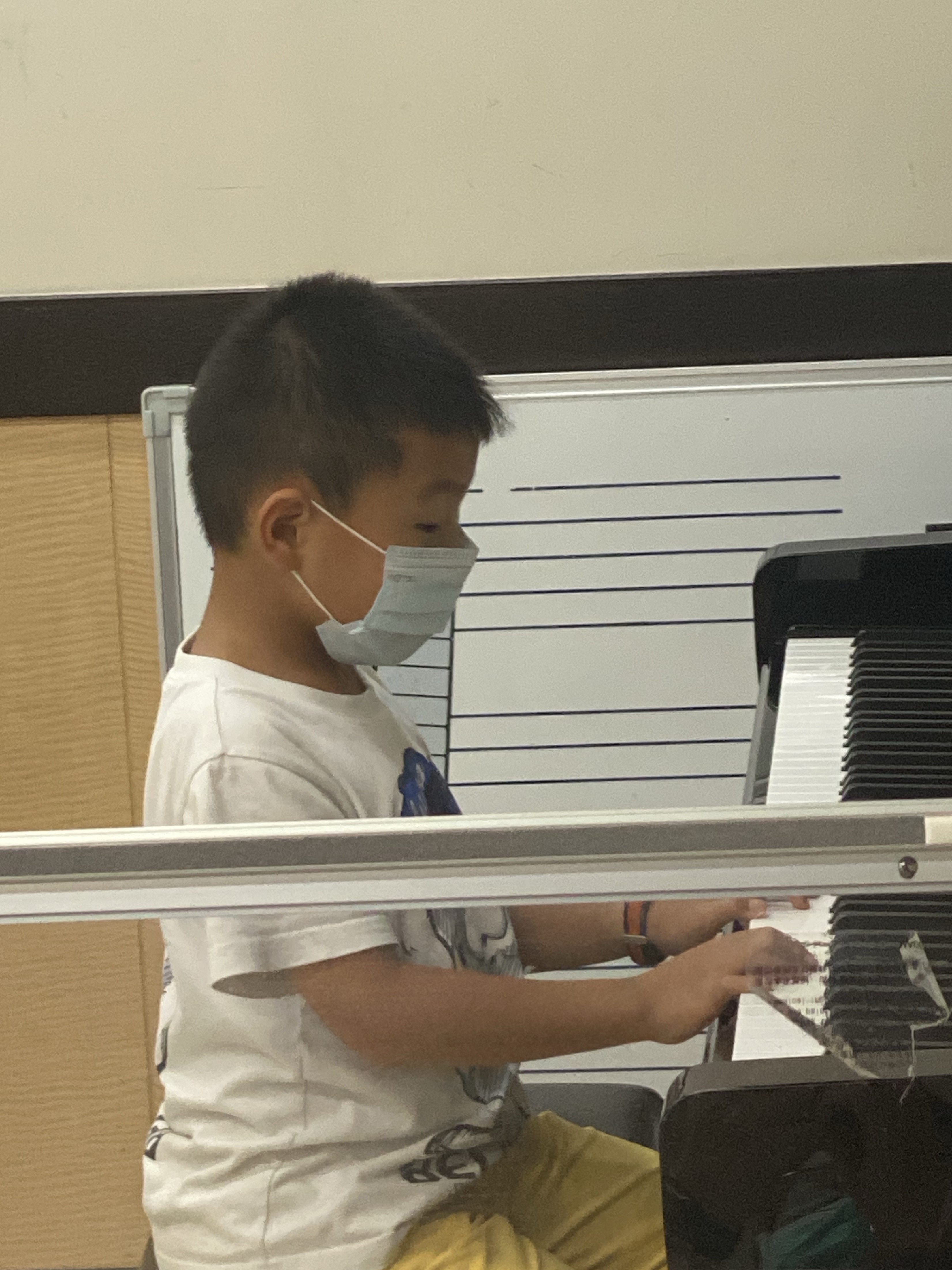 大沐沐已經進入第四季,即將邁入第五季,彈的技巧,沐爸已經無法跟上進度,只能幫他多注意老師說些什麼,因為接近60分鐘的課程,要小學二年級都一直專心都很困難(大人也很困難),只能說小孩真的學的好快。