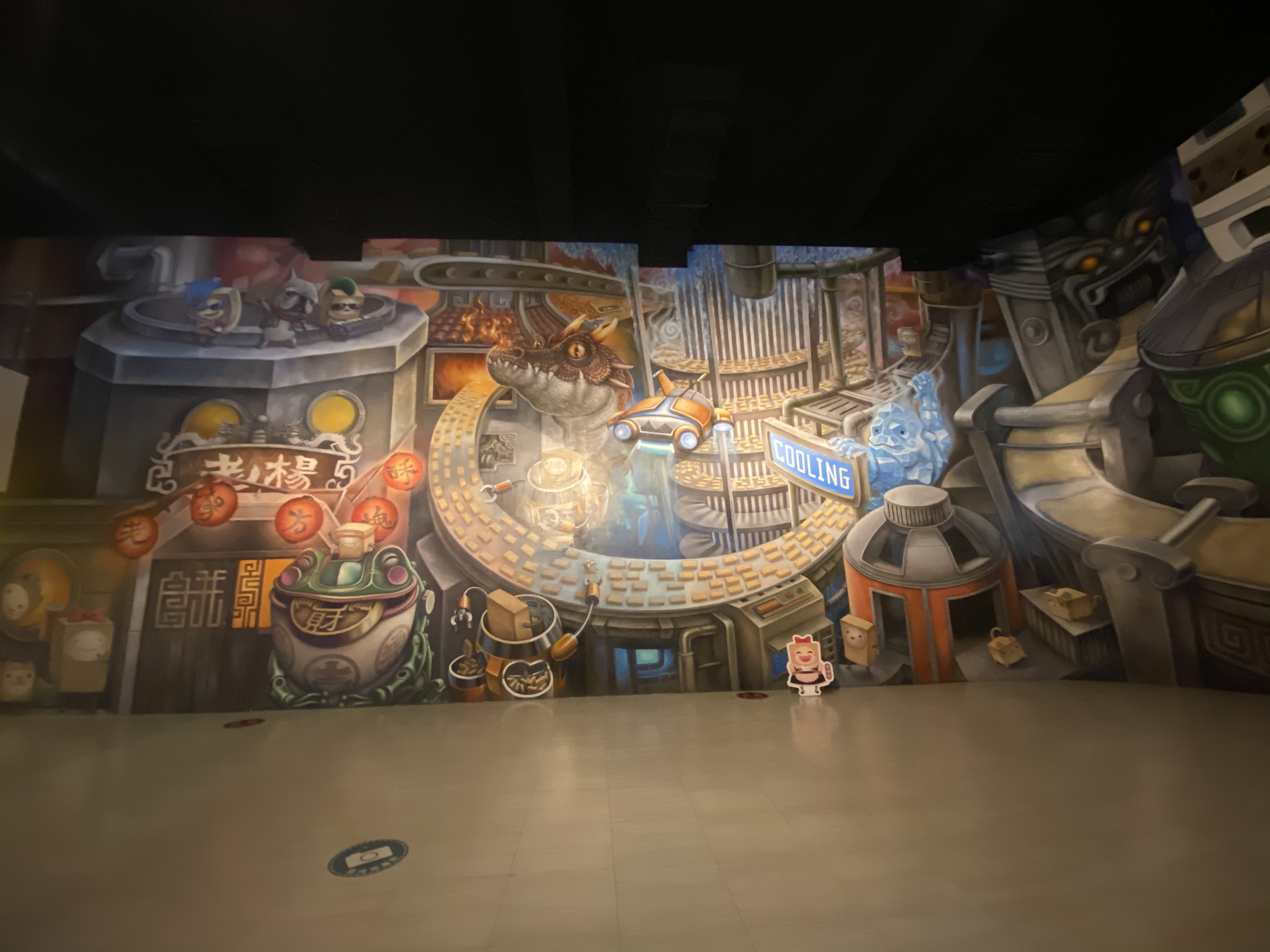 場外主要的場景,真的要去看到然影片,就可以知道為何這樣設計,故事主要使外星人的太空船故障降落,然後跟老楊發生關連,詳細就入館看影片。館內還有其他影片,就是該品牌成長的里程級及方塊酥的製作方式。