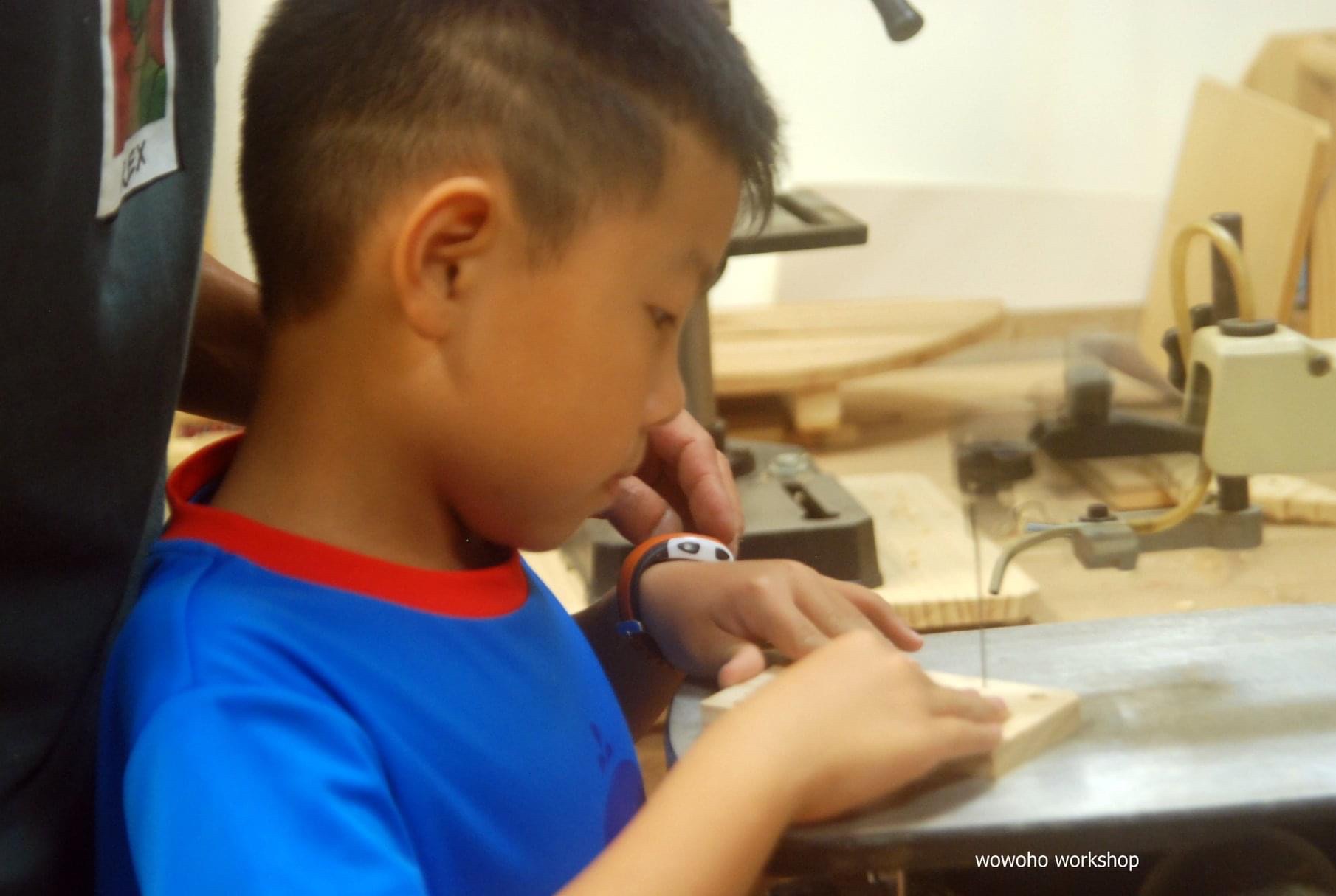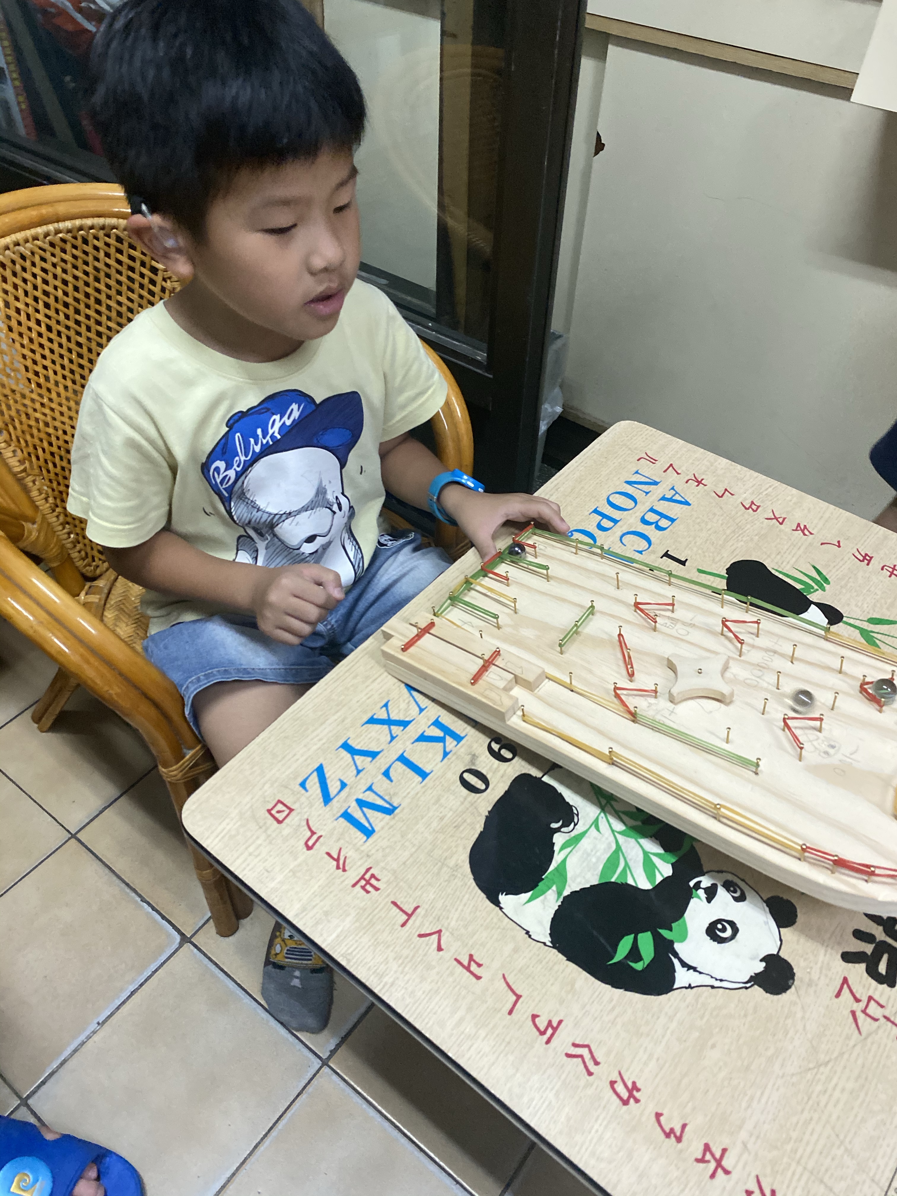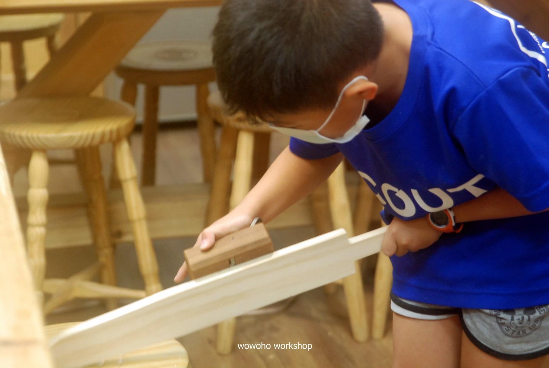 小沐沐製作彈珠台,根據木工老師在課後跟我們描述上課狀況,小沐沐在用鐵鎚敲打釘子仍有些不夠力,所以需要老師協助,這次要敲打的釘子很多,從一開始的偏移打不太到,後面就越來越準確了!