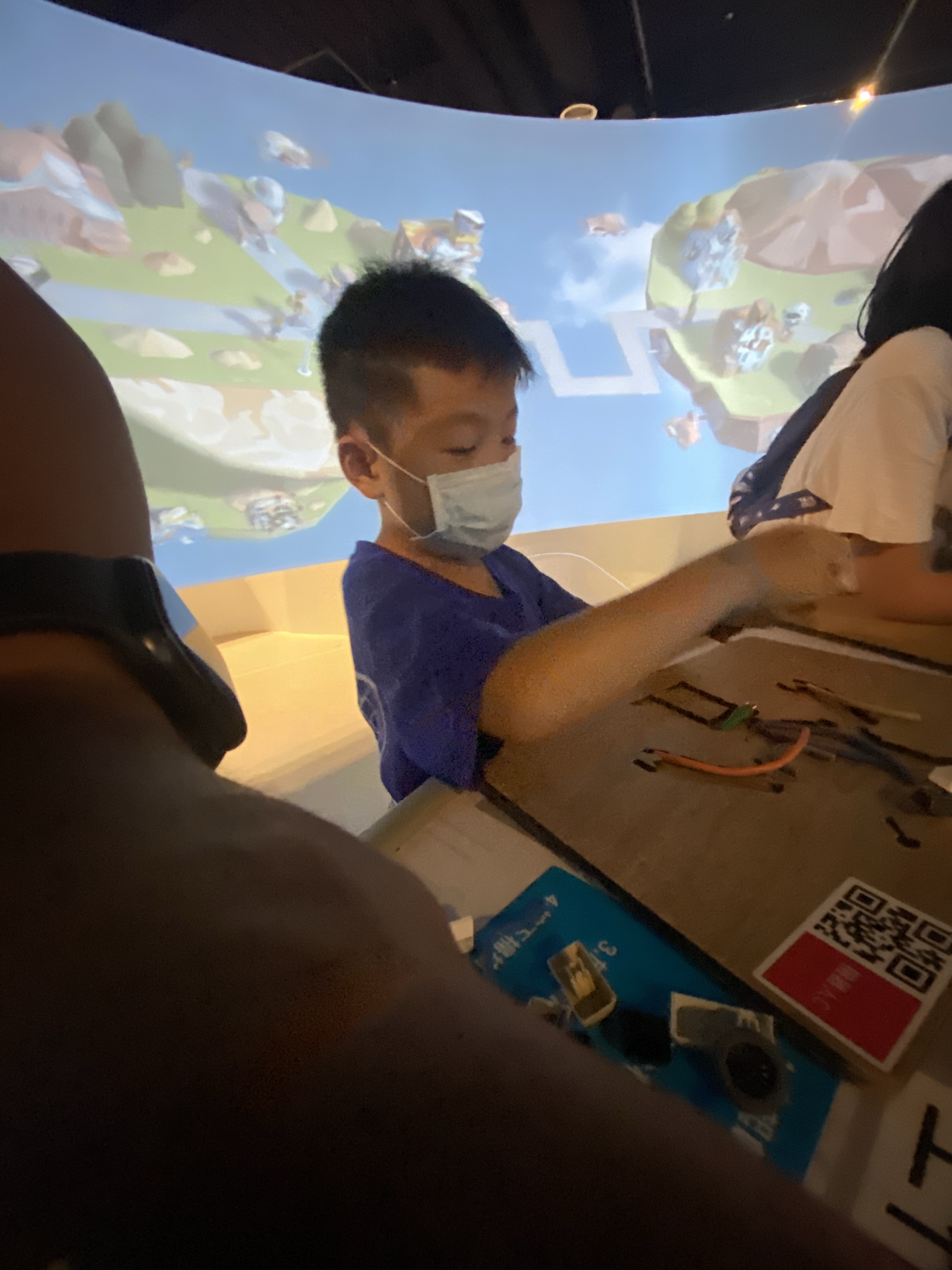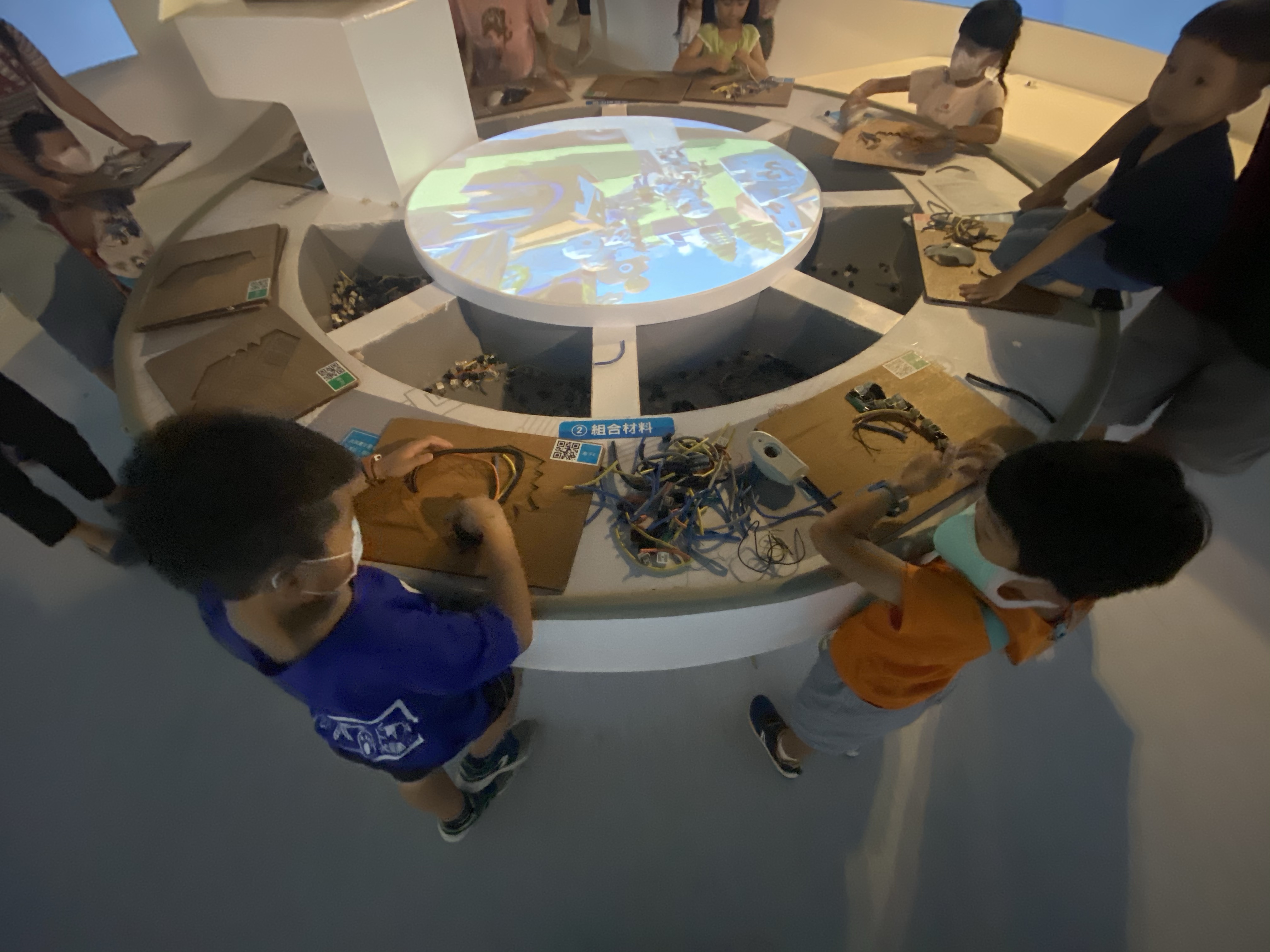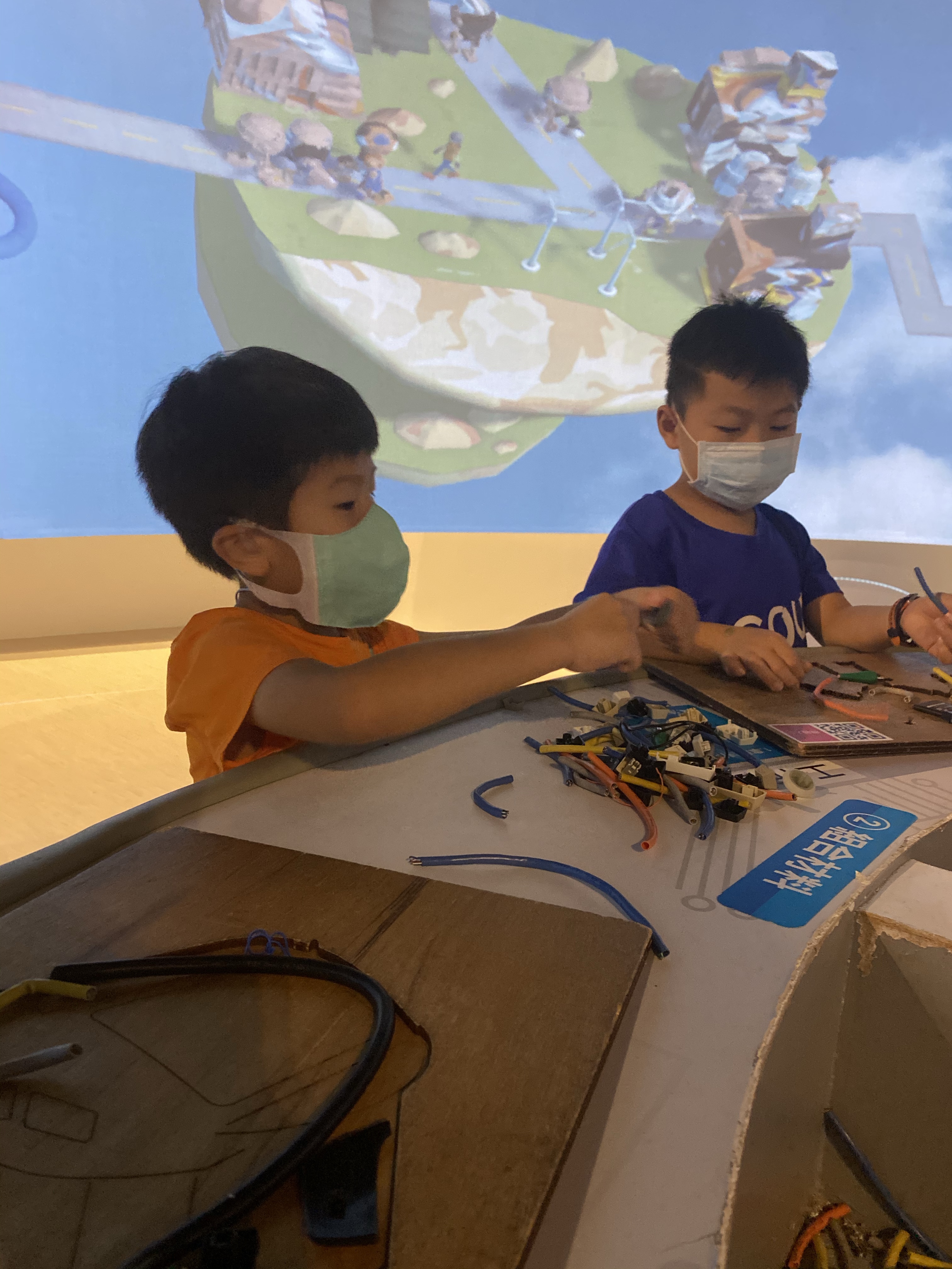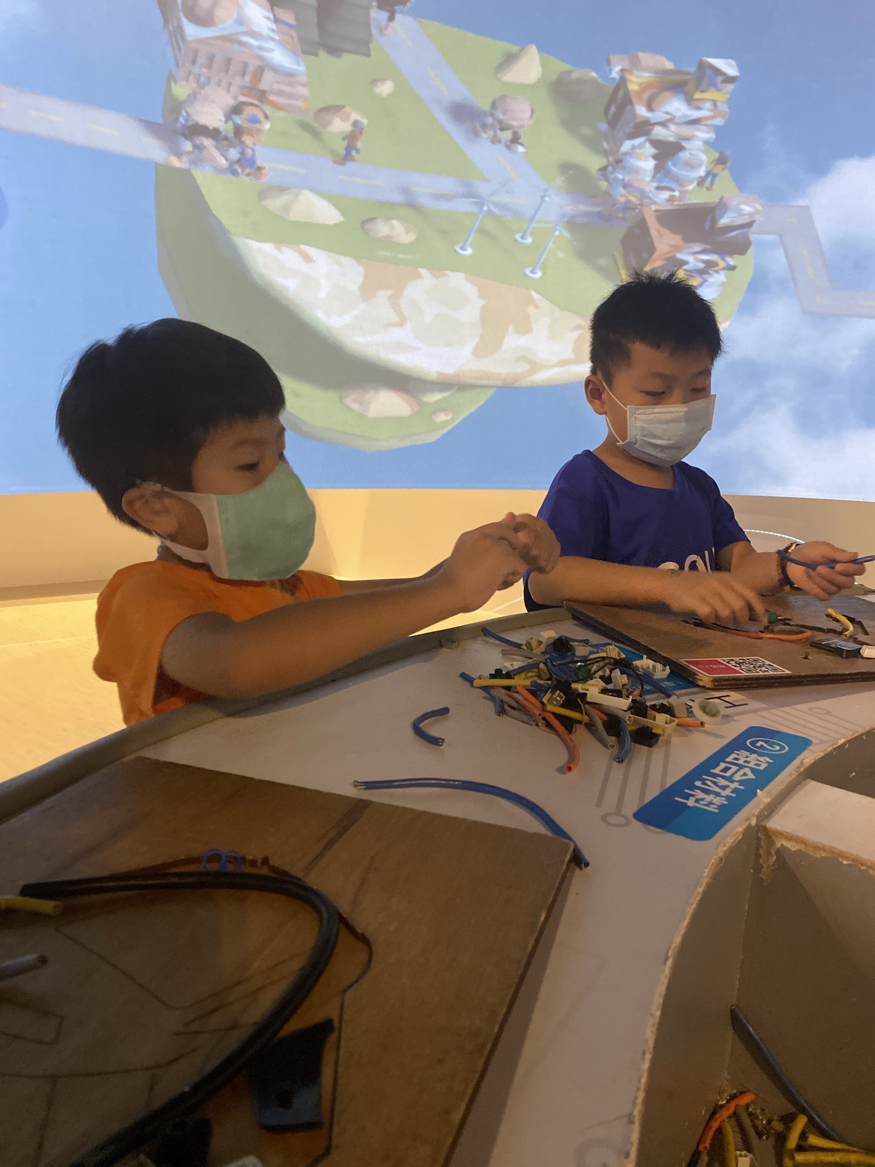 3樓有一部份在介紹「半導體特展」展示相關知識,對於這些小學生、幼稚園好像還是有點難,只能走馬看花,只有最後將廢材料拼裝成房子、車子、機器人的上傳的影像,對於小朋友是有興趣的。