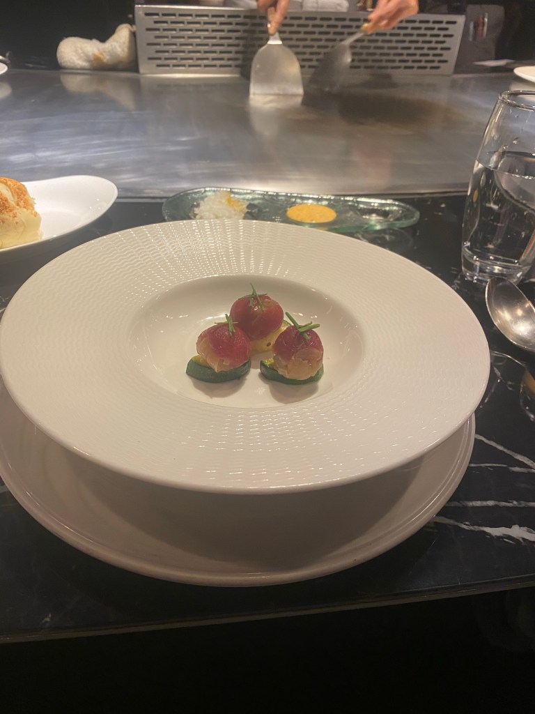 今天是老婆生日,我們最後決定去夏慕尼新香榭鐵板燒去吃大餐,其實也就一家人去吃,這邊餐點真的很精緻,這一天比較神奇的事情,在師傅製作料理的時候,我們以為都是沒有辣的食物,突然間師傅丟下紅色粉末(有一點辣),我們愣住了,主要是小沐沐不吃辣,師傅很厲害透過再次煮熟、炙燒等程序,再次吃到口中,就沒有辣味,讓我們感到神奇的地方。