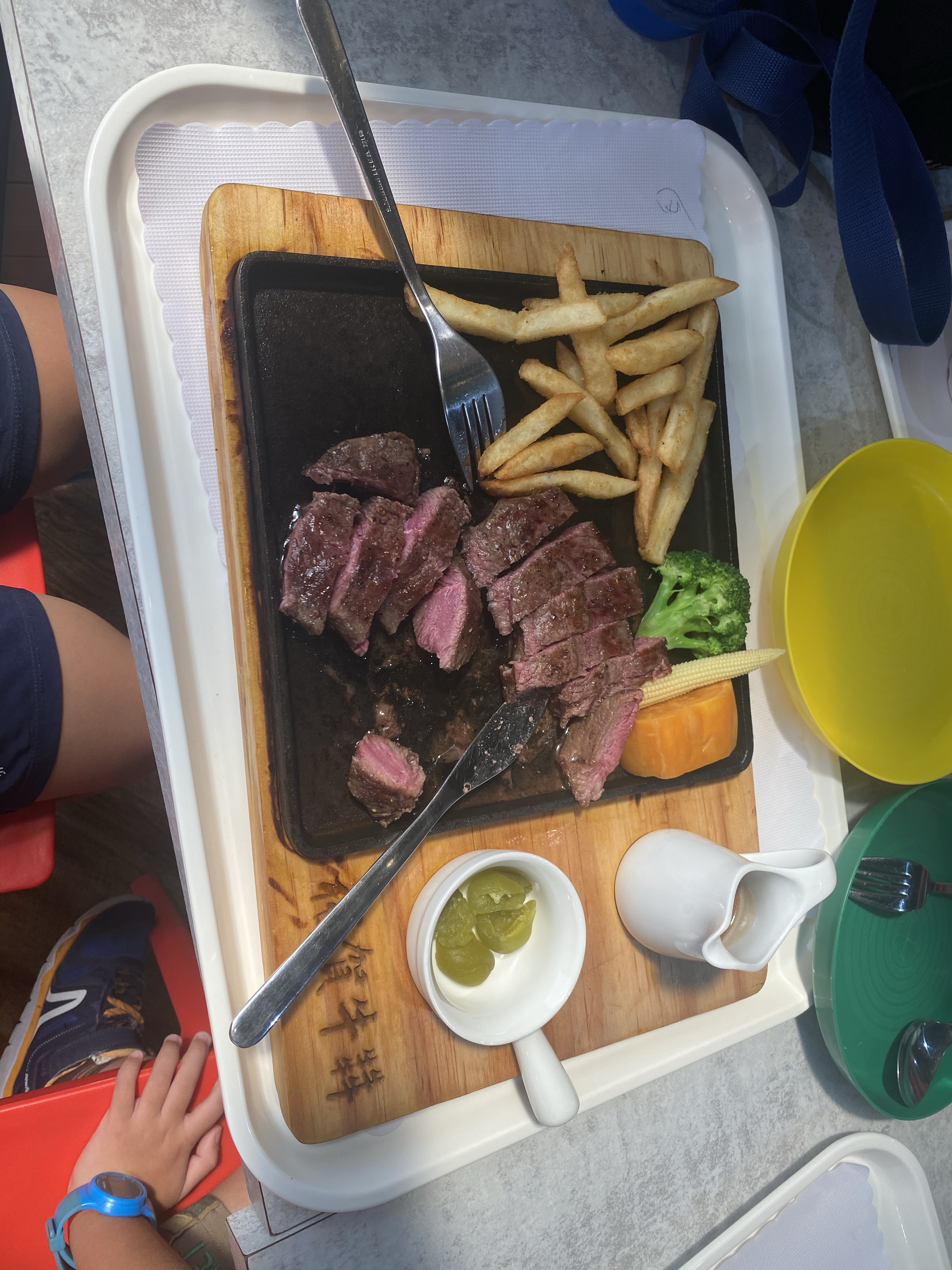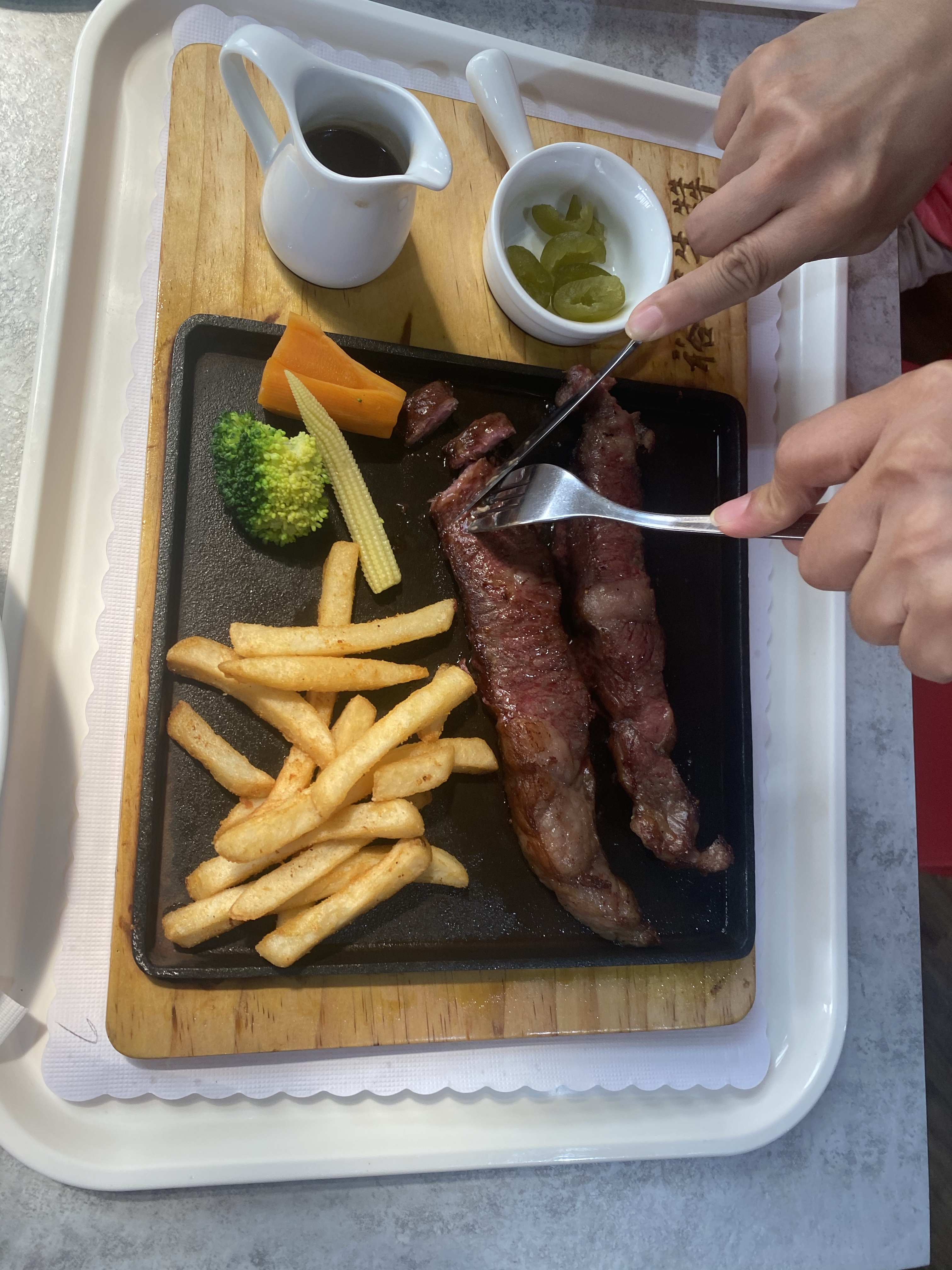 中午我們選擇買牛肉的觀光工廠,人真的很多,我們沒有辦法排火鍋或烤肉,所以就買排餐,單價上屬於較高,但是真的很好吃,玉米濃湯跟羅宋湯的份量真的很足。