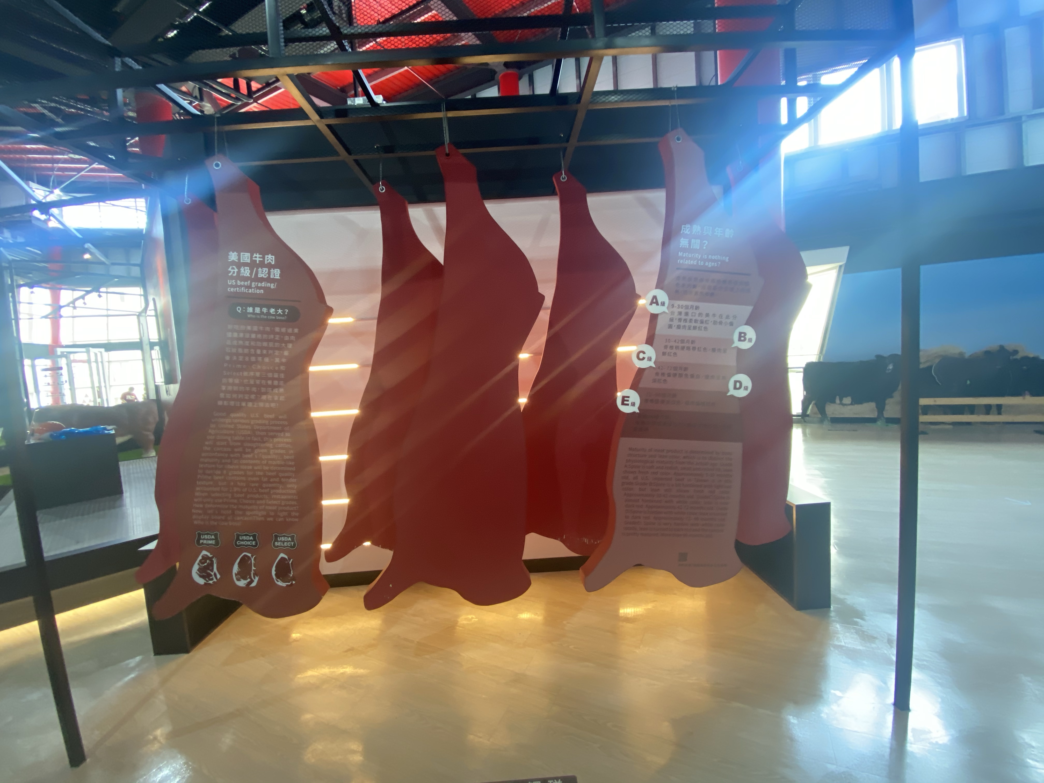 二樓三樓都是牛肉各種肉的介紹,以及海外牛肉送來後如何分解及低溫運送,以維持牛肉的新鮮度。