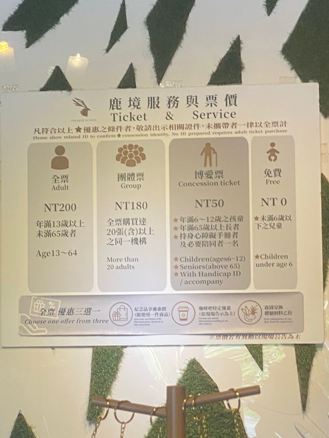 午餐過後,沐沐一家離開海生館,於是找地方看梅花鹿,於是找到鹿境梅花鹿生態園區,他離恆春比較近,而且離海生館距離不遠。門票需要200元,兒童需要50元,但會給一杯紅蘿蔔餵食梅花鹿。
