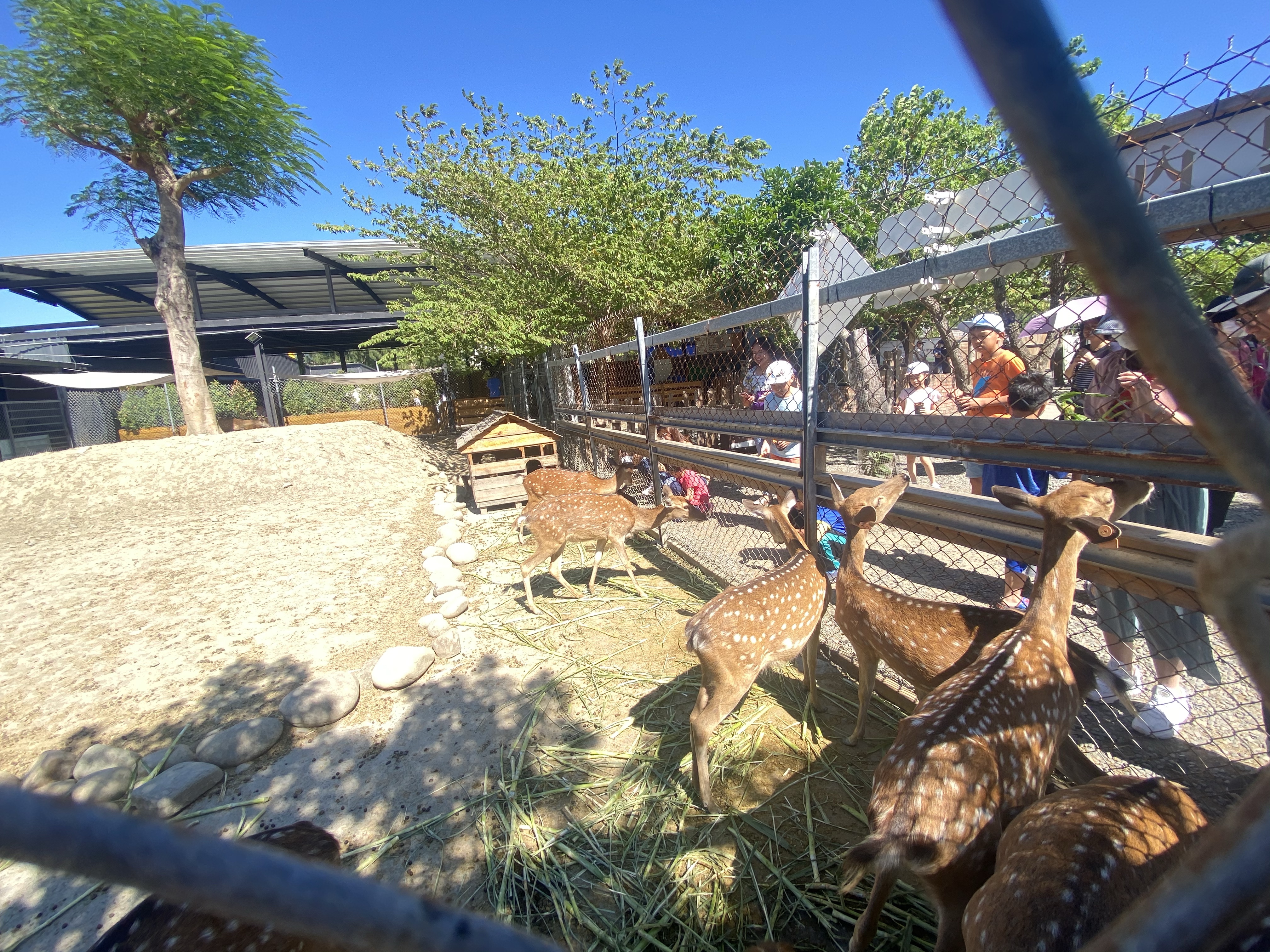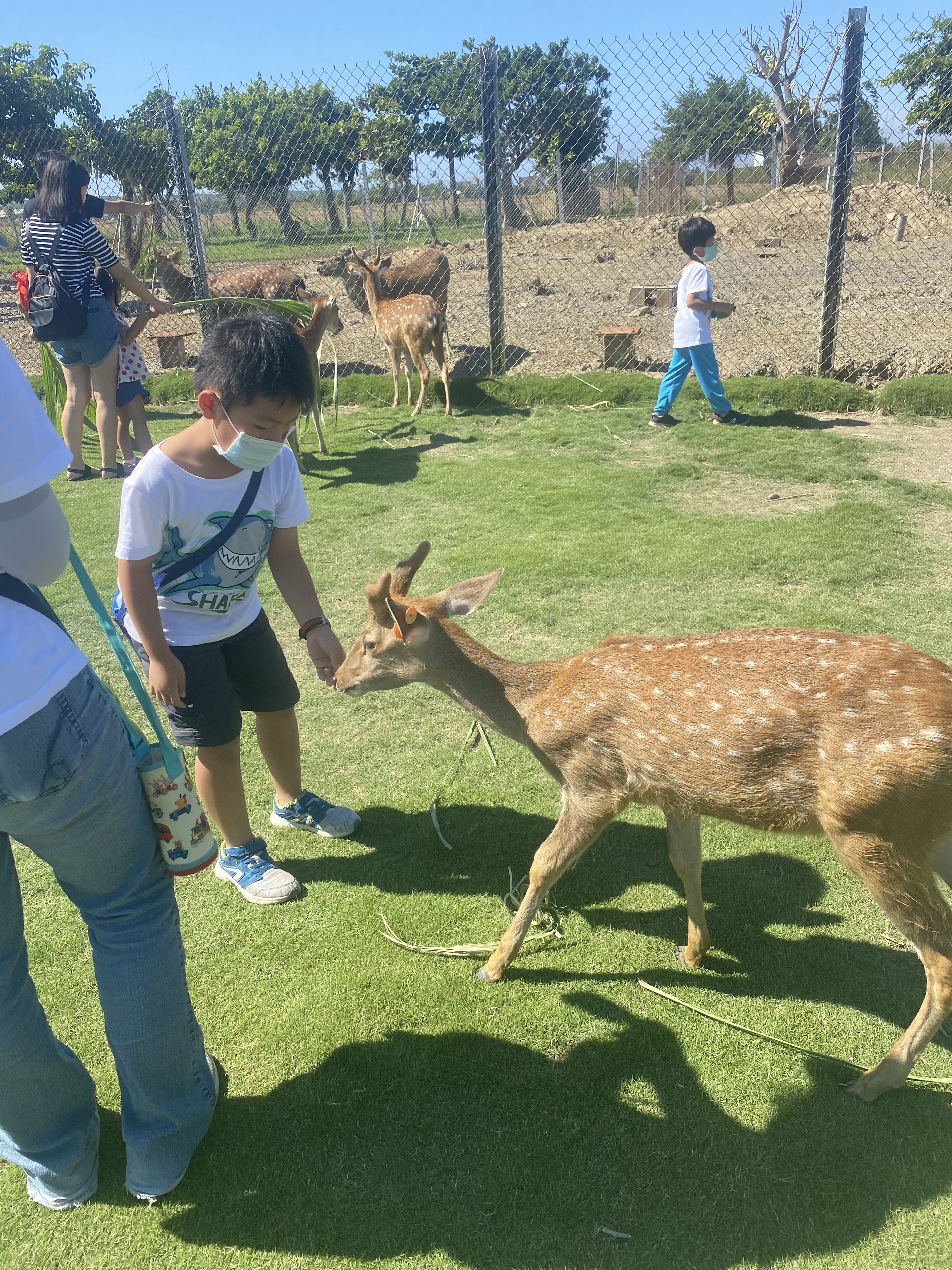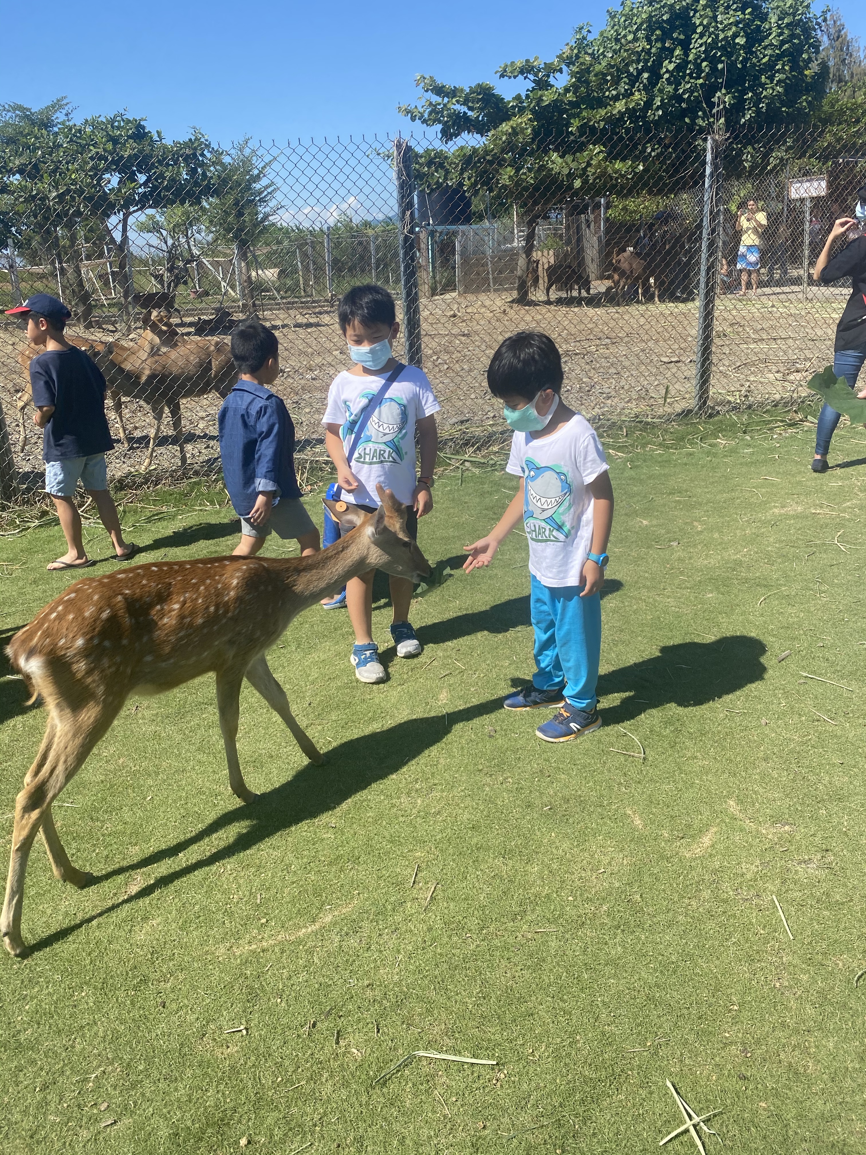 進去之前,會進行講解,避免驚嚇到梅花鹿,讓後進行手部消毒,我們就進去玩耍,有圍起來的區域,主要是剛生小鹿的媽媽跟小鹿的區域,另外一區則是情緒比較不好的鹿,也進行隔離。