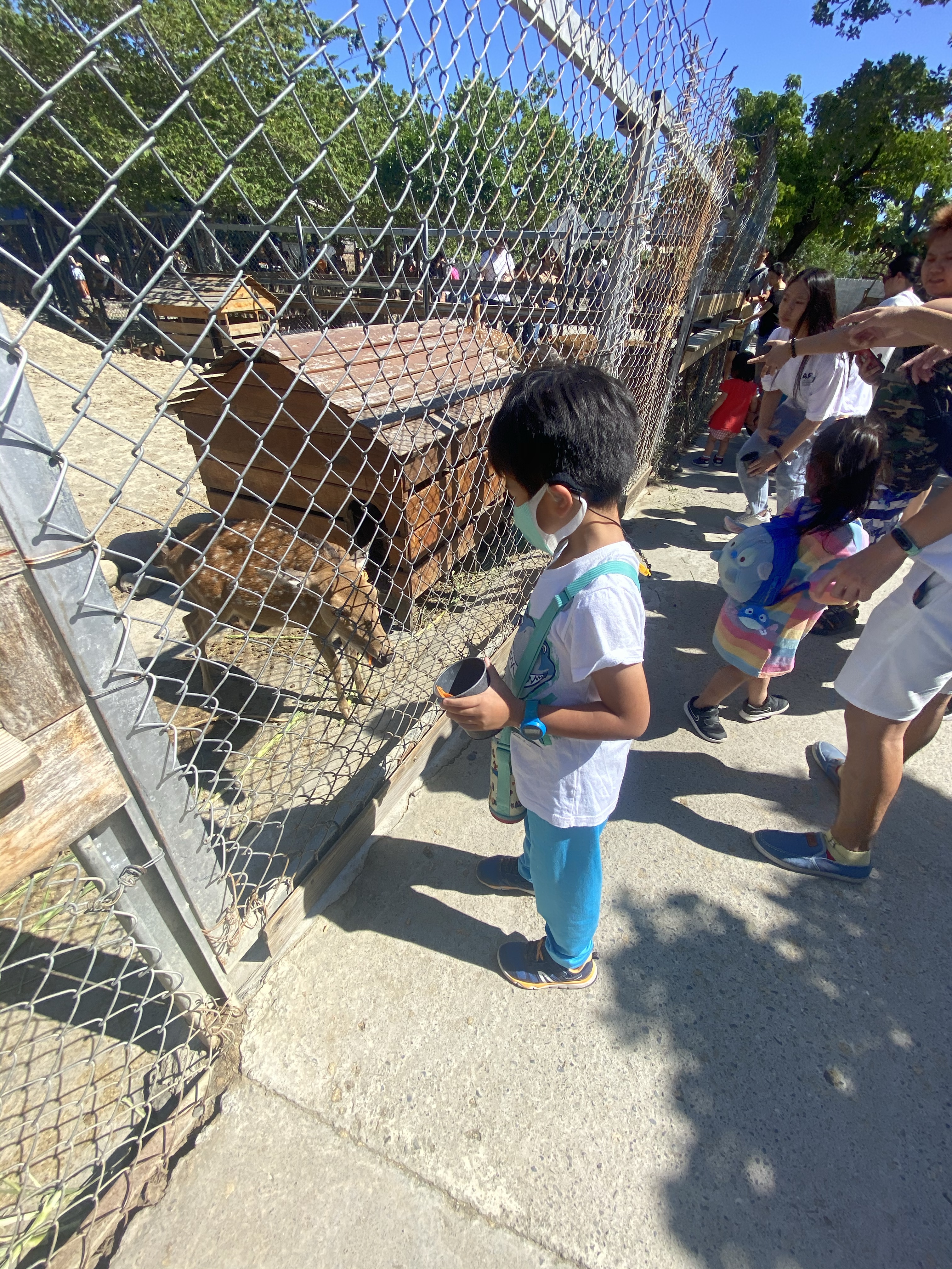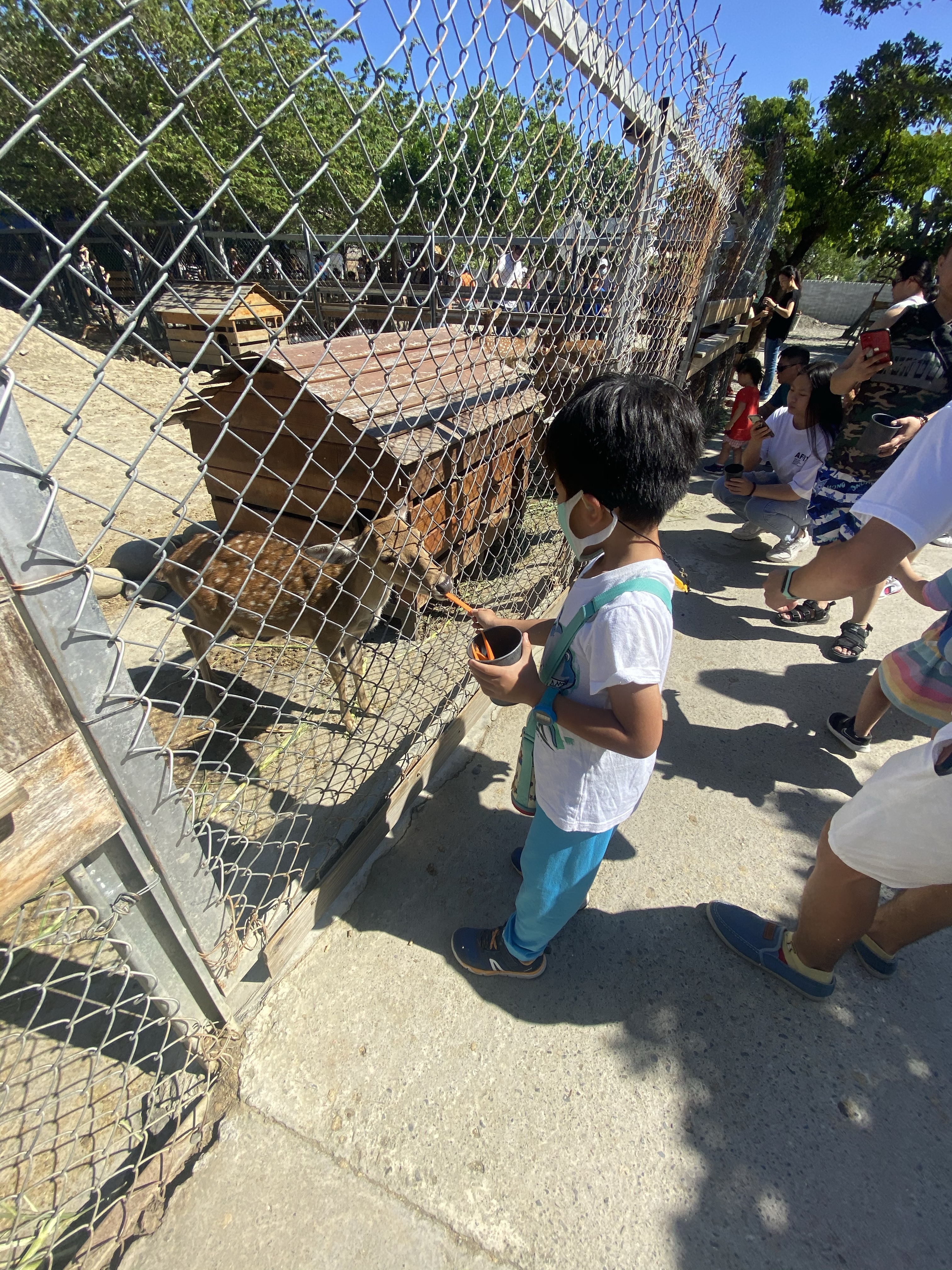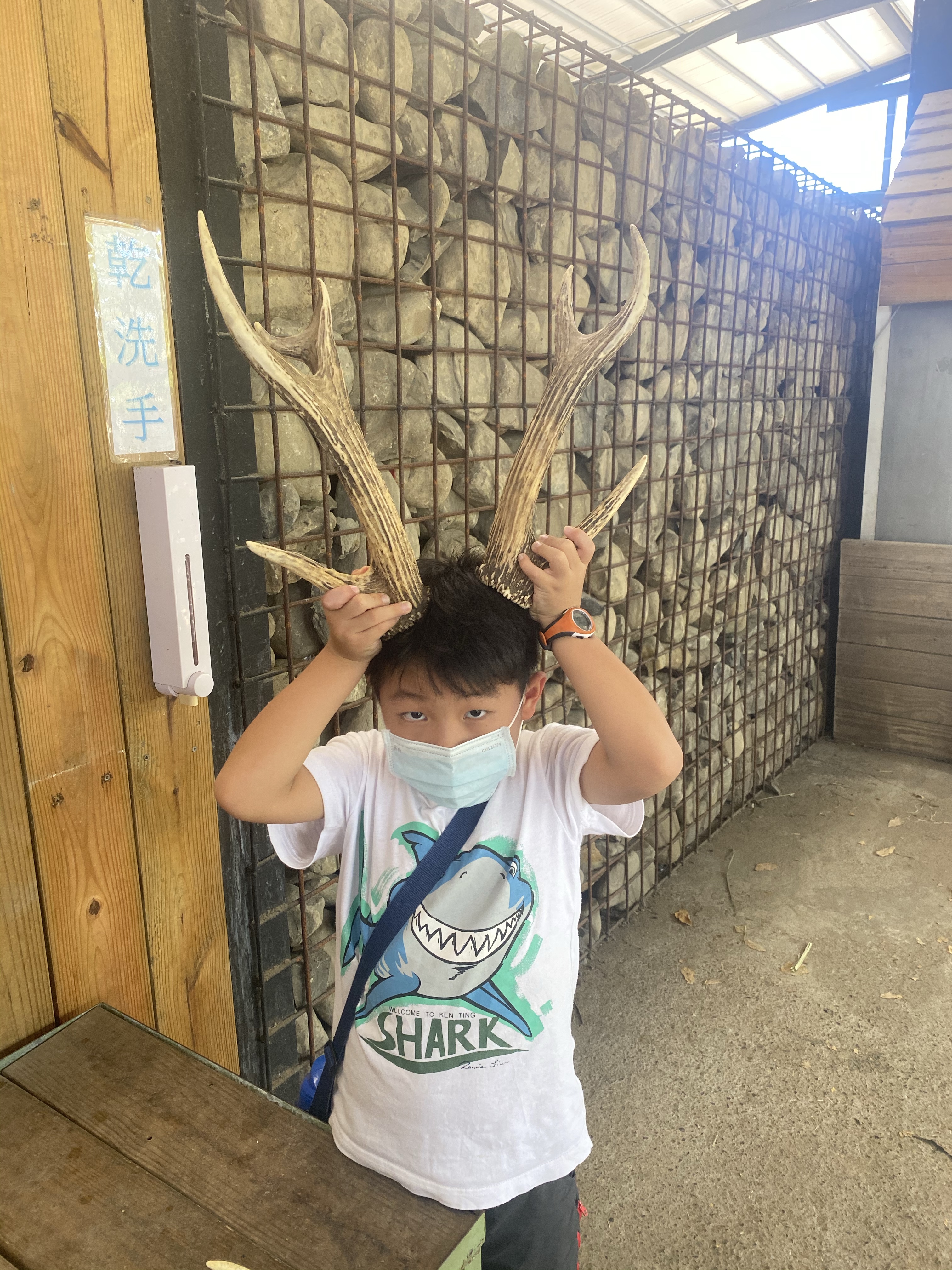 進去之前,會進行講解,避免驚嚇到梅花鹿,讓後進行手部消毒,我們就進去玩耍,有圍起來的區域,主要是剛生小鹿的媽媽跟小鹿的區域,另外一區則是情緒比較不好的鹿,也進行隔離。