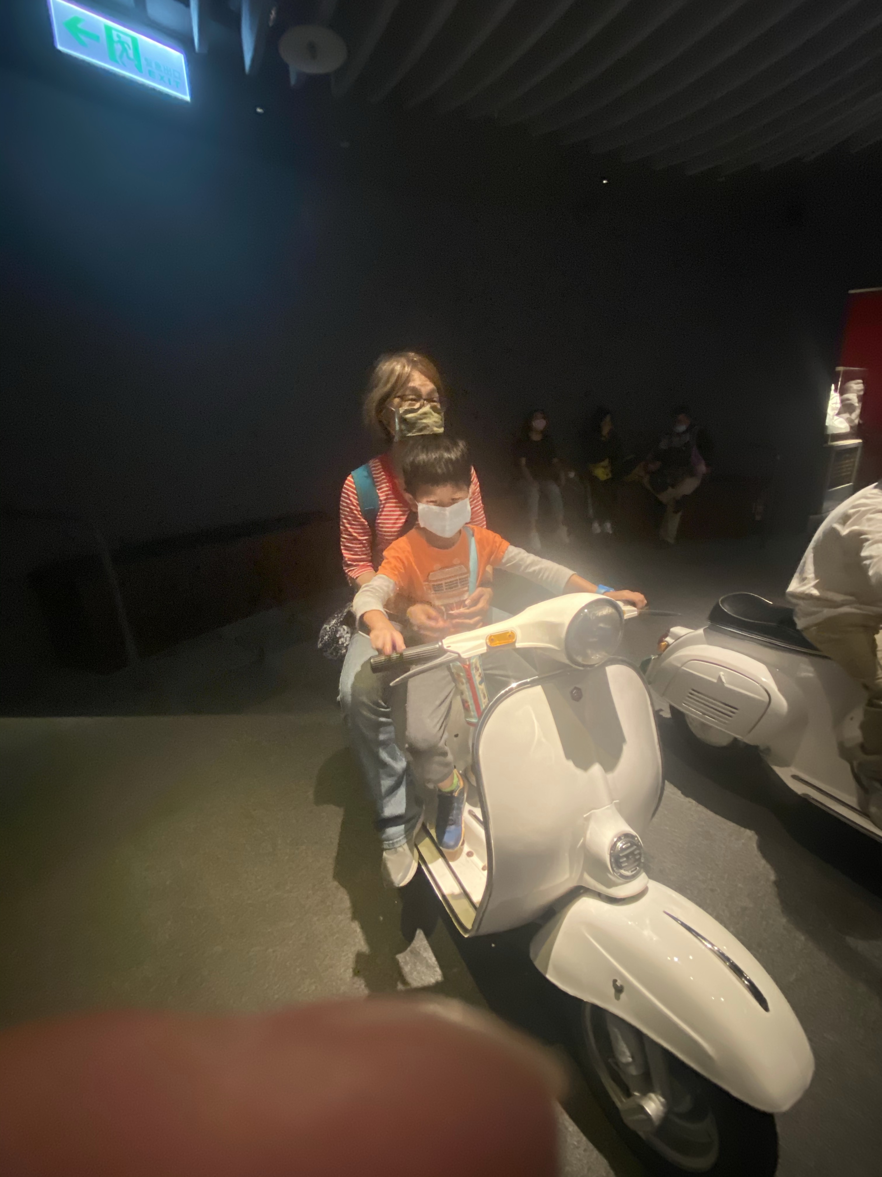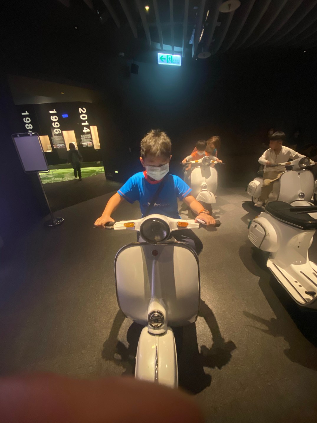 然後我們就在文薈館相遇,一同去看展覽,一開始會拿到一個卡片,算是這邊的一個紀念卡,再來是這邊最主要的騎車互動遊戲,大部分小朋友都會在這邊玩,主要透過加油與按喇叭的動作來互動,大小沐沐則玩了2次。