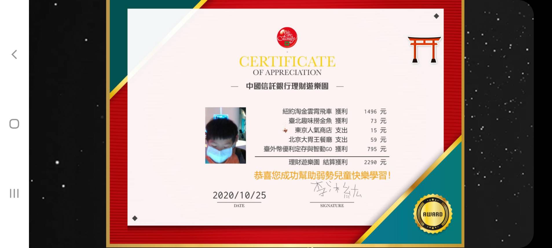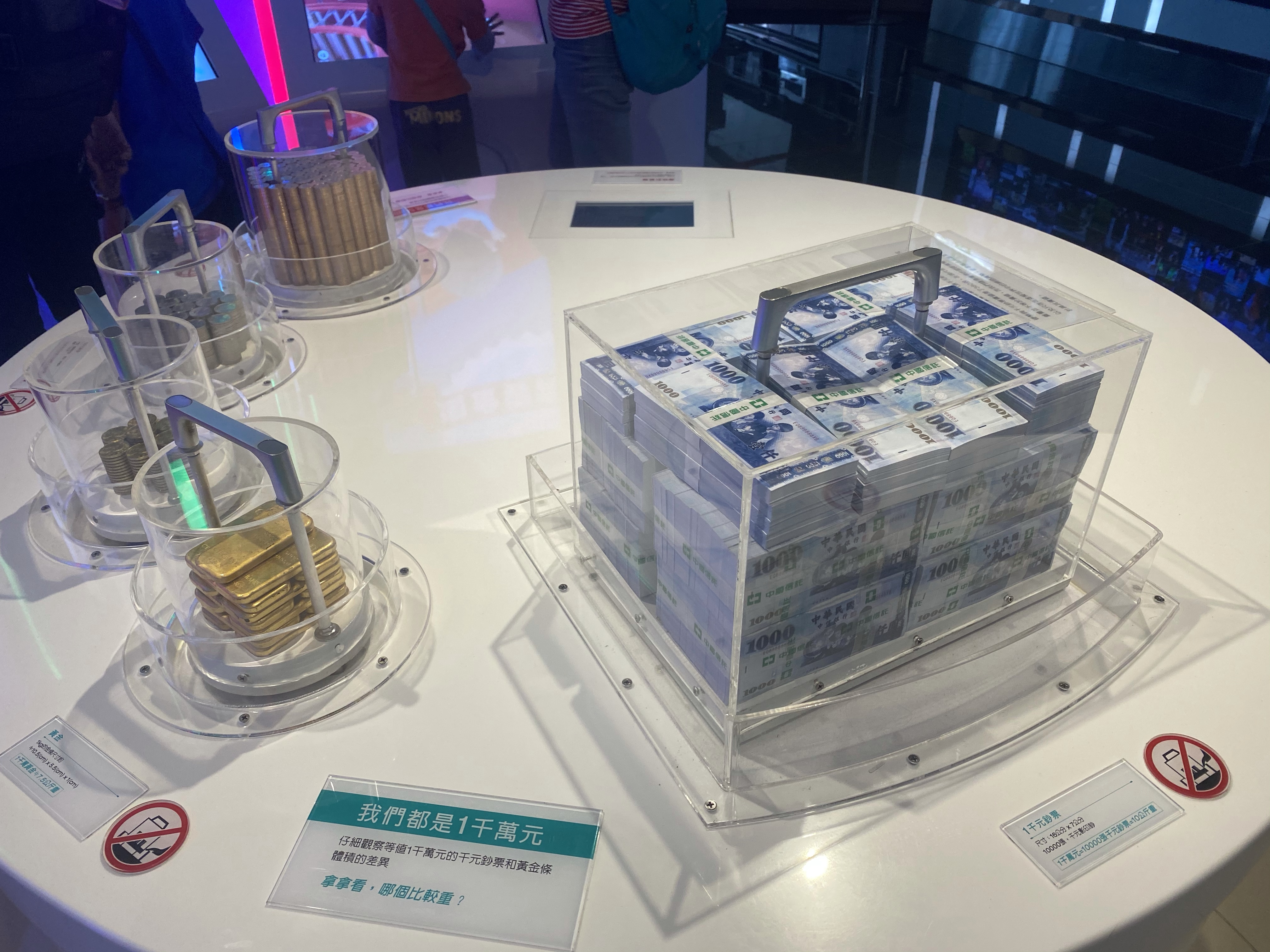 在後段怎可以看到錢的重量,1千萬的紙鈔真的比1千萬的黃金還重阿,另外就是互動體驗金融交易的部分,所以大小沐沐都可以在上面體驗"中信銀行理財遊樂園",然後頒發一個證書給你,很有趣。