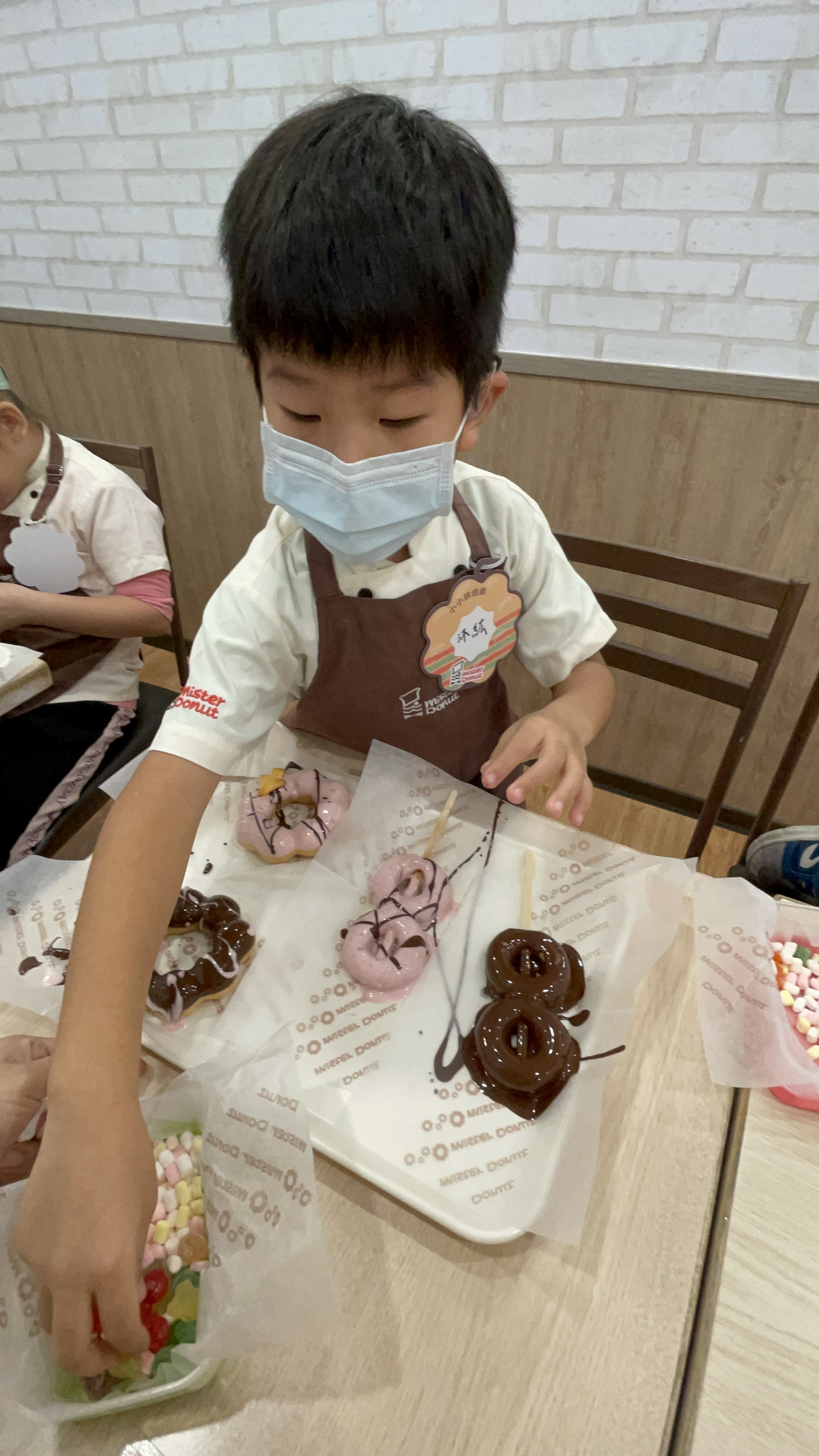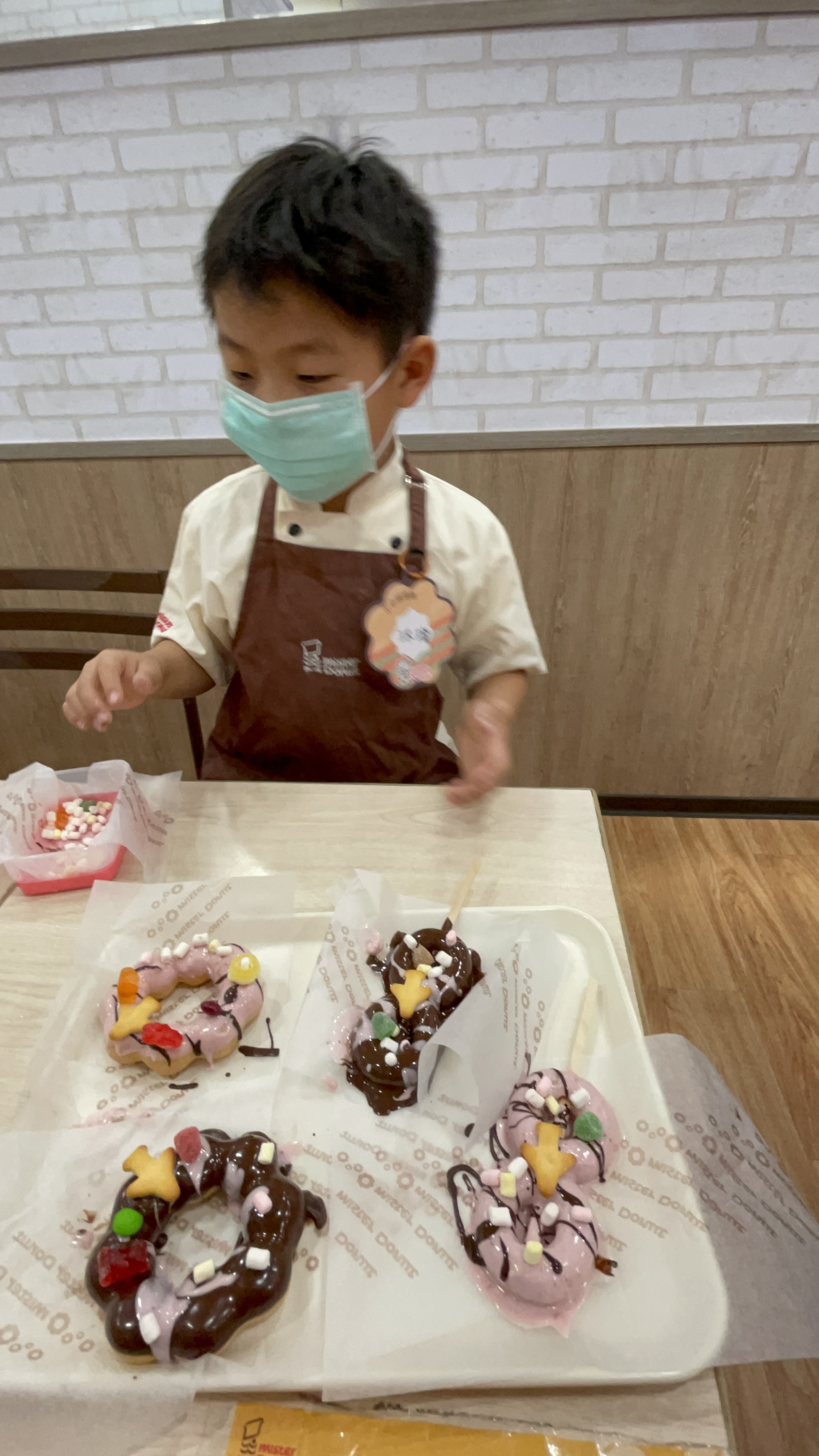 大小沐沐又來玩甜甜圈的活動,這次在家樂福重新店內,上一次是在中和環球內(上次去已經沒有看到了),空間相對小,所以人數也有差異,但玩甜甜圈的製作上是差不多的。