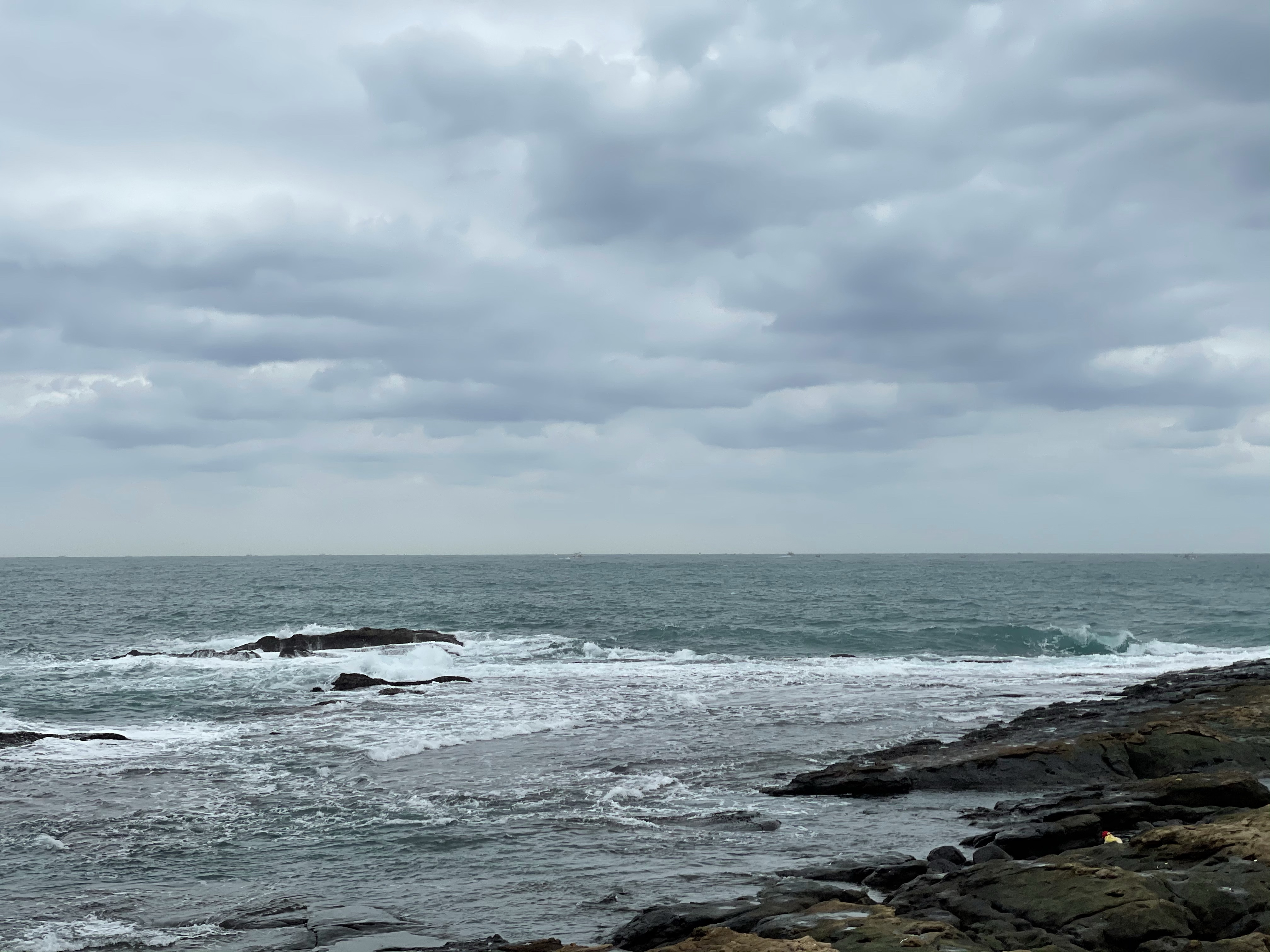 下車之後,我們就在離海邊比較近的地方看海浪,大小沐沐兩個很開心的看,而沐爸就用手機拍攝海景,也有看到兩三個釣友在釣魚,相當有意思。
