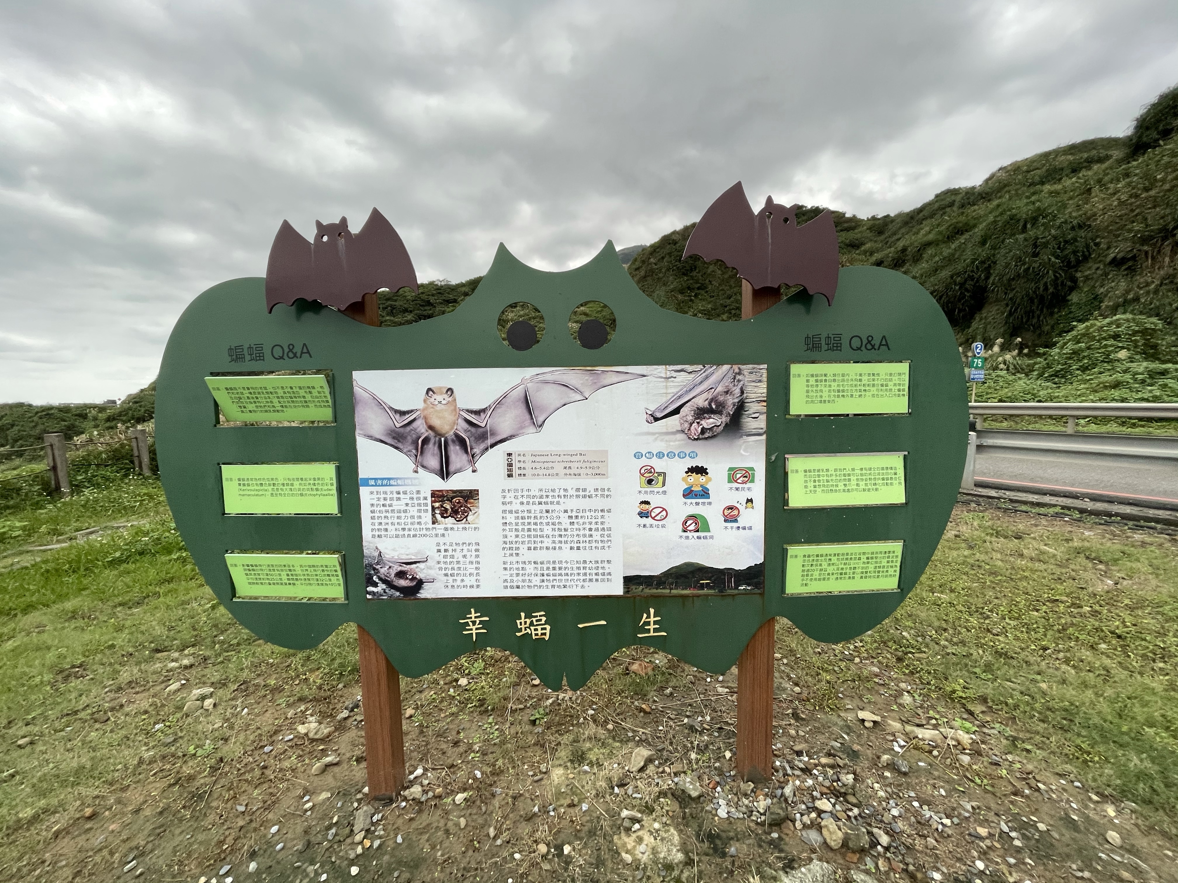 當天從九份逛完老街之後,還有一點時間,沐爸就想可以近一點去看海,本來只是找一個小停車場,結果就來到這邊的蝙蝠洞公園,要看蝙蝠要在夏季比較會看到,不過我們也在這邊玩耍一陣子。