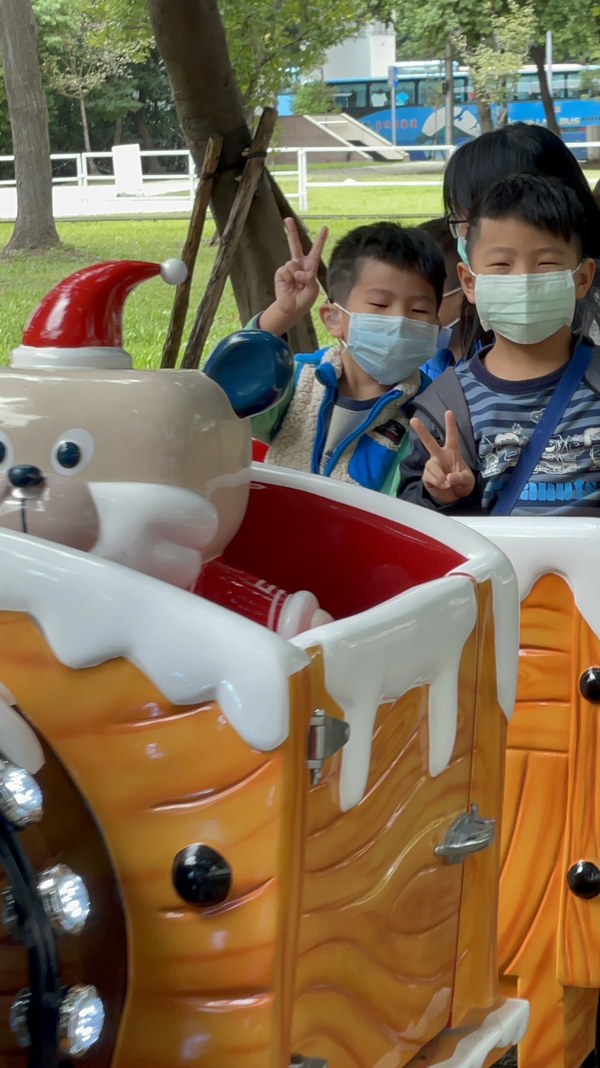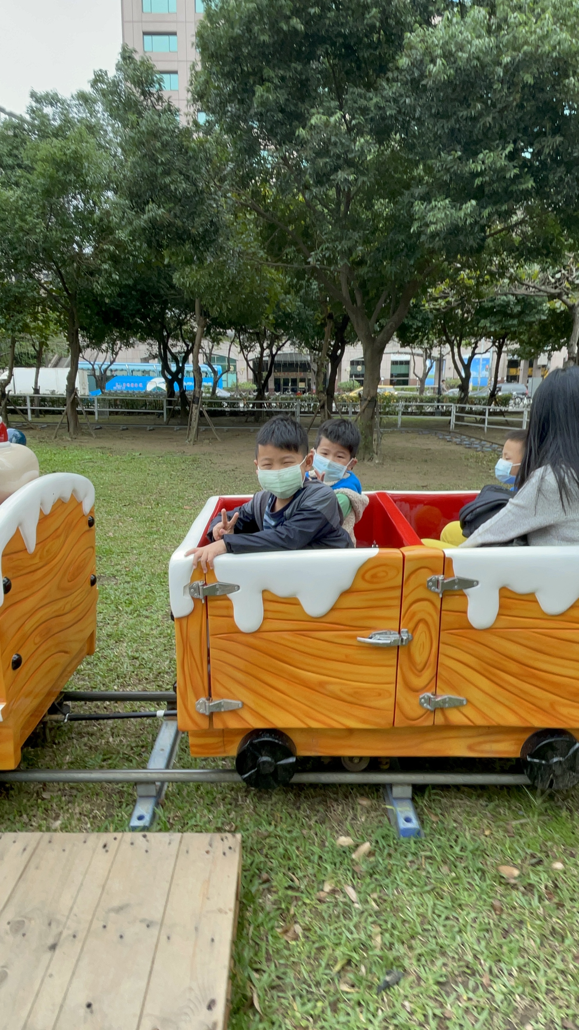 週六中午吃飽以後就來這邊玩耍,就先去排小火車,小朋友若可以自己座,身高達到標準就可以排另外一排,感覺下午時段比較沒有那麼多人,只是沒有晚上美美的燈光風景而已。