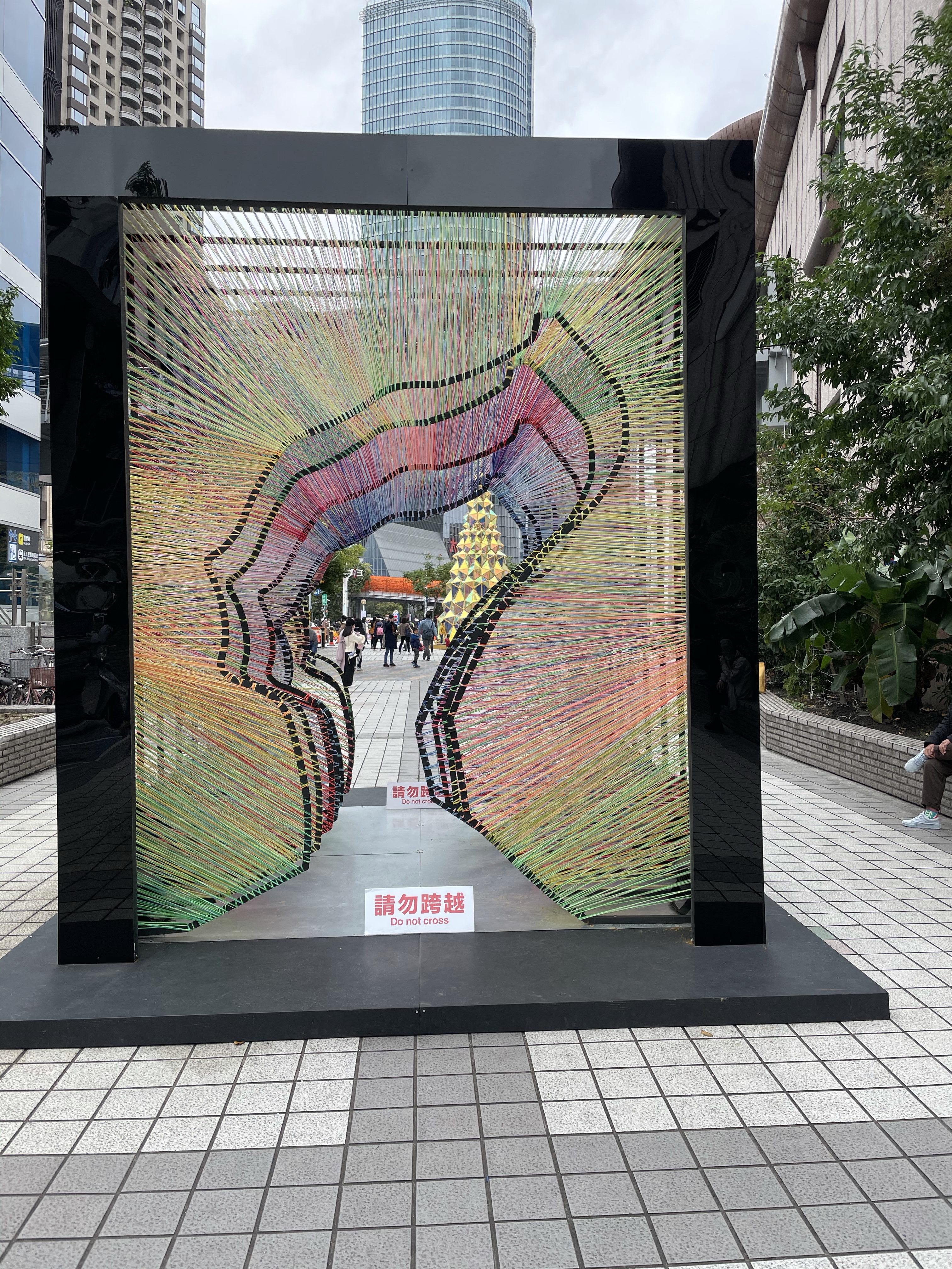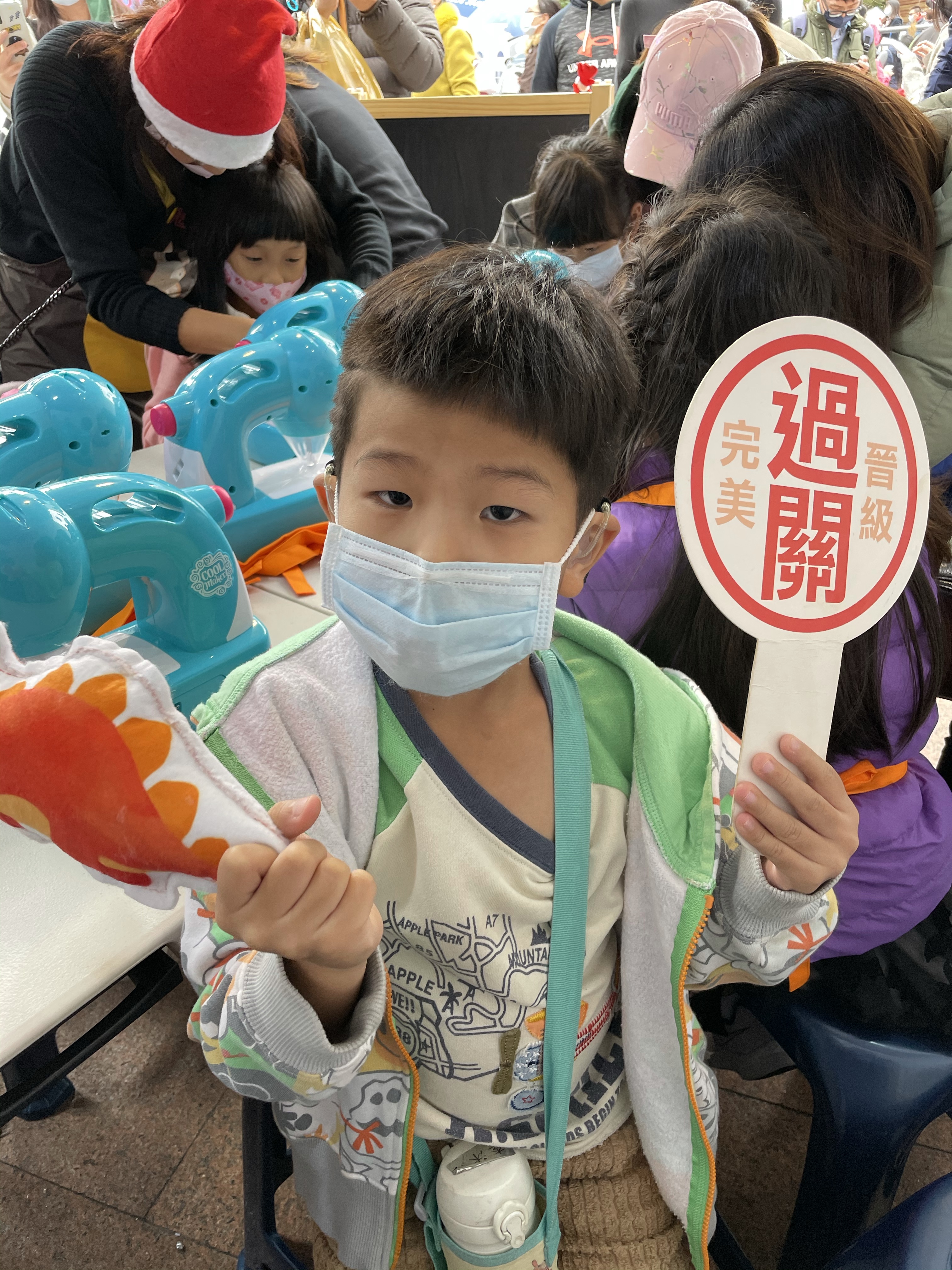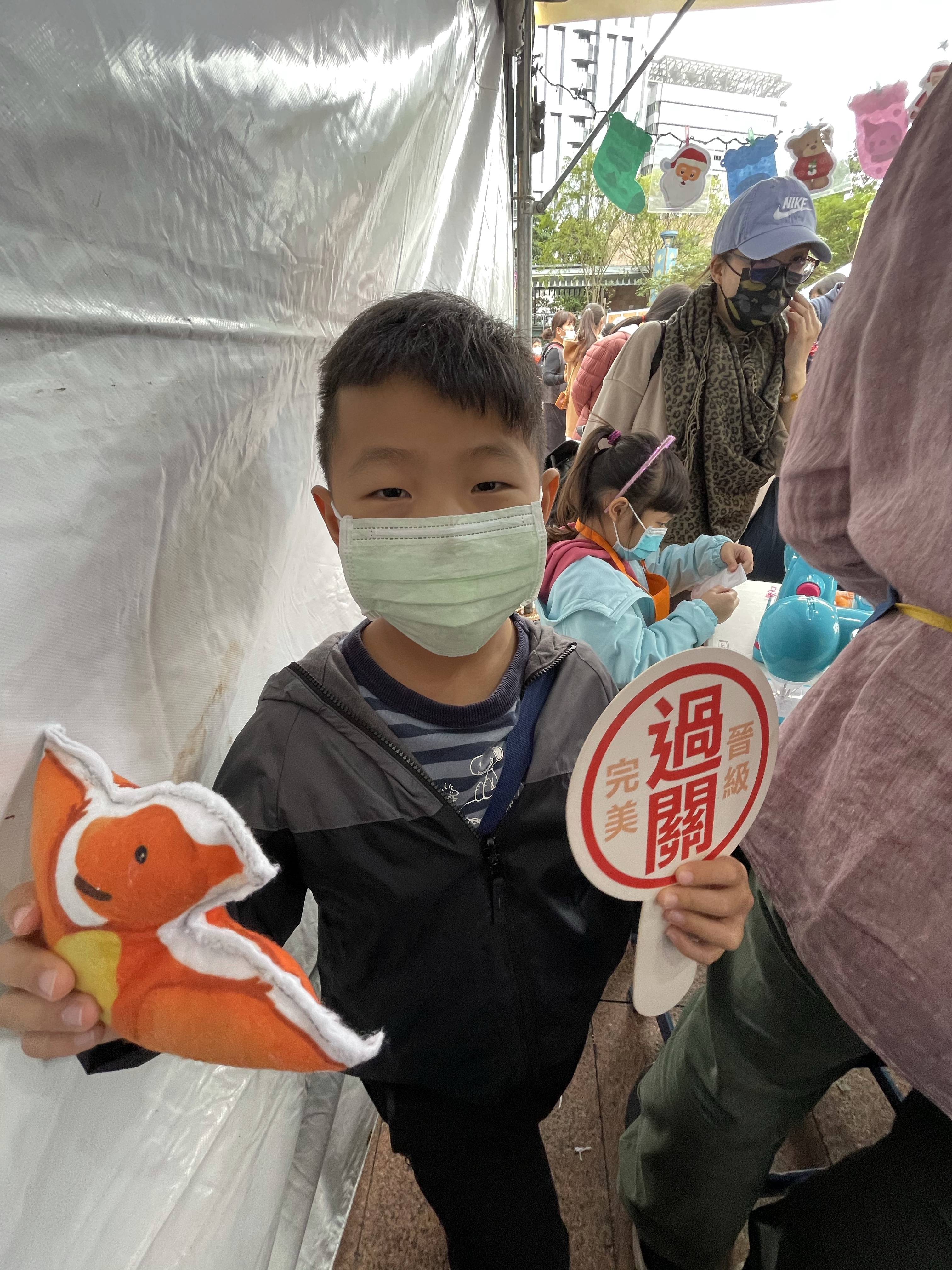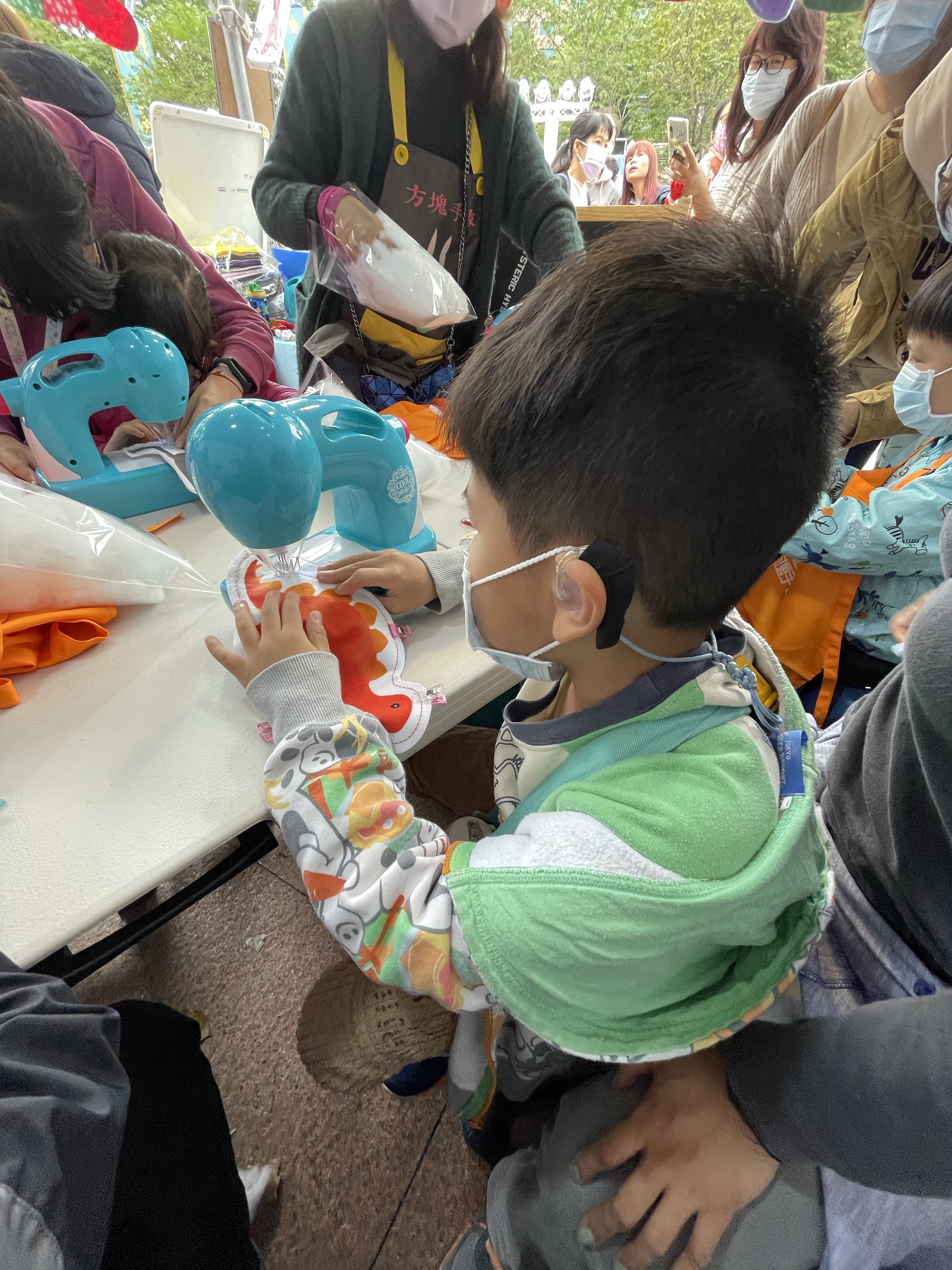 後來發現一個在自己做抱枕的攤位,大小沐沐想要去做,所以當場就做了,比較特編的是裁縫機,因為沒有針,而是用壓合的技術與特殊的材料,所以兩個就在這邊製作小小的抱枕。(缺點:回來好像比較容易掉毛)